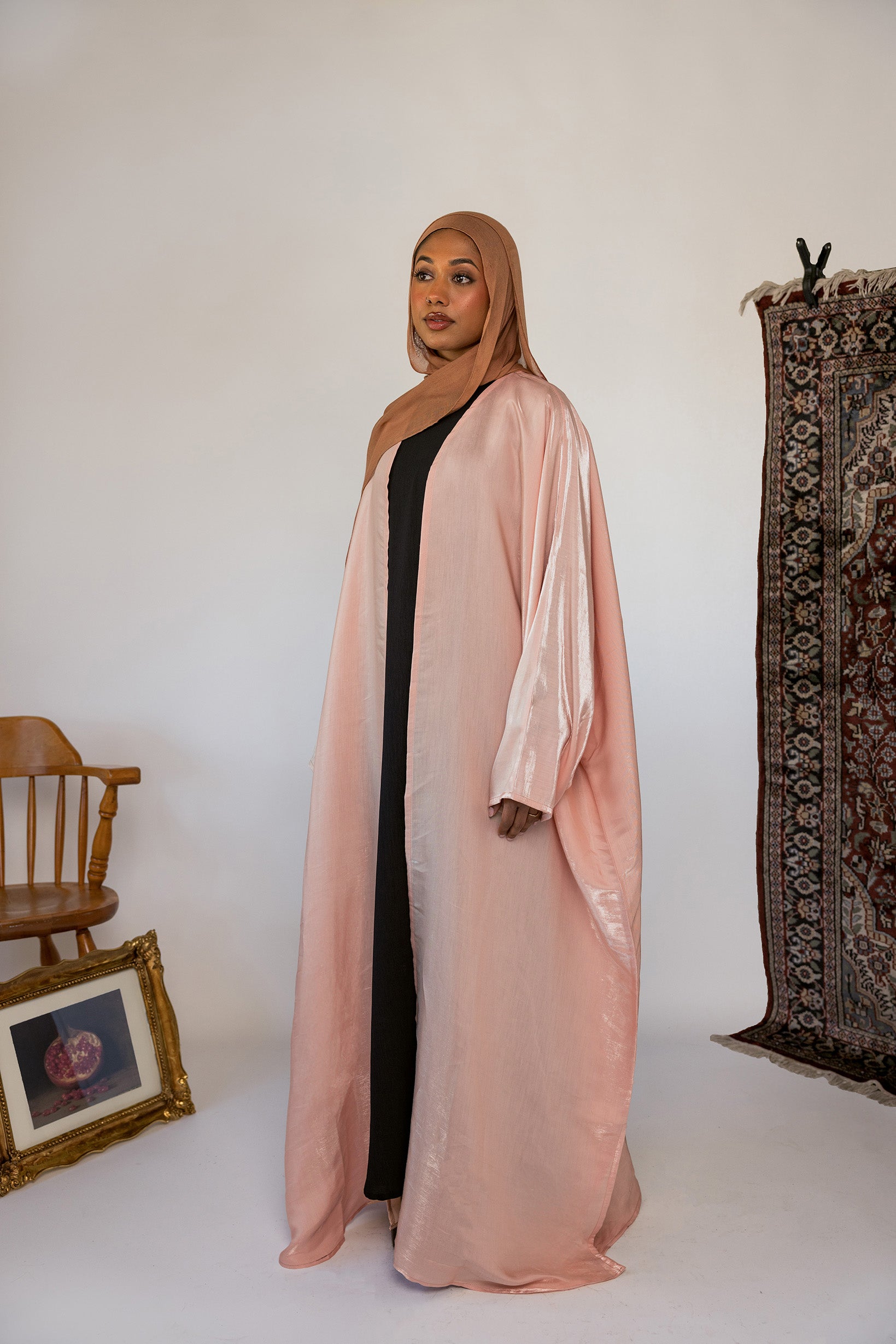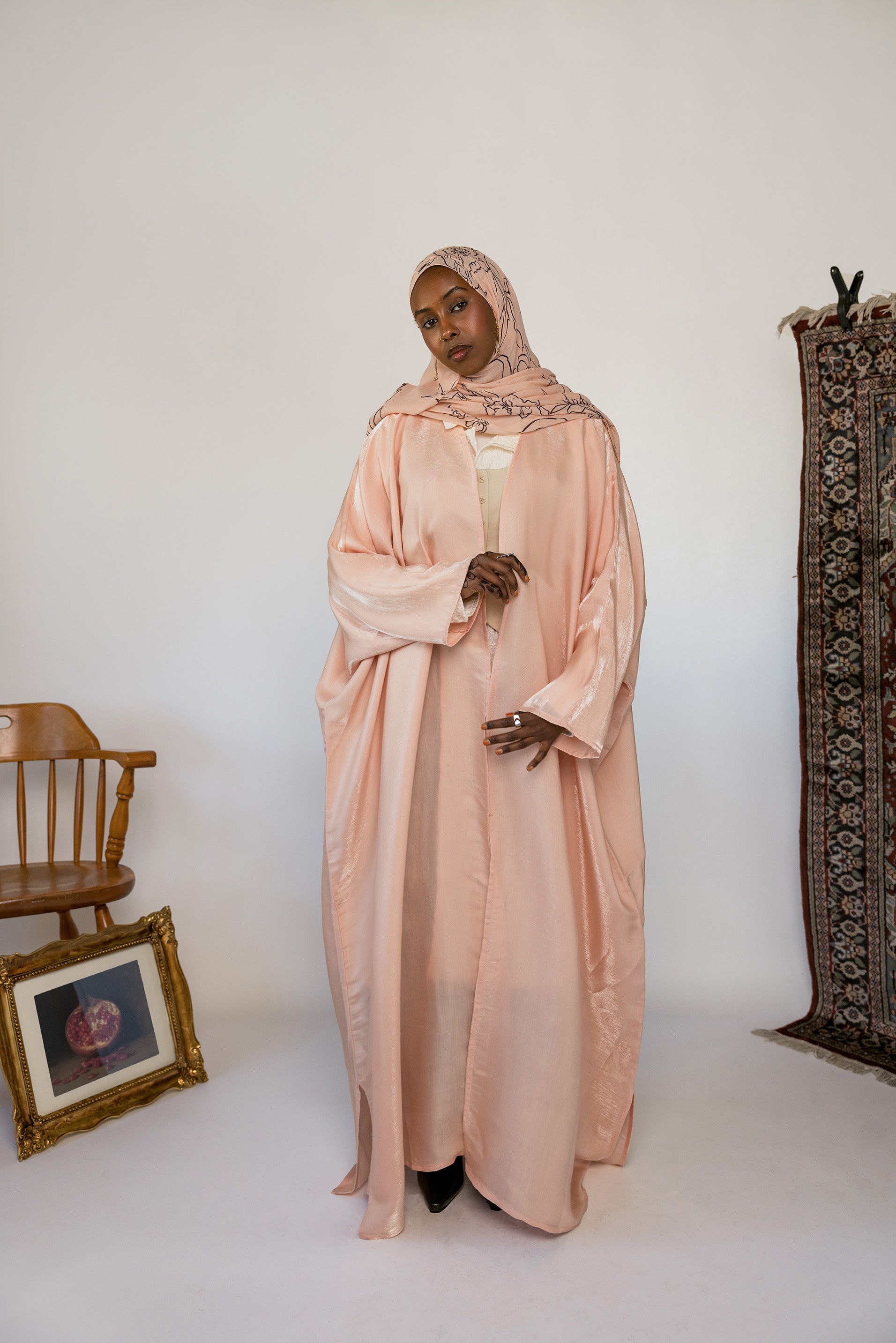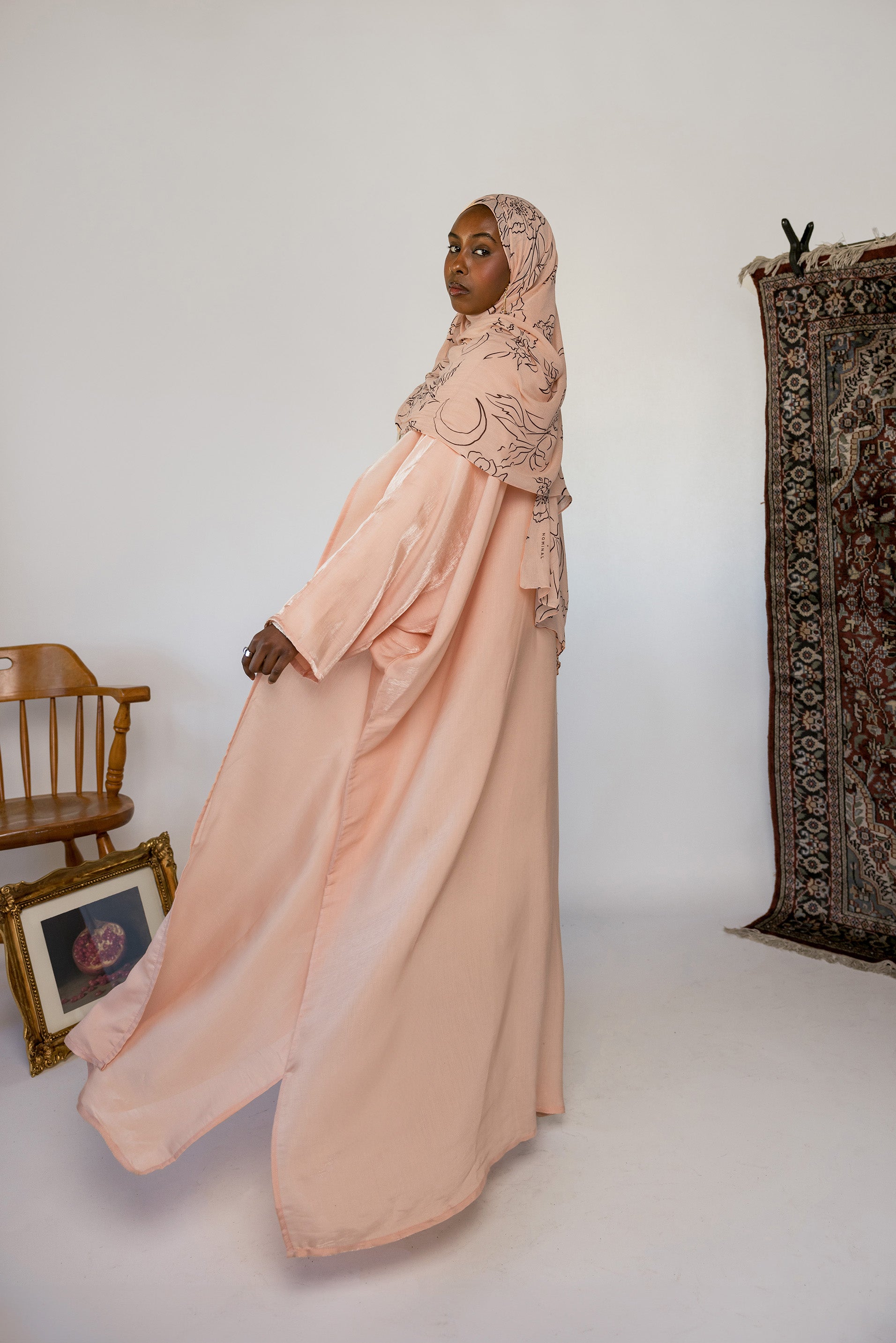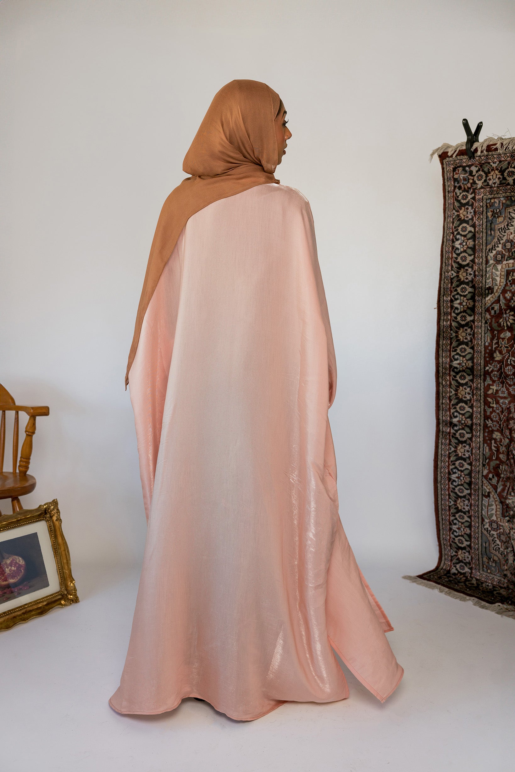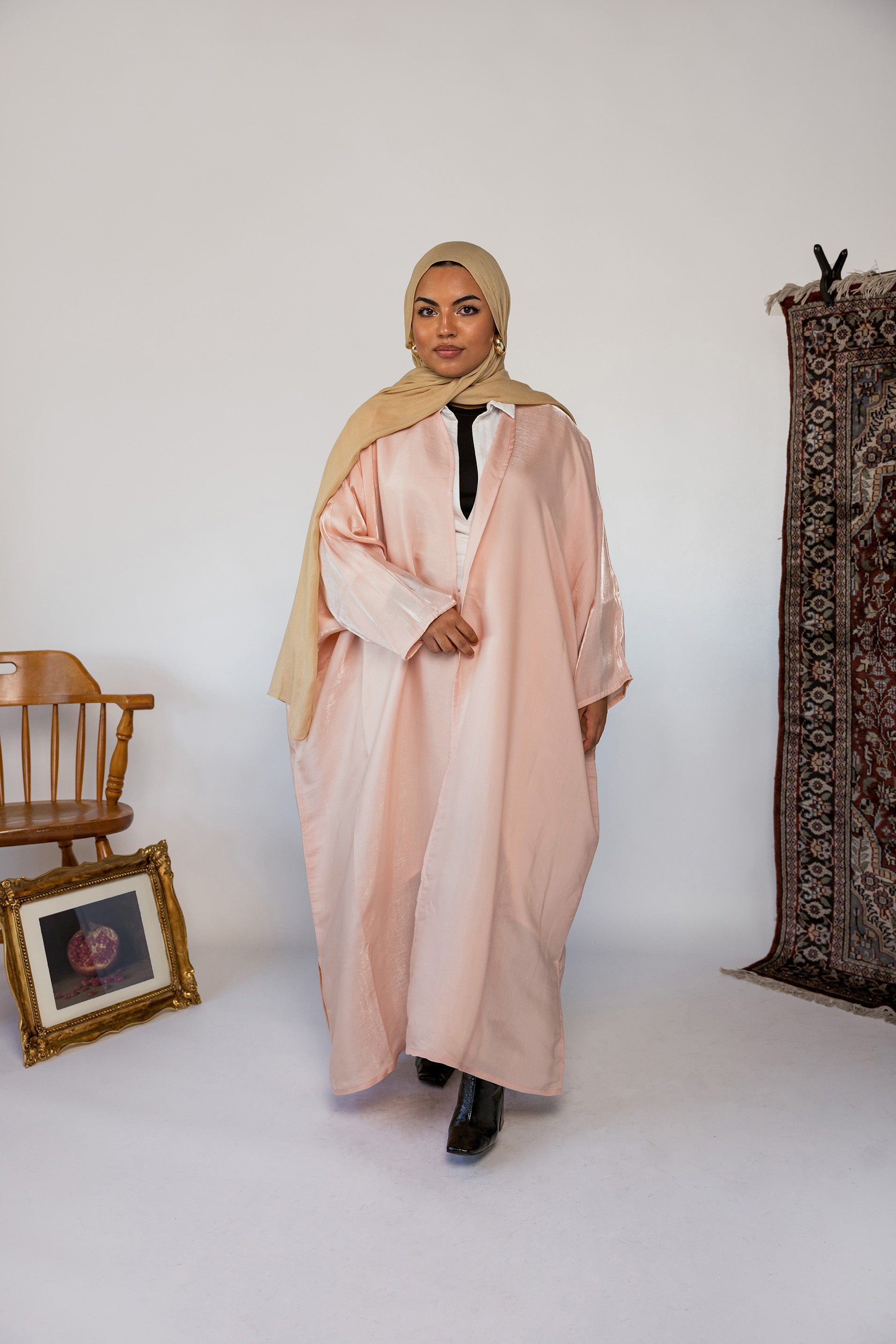 Drape yourself in liquid petal pink this Ramadan. The soft sheen and even softer lightweight fabric will make you feel like you’re glowing.