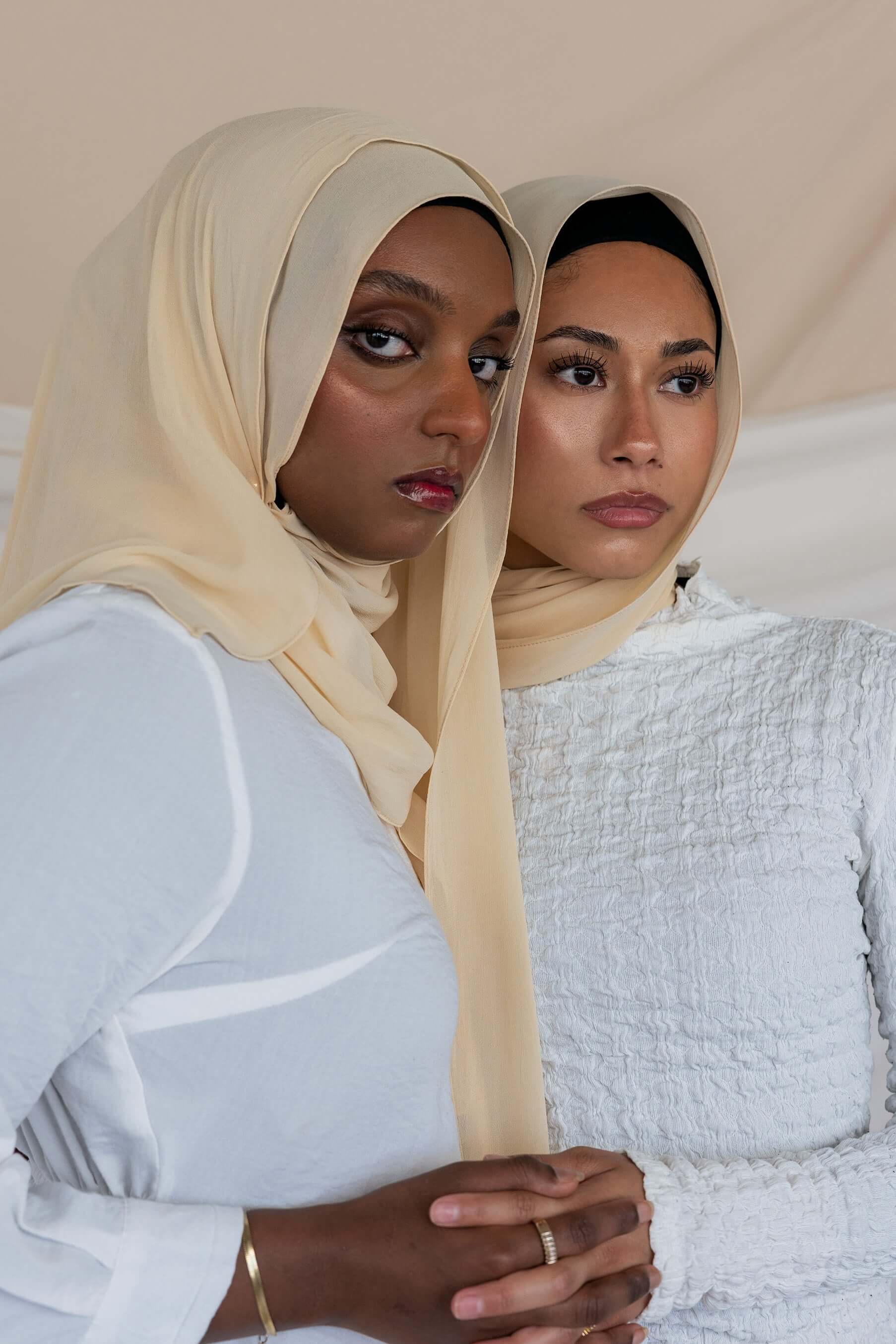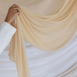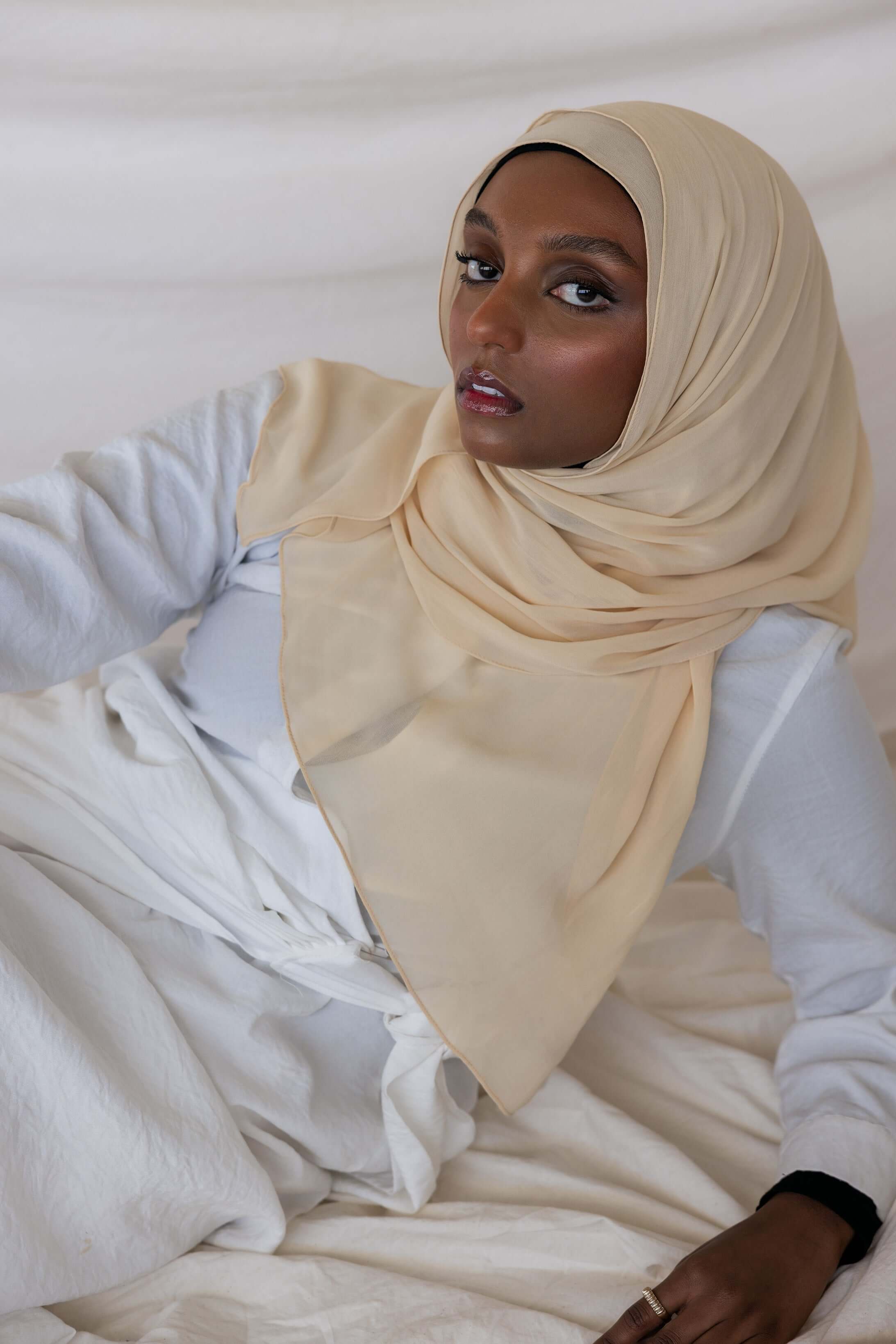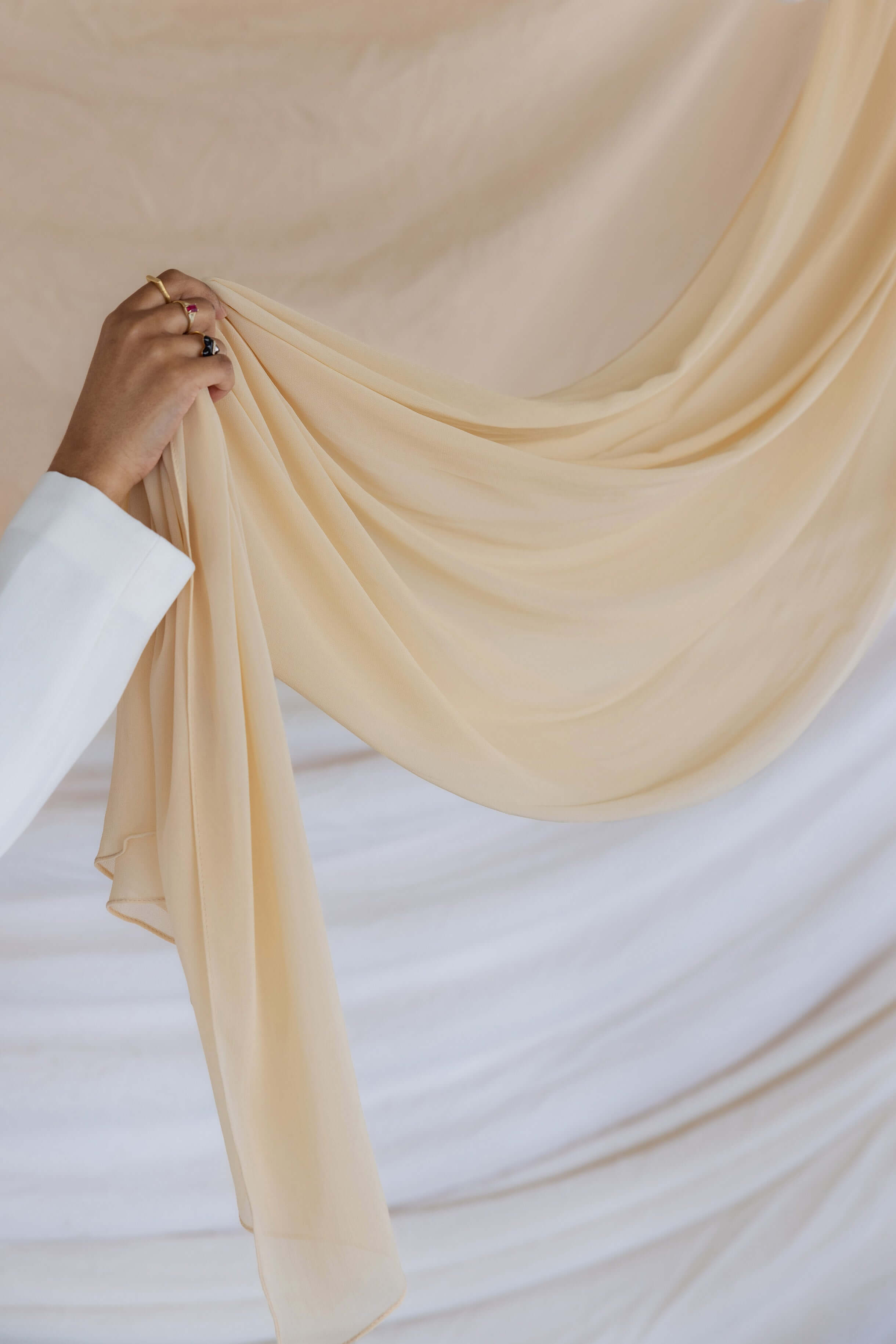 A sandy beige hijab with warm undertones that gives you the elegant drape of chiffon with a soft textured finish made of 100% cotton bemberg. Shop our Biscuit Crepe Chiffon Hijab online for a luxurious pure chiffon hijab experience. Perfect as a Georgette crepe hijab or a non-slip chiffon hijab for all-day comfort.