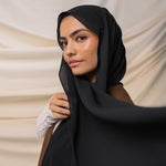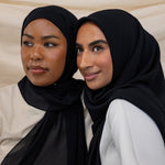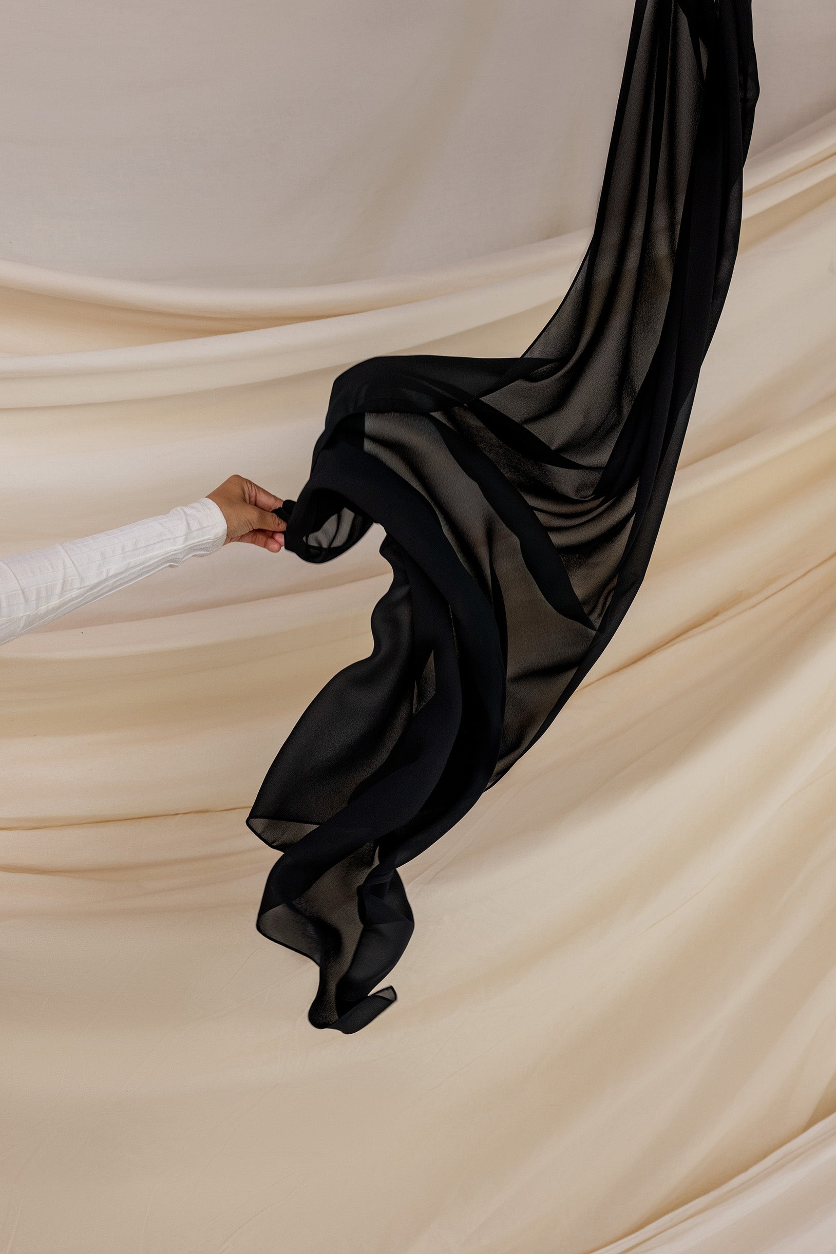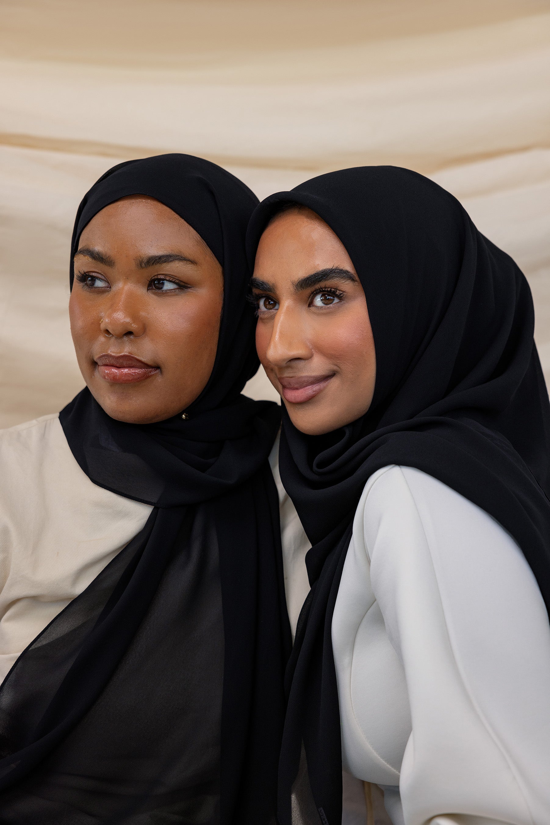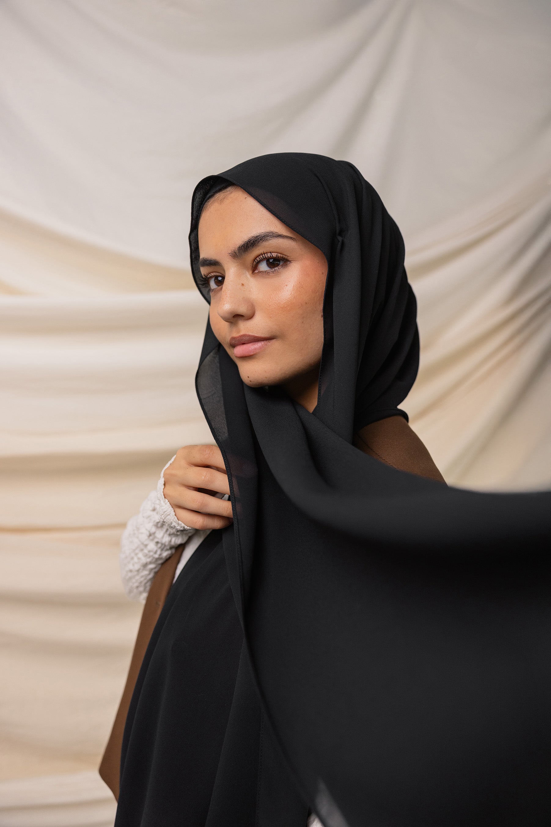 The ultimate must-have. Sleek and timeless, the Black Signature Chiffon Hijab is crafted from our non-slip, perfectly textured fabric for all-day comfort and style. An essential staple, this hijab is perfect for any occasion, adding elegance and ease to your look. Shop the Black Chiffon Hijab online for a sophisticated addition to your wardrobe.