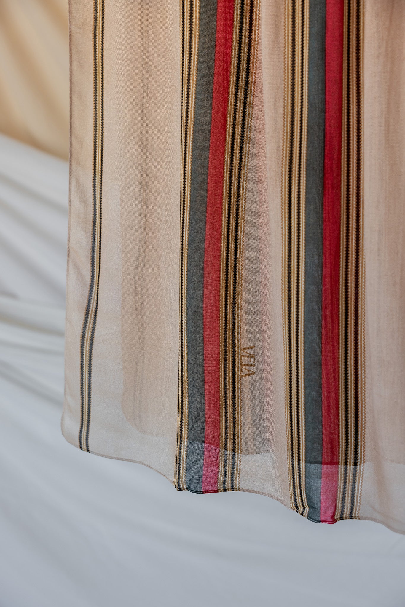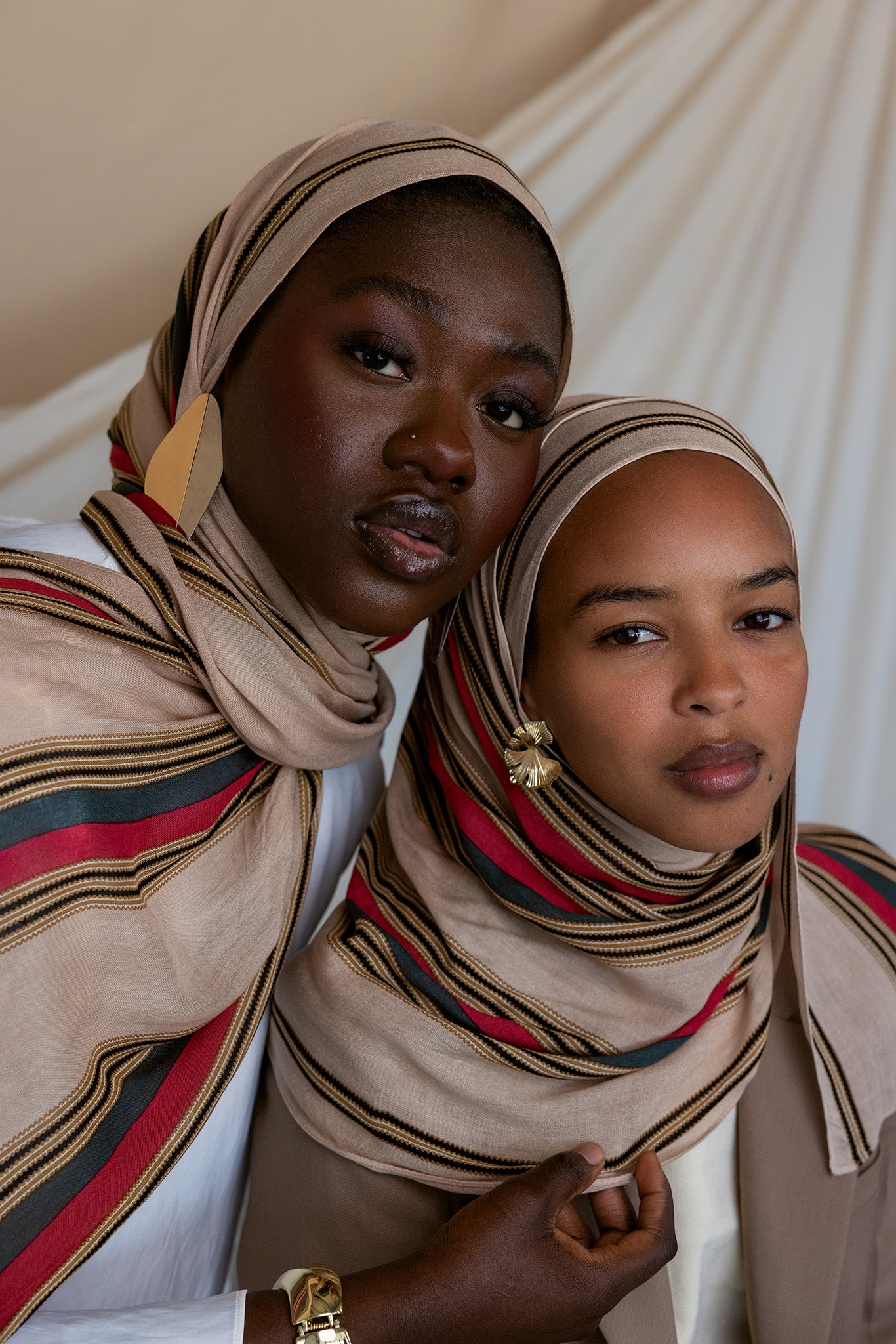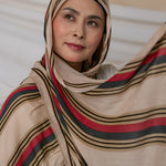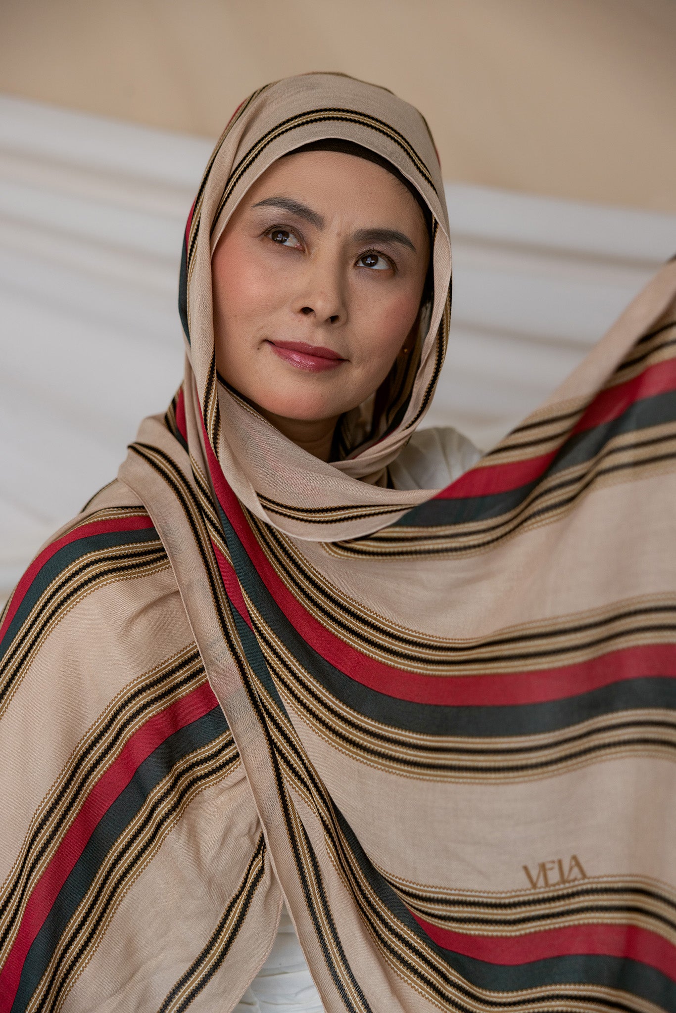 Heirloom Stripe fabric is a tribute to cherished Syrian traditions in the softest modal woven fabric. A neutral beige with stripes of timeless emerald and ruby, this Heirloom Stripe hijab will elevate any outfit. Explore our Heirloom Stripe hijab collection today.