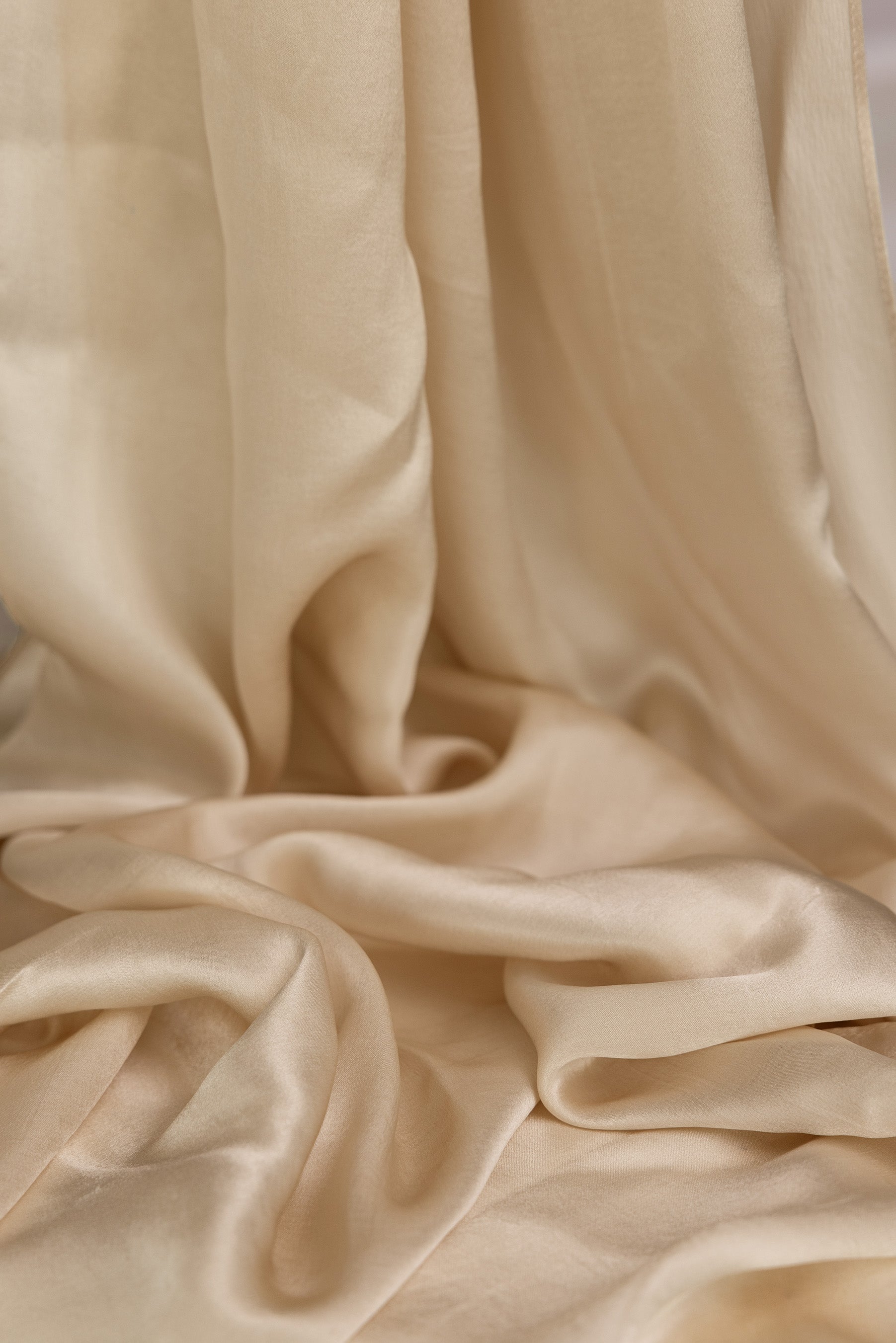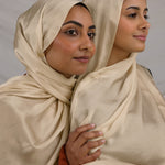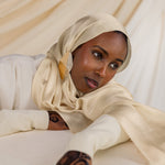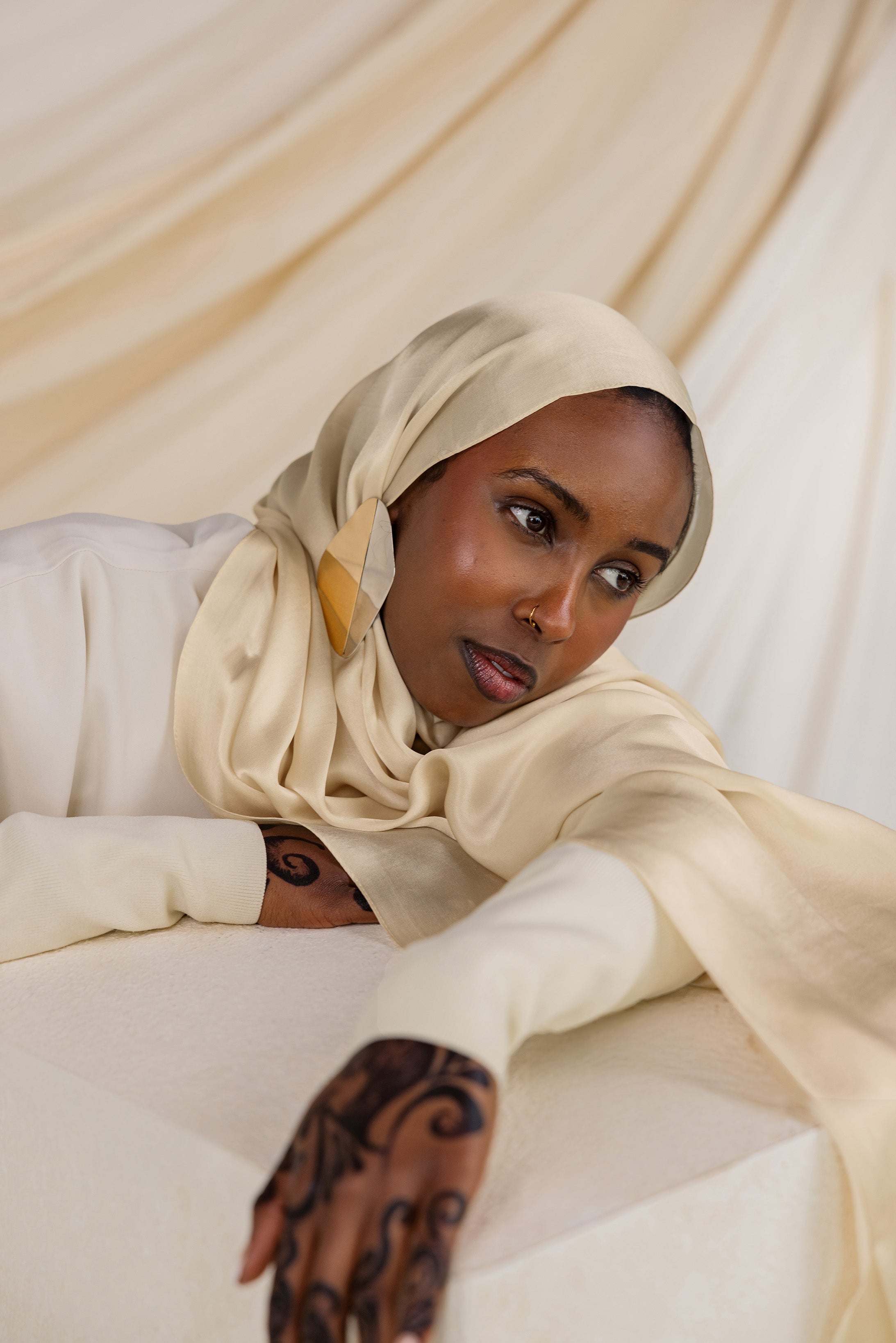 Introducing the Ivory Elegance Silk Satin — the elevated sister to your classic silk chiffon hijab. For those who crave a high-shine, polished look, this 100% silk luxurious hijab offers a smooth, glossy finish that drapes effortlessly. Perfect for formal occasions, its subtle shine and rich texture make it the ideal pairing for your most refined ensembles. It creates an intentional drape, adding sophistication and grace to your style. Add the Ivory Elegance scarf to your wardrobe, ideal for silk satin scarves lovers and a standout festive scarf.