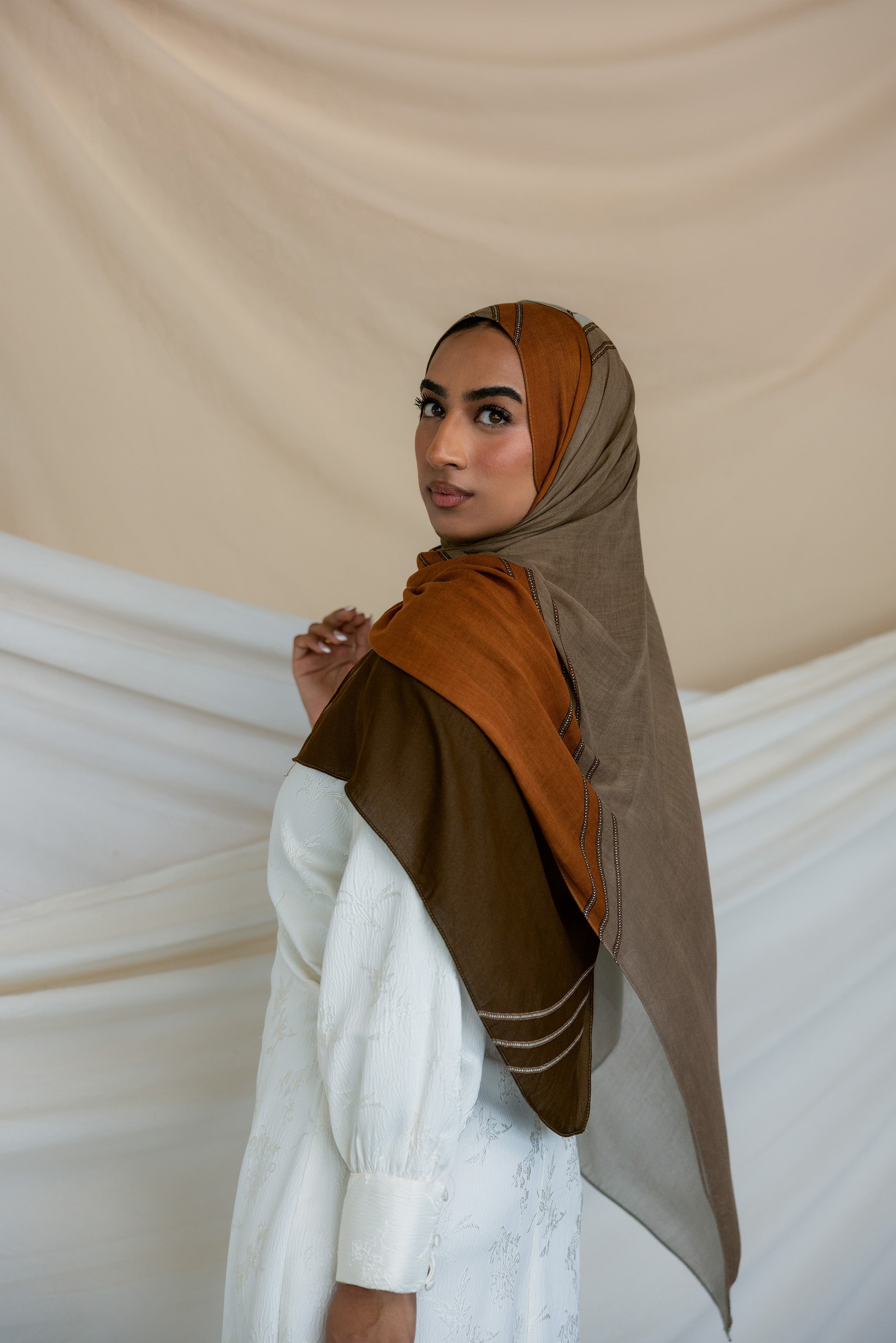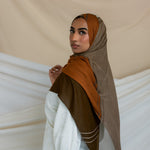 Classic browns and taupes intermix to give you a hijab reminiscent of Syrian inlay woodwork that you will reach for again and again. Crafted in our breathable modal woven fabric. VELA preserves this culture as a form of resistance with this Saya fabric found in the whole Levant region including Palestine and Jordan. Explore our elegant Saya Stripe Hijab collection online to experience the timeless beauty of this unique design.