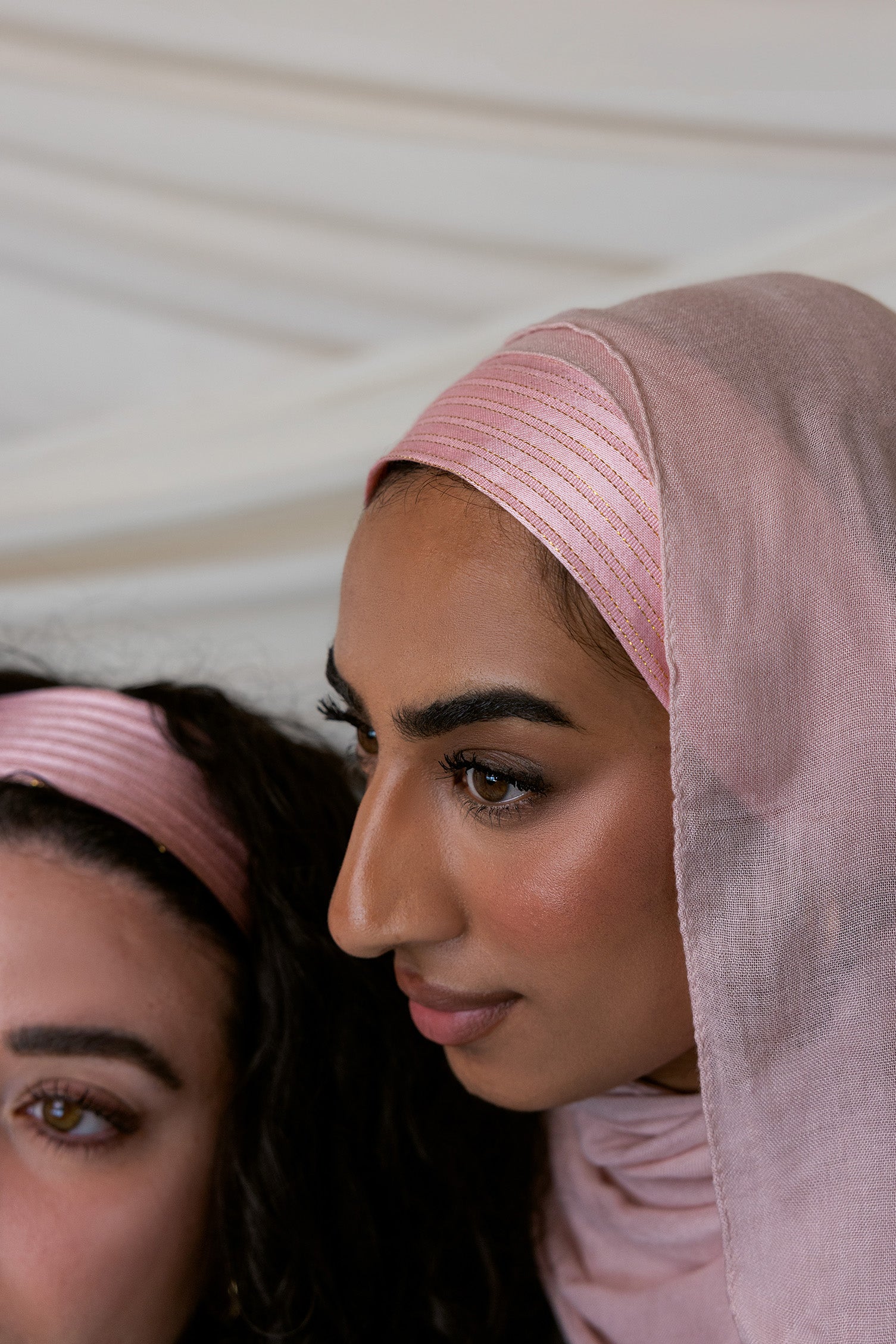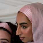 Silken Saya fabric sourced from Syria and sewn in LA to create your new favorite headband in stunning petal pink tones. Saya is a historic textile that blends cotton and silk to give you ultimate comfort. Despite challenges, select manufacturers in Aleppo still reproduce Saya fabric and we honor this heritage while reimagining Saya to produce something new. VELA preserves this culture as a form of resistance with this Saya fabric found in the whole Levant region including Palestine and Jordan.