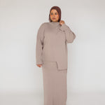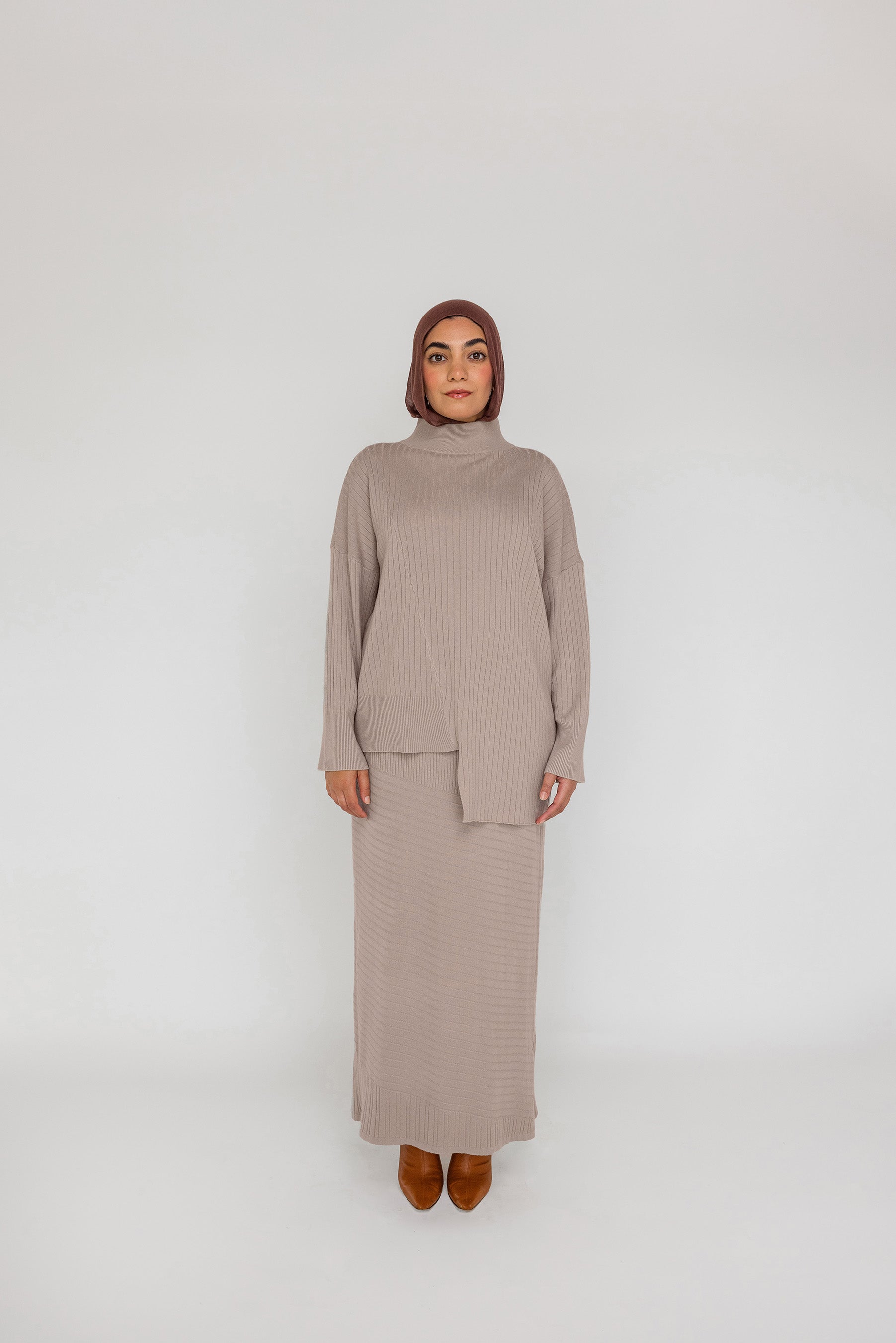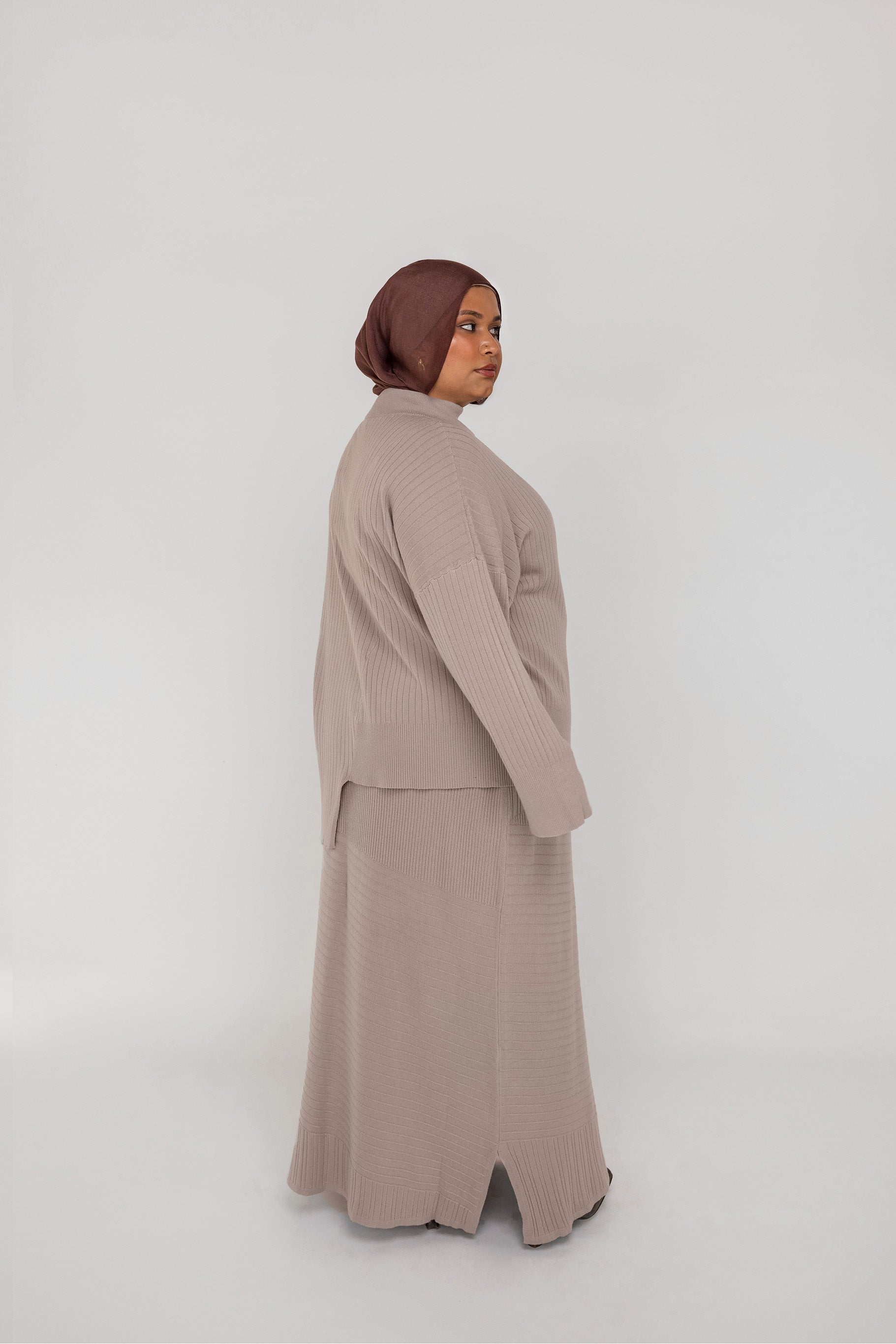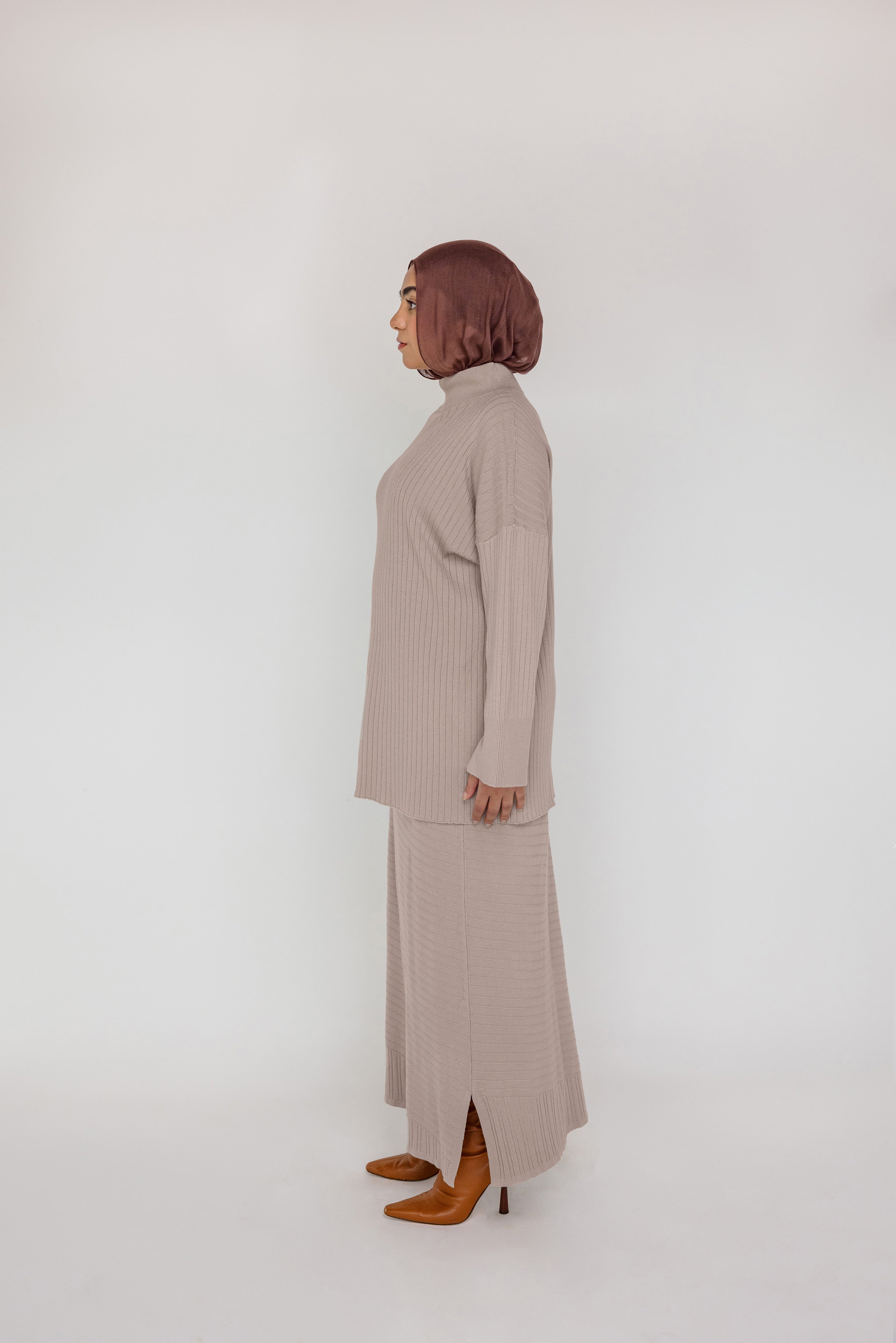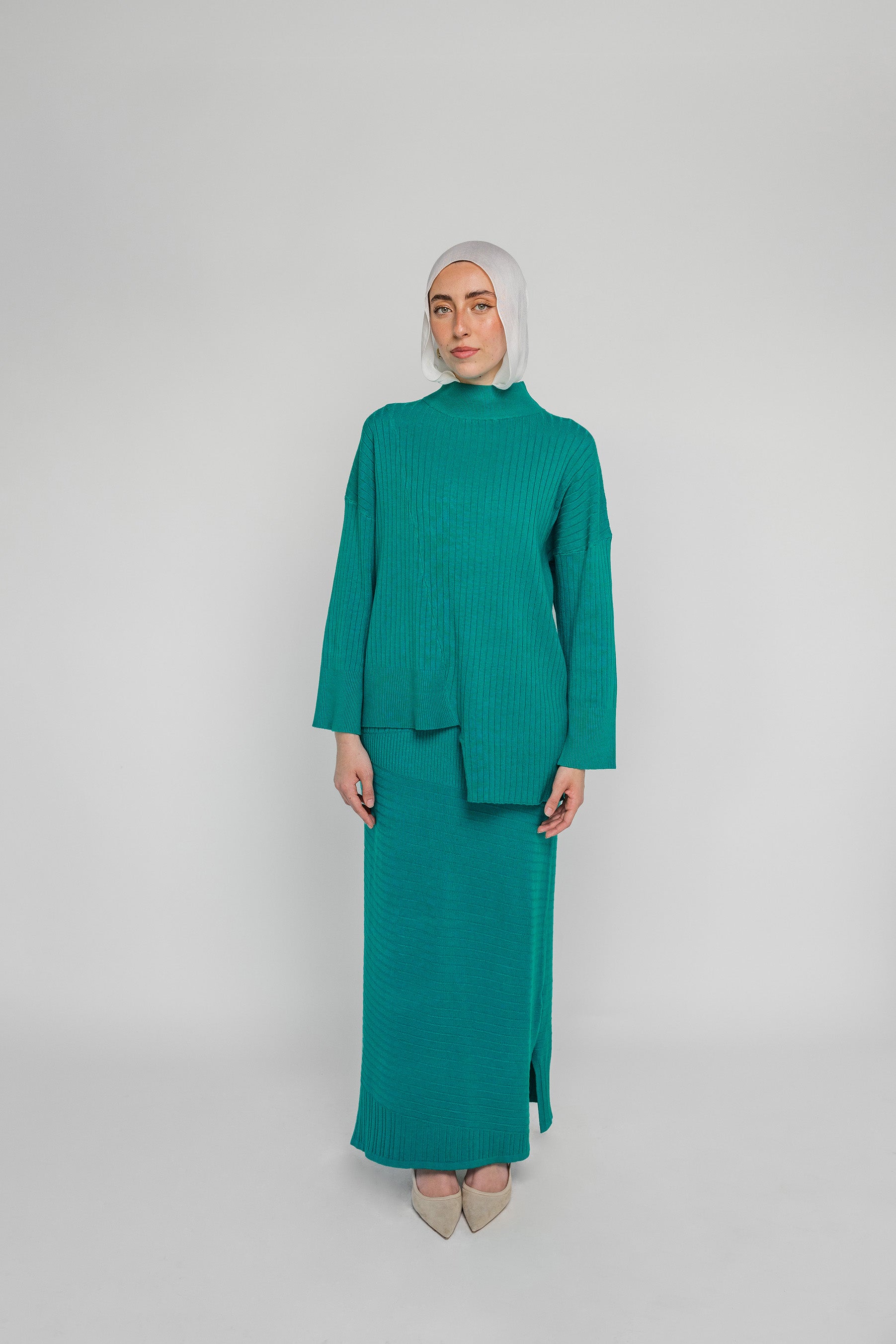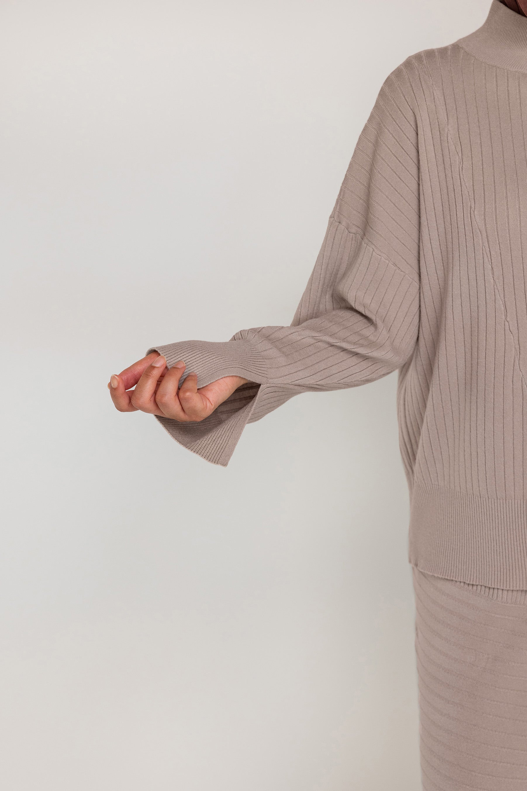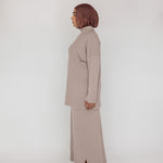 Luxuriously soft and effortlessly chic, the Mixed Rib Pullover is crafted from VELA’s butter-soft knit blend. Featuring a classic silhouette with playful textured accents, this top transitions seamlessly from casual to elevated looks. Available in Chai and Peacock. This ribbed knit pullover is a modest fashion top designed as an oversized sweater, made with care for ethical knitwear standards.