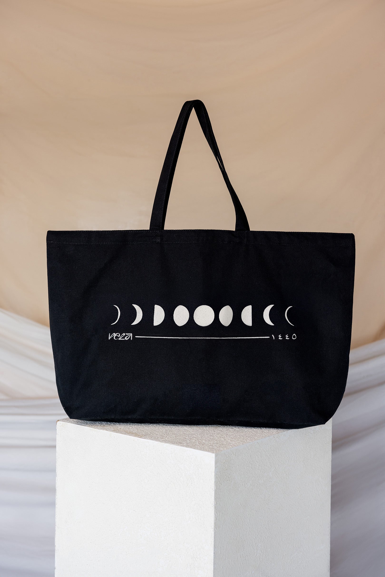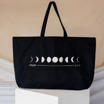 The phases of the moon adorn this multi-use tote with the islamic year in Arabic to commemorate this Ramadan 1445. The perfect companion to stow your gear for long nights at the mosque.