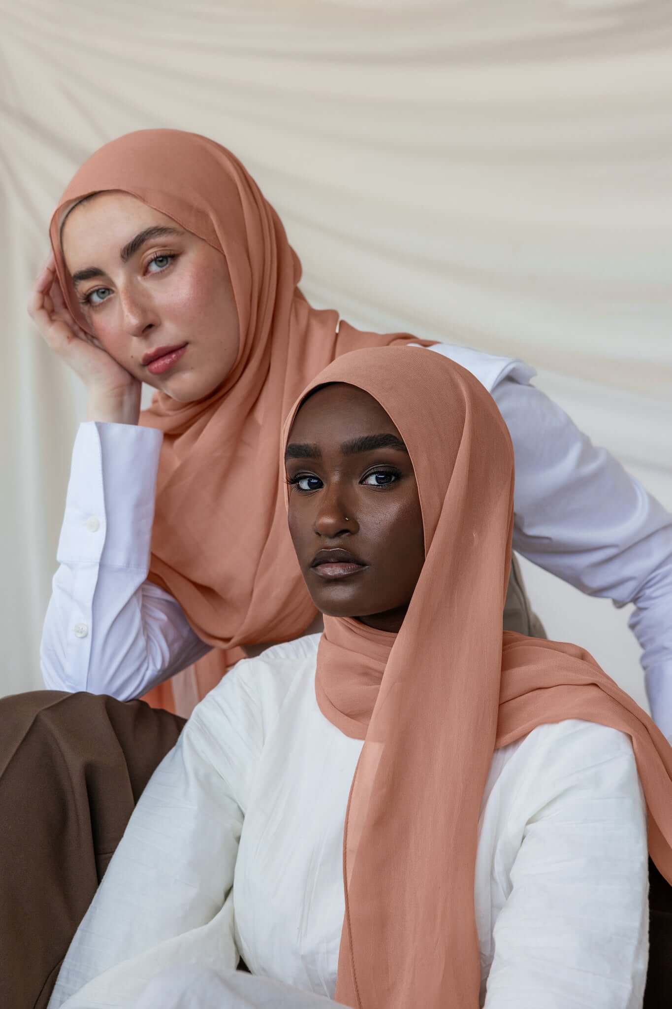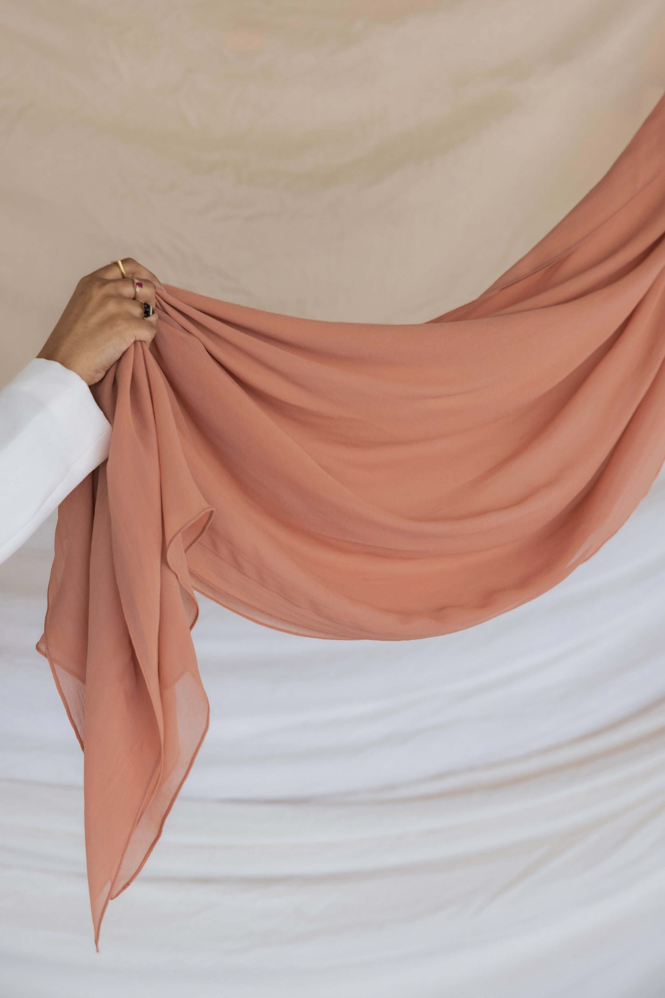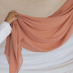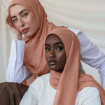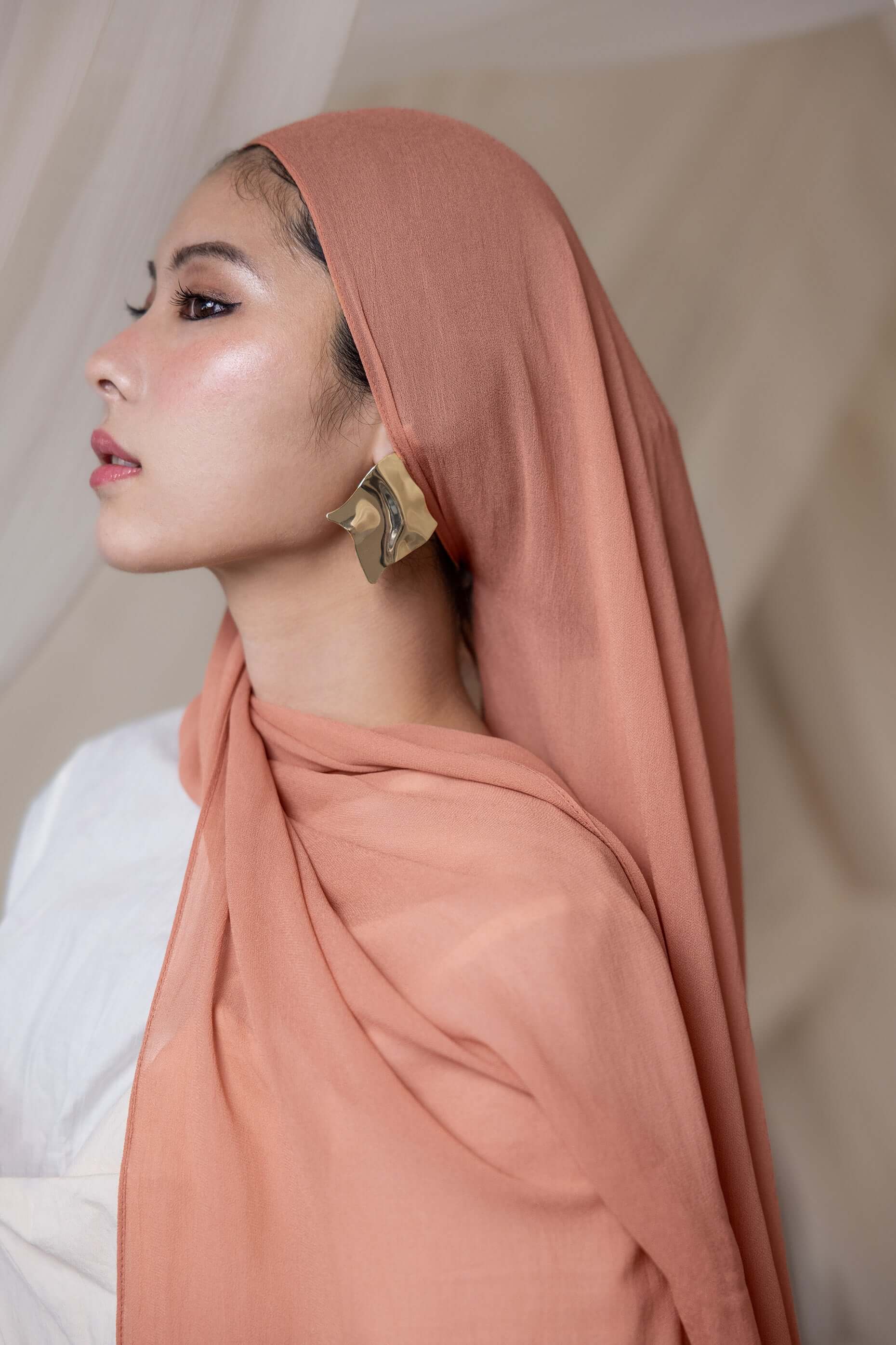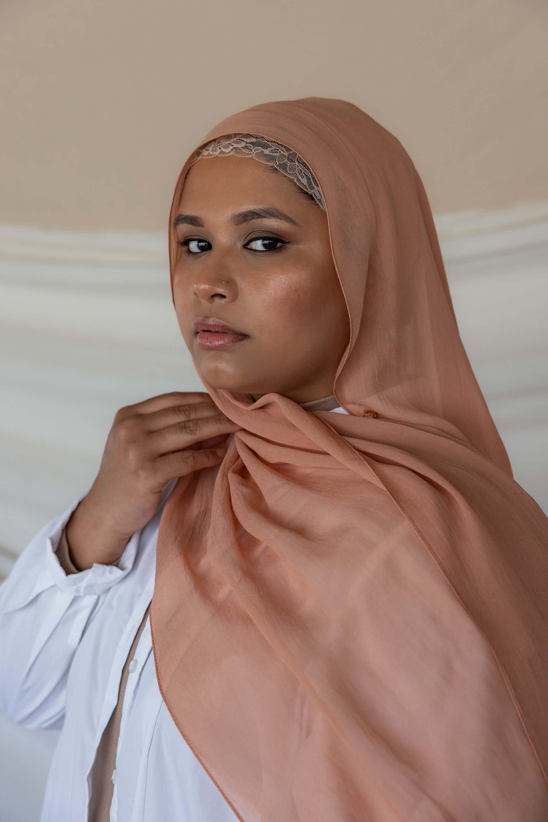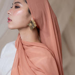 Your new favorite Summer hijab is here. A soft coral in even softer Crepe Chiffon that’s sustainable and made of 100% cotton bemberg. Enjoy the luxurious feel of our Terra Crepe Chiffon fabric. Perfect as a pure chiffon hijab or a stylish chiffon silk scarf for any occasion.