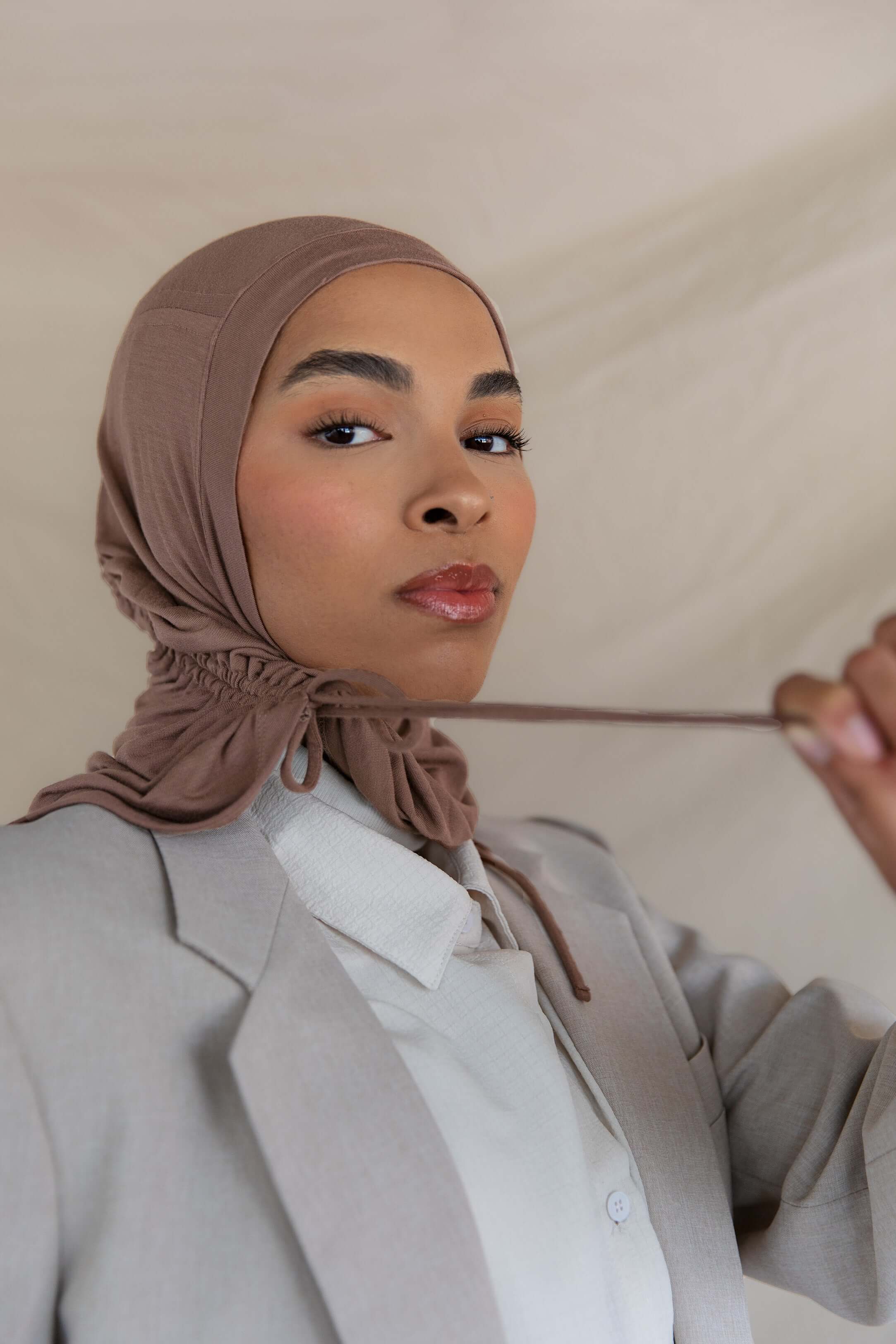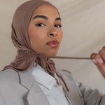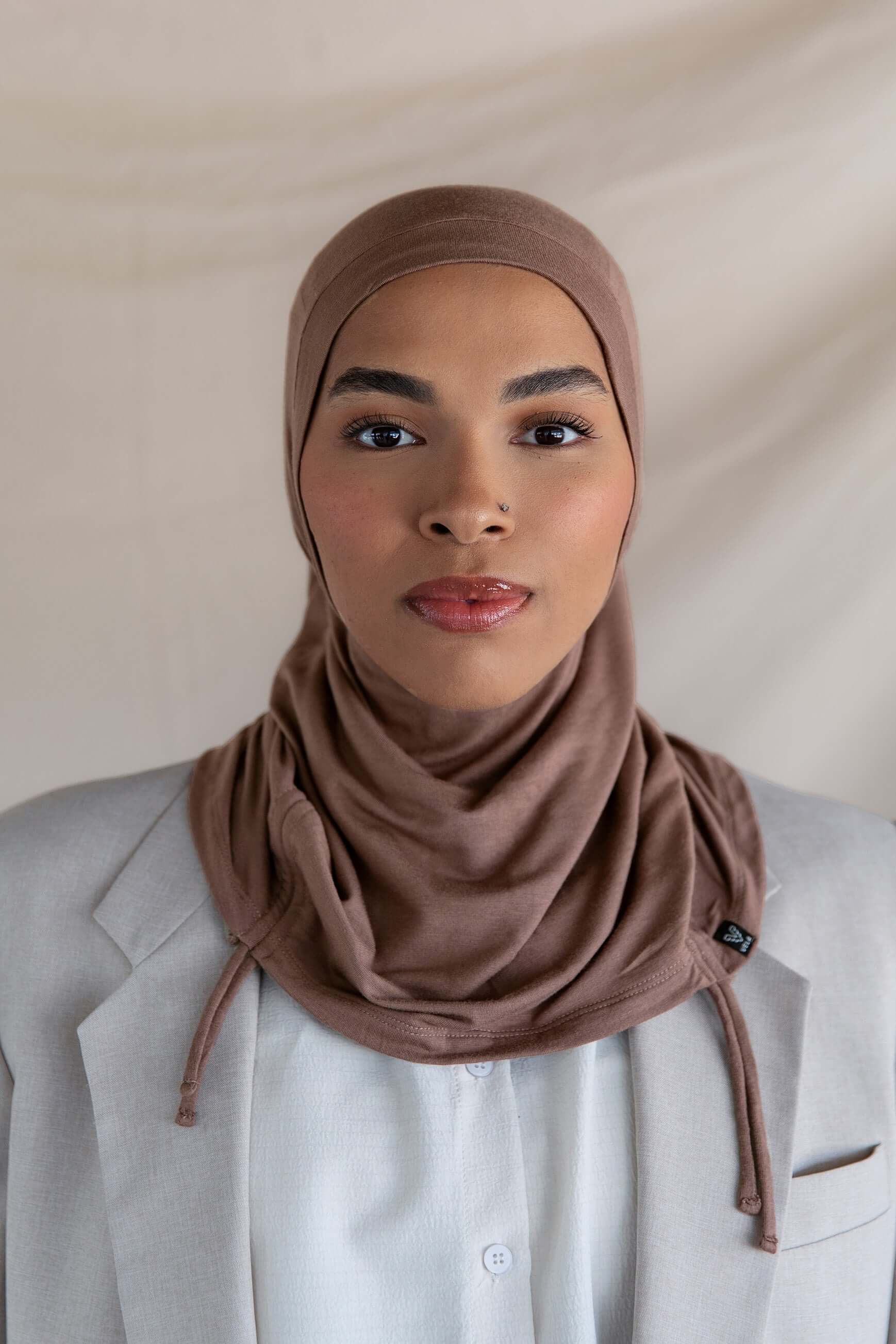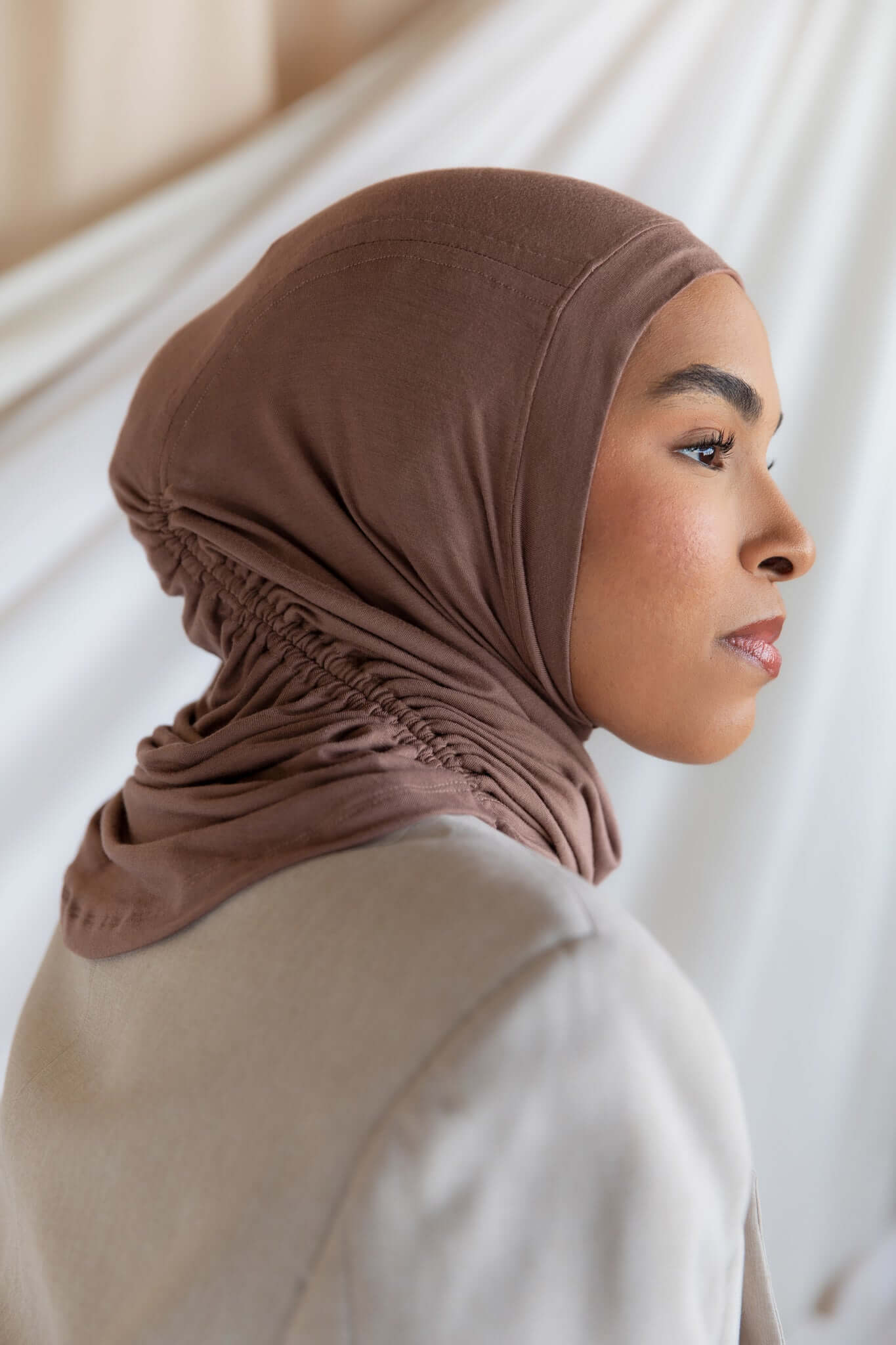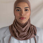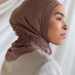 If instant-hijab was an it-girl. Insanely soft jersey-modal in a flattering taupe neutral makes this hijab so good, then adjustable drawstrings take it to the next level. Designed for all-day comfort, this soft brown ruching hijab is a breathable chestnut hijab with a textured brown hijab finish, perfect for effortless style.