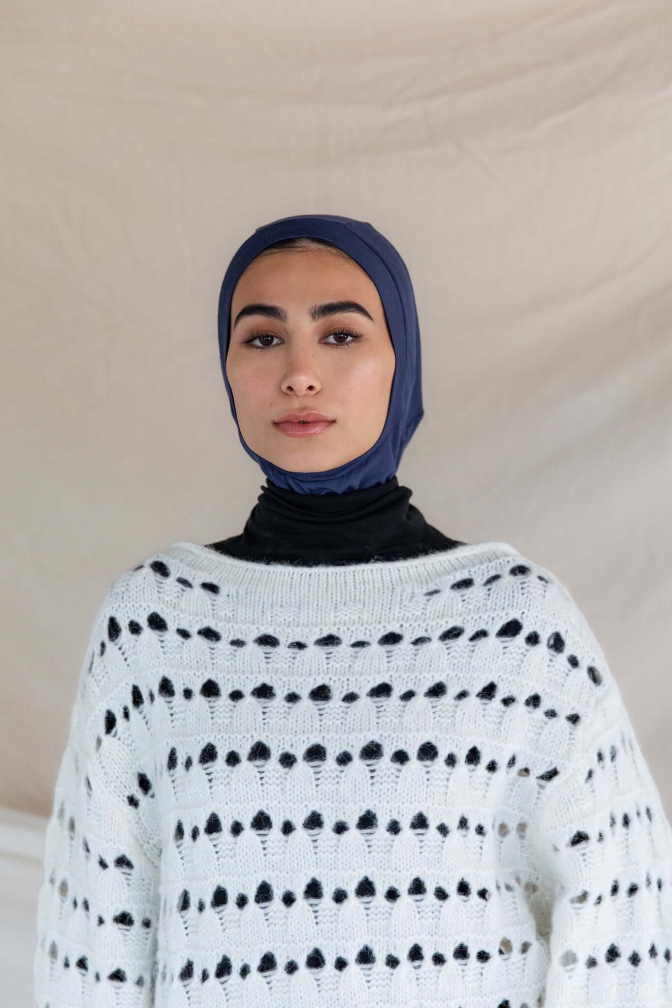 Look instantly snatched with this classic contour hijab ink. In versatile dark blue, you’ll reach for it again and again. This modest indigo ink hijab offers a sleek fit, making it the perfect blue contour hijab for effortless styling.