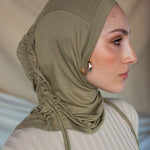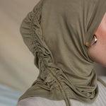 I love this colour, the fit, the ruching detail elevates it from the average slip on hijab. It’s also very flattering around the face and frames it nicer than other slip on hijabs I’ve tried.