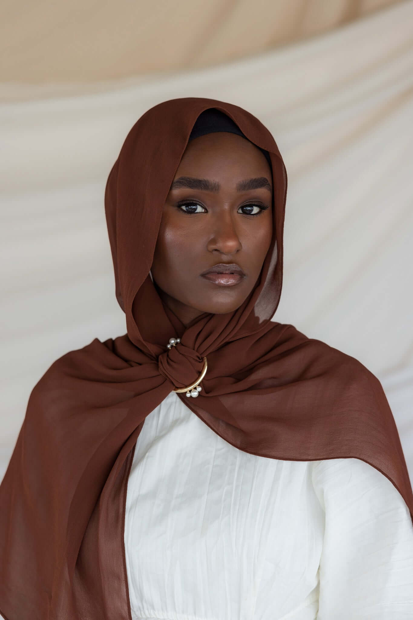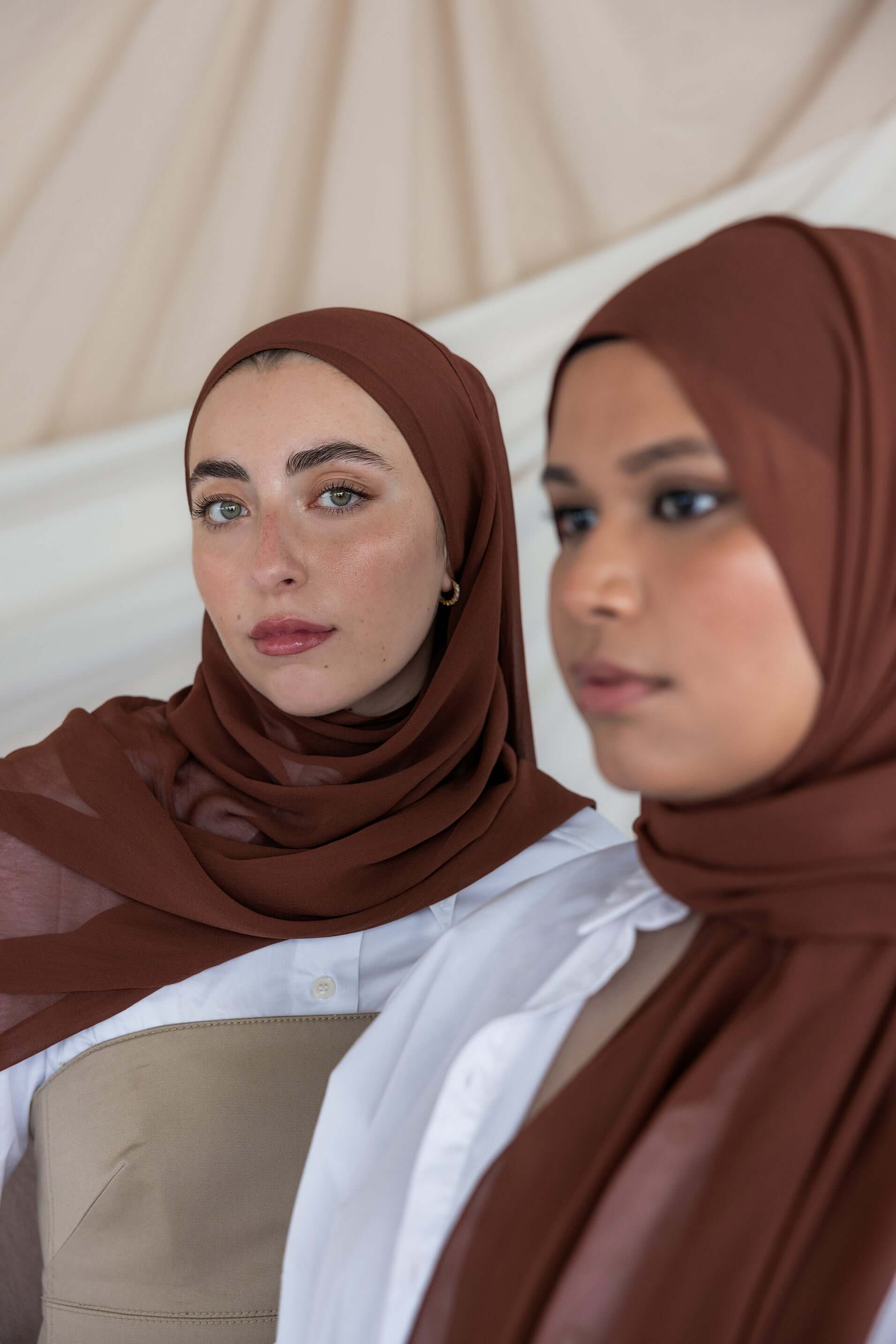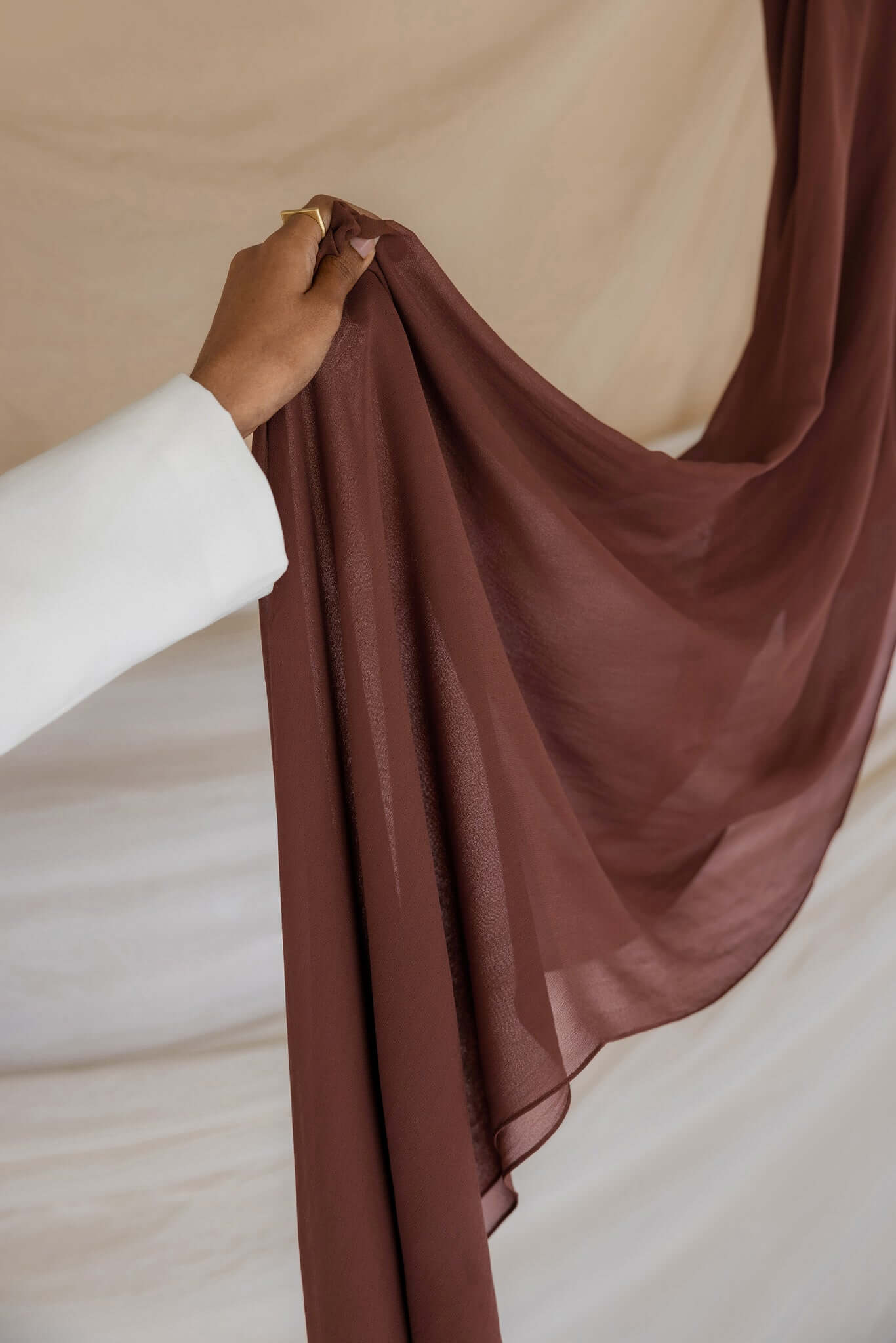 A glowing Henna brown that compliments all skin tones. Custom dyed in our new Crepe chiffon fabric to give you the perfect sustainable hijab made of 100% cotton bemberg. Experience the luxury of our Vela crepe chiffon, offering the best in pure chiffon hijabs. This non-slip chiffon hijab ensures all-day comfort and style.