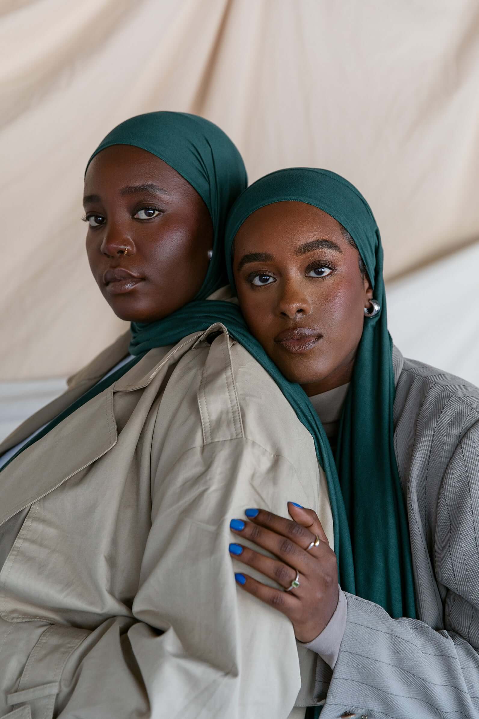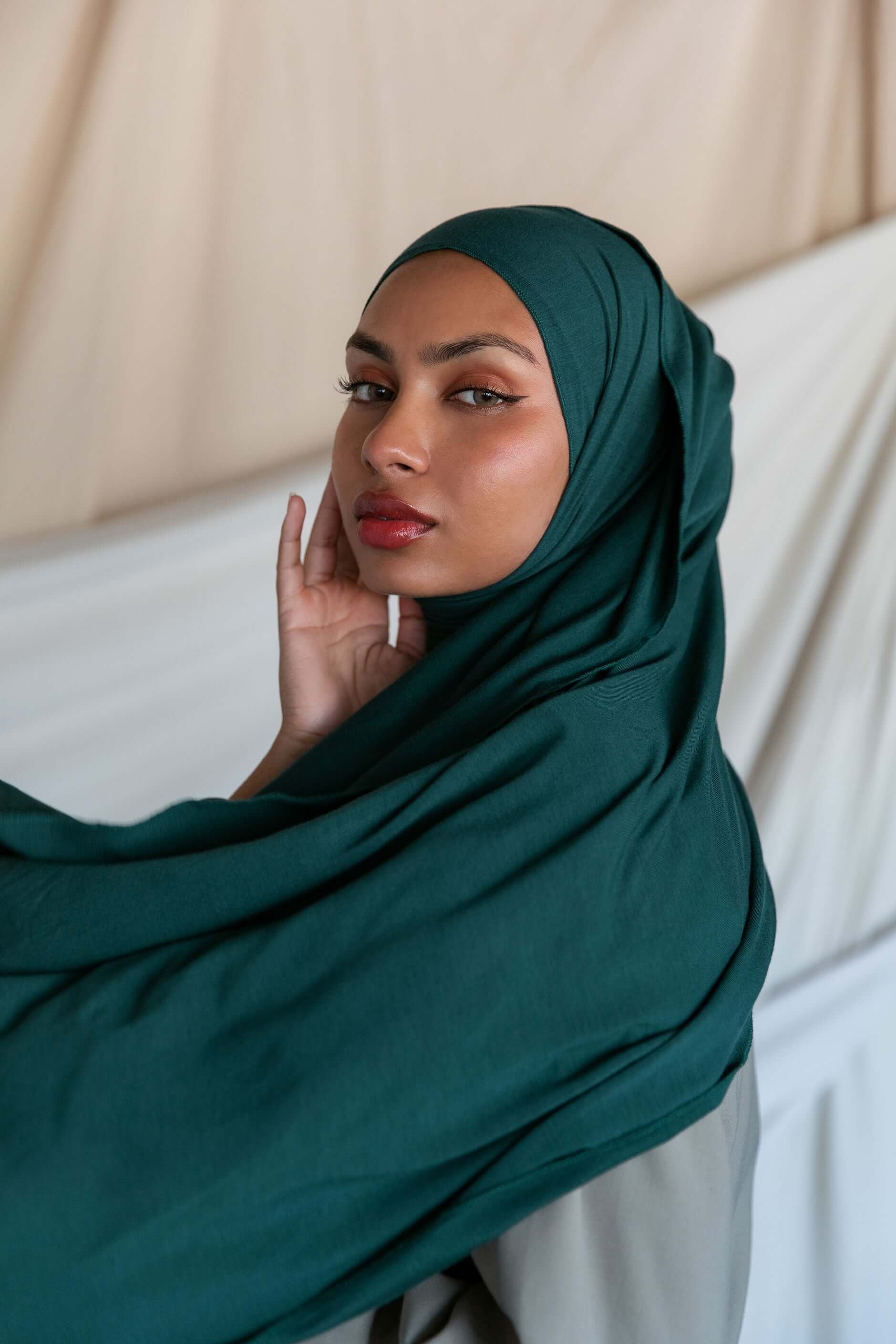 The timeless evergreen everyone is obsessed with is now available in the softest jersey fabric that never wrinkles. This captivating emerald green hijab is a must-have. Made from a soft stretch jersey hijab, it offers the perfect combination of style and comfort. The green jersey hijab provides a comfortable, flawless fit, making it your go-to evergreen hijab for every occasion.