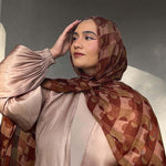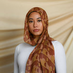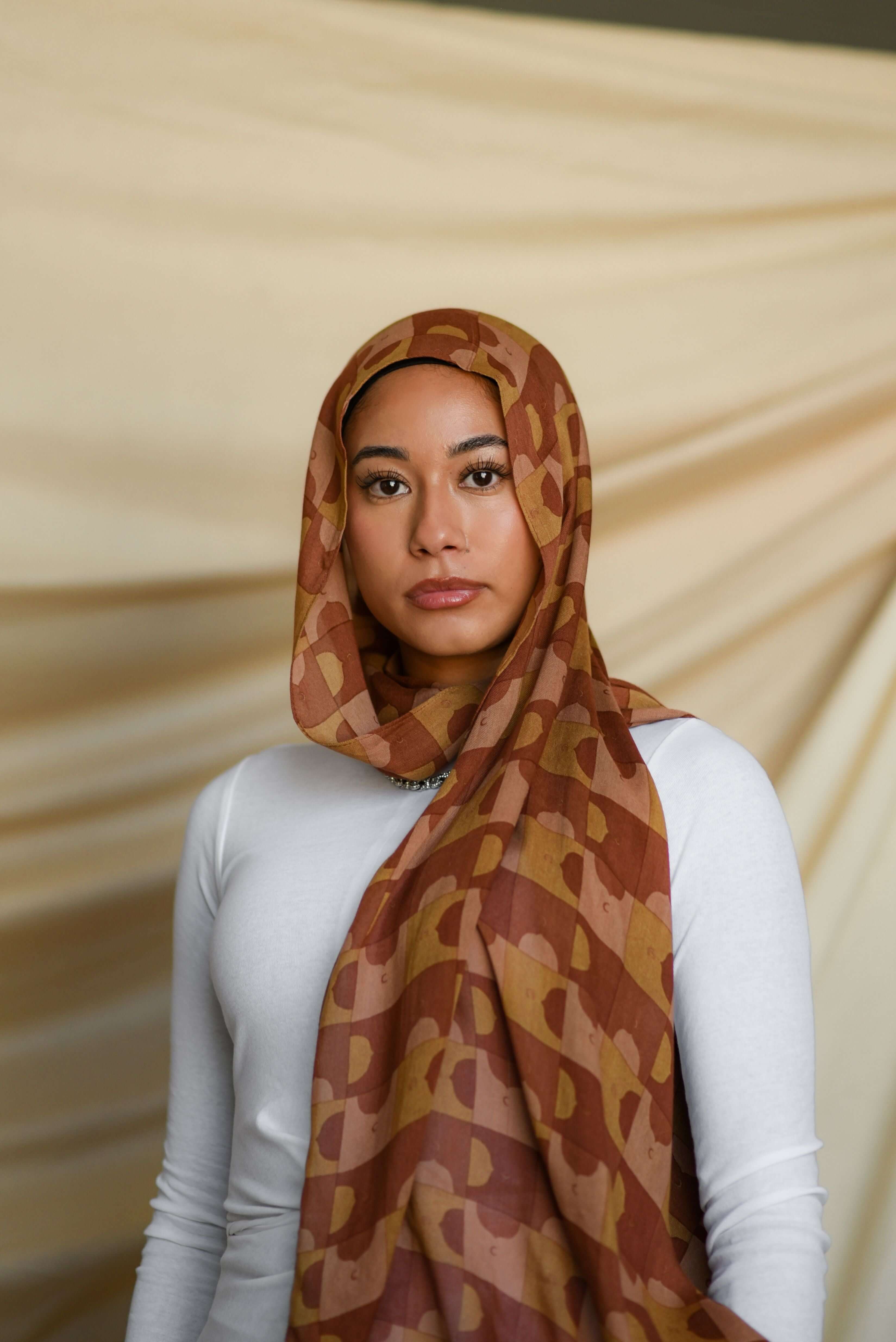 Embrace the enchanting allure of our Crescent Domes hijab, a masterpiece that captures the captivating colors of a sunset over crescent domes. Crafted with neutral hues of golden tan and soft browns, this hijab is custom-printed on modal, ensuring a timeless piece that effortlessly complements any outfit. Whether worn during Ramadan or beyond, this hijab is destined to become a wardrobe staple.