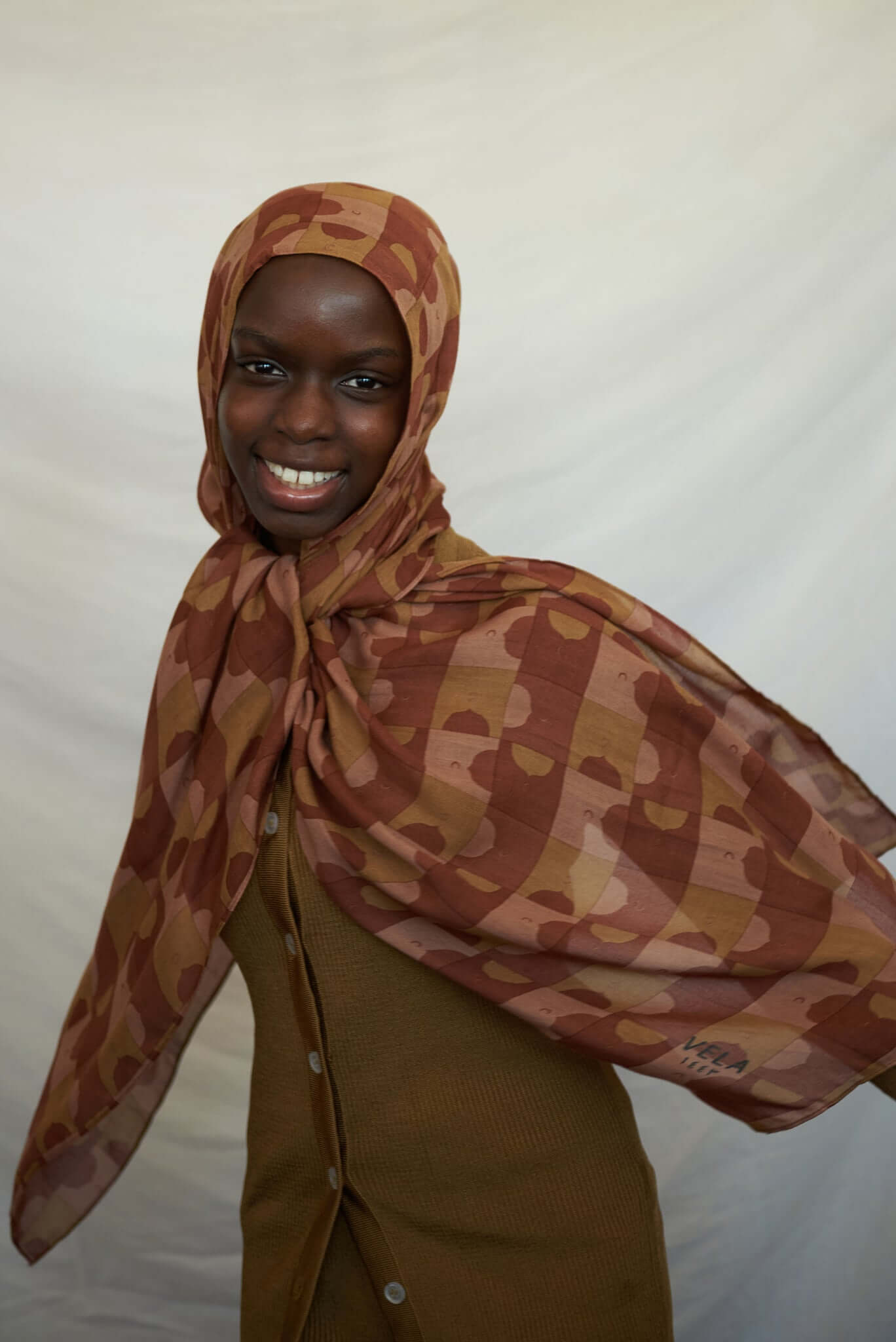 I love this hijab the pattern is amazing and it is super light weight perfect for summer . This was my first vela scarf and I am in love .