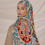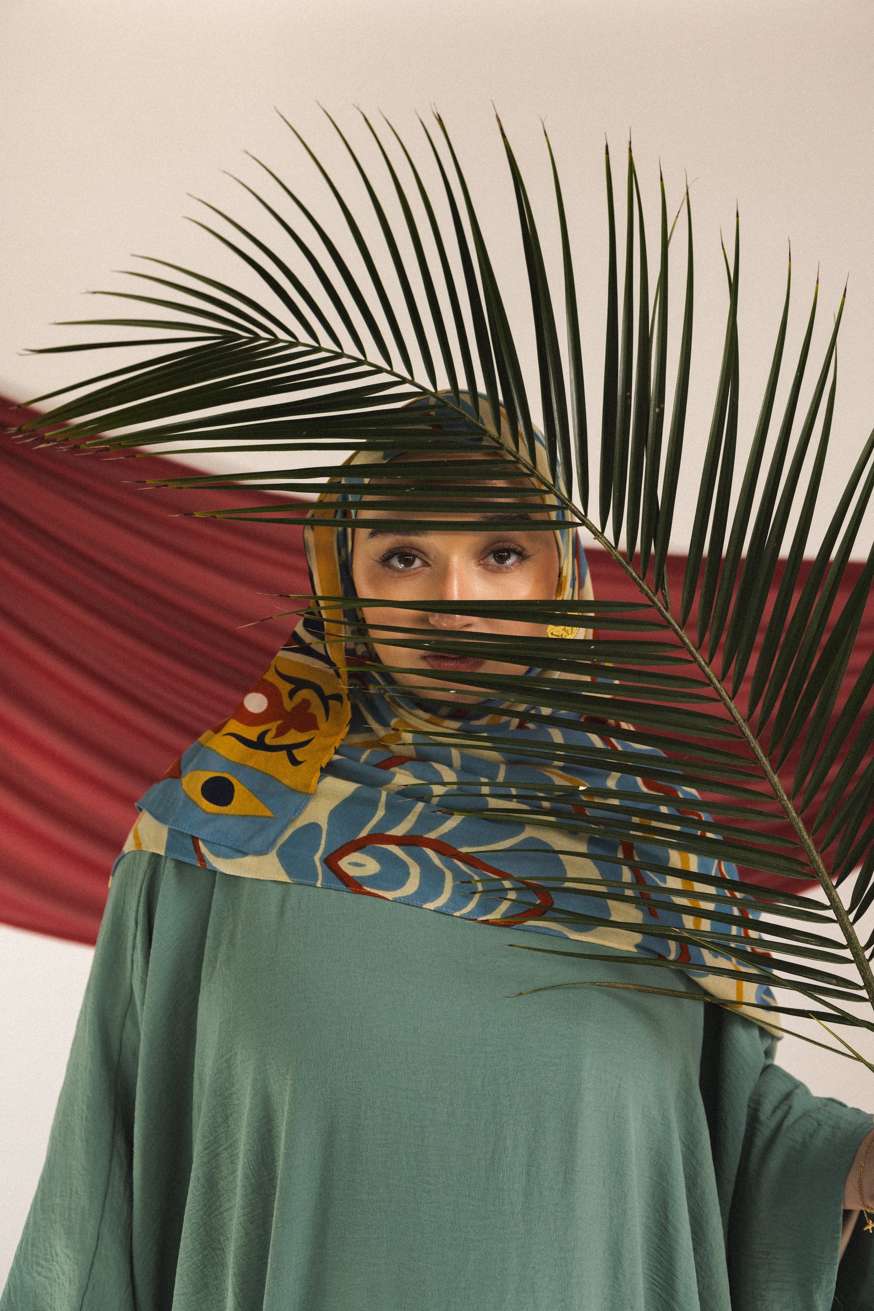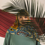 Om Al Dunya meaning “Mother of the World” is a title Egypt holds with pride. Designed by Egyptian artist Jeneen Elbershawi, this print celebrates the women in her family: bold, fresh, expressive, and endlessly rooted. Hues of emerald blue, desert sand, and warm gold weave into the design, embedding a love letter to Egypt in every motif. Printed on our signature modal fabric, it offers a lightweight, flowing drape – a wearable celebration of heritage and identity.