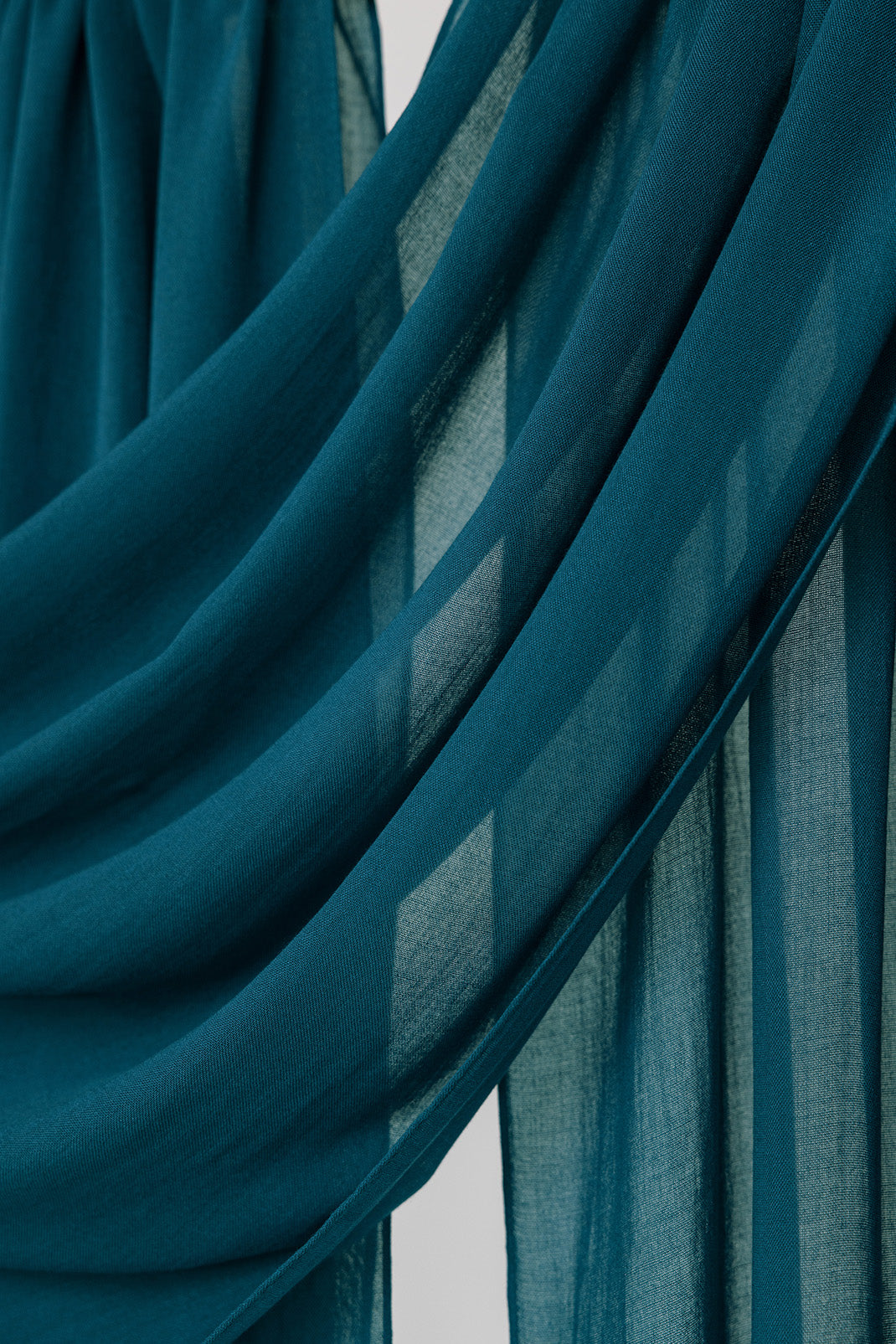 Close-up of teal fabric with a draped effect