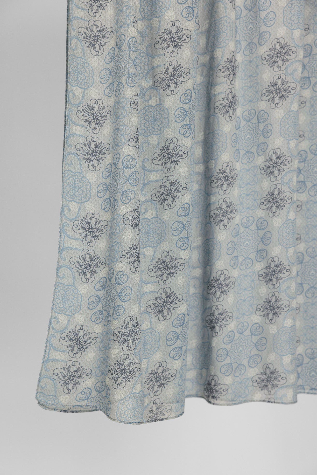 Light blue floral patterned fabric on a plain background