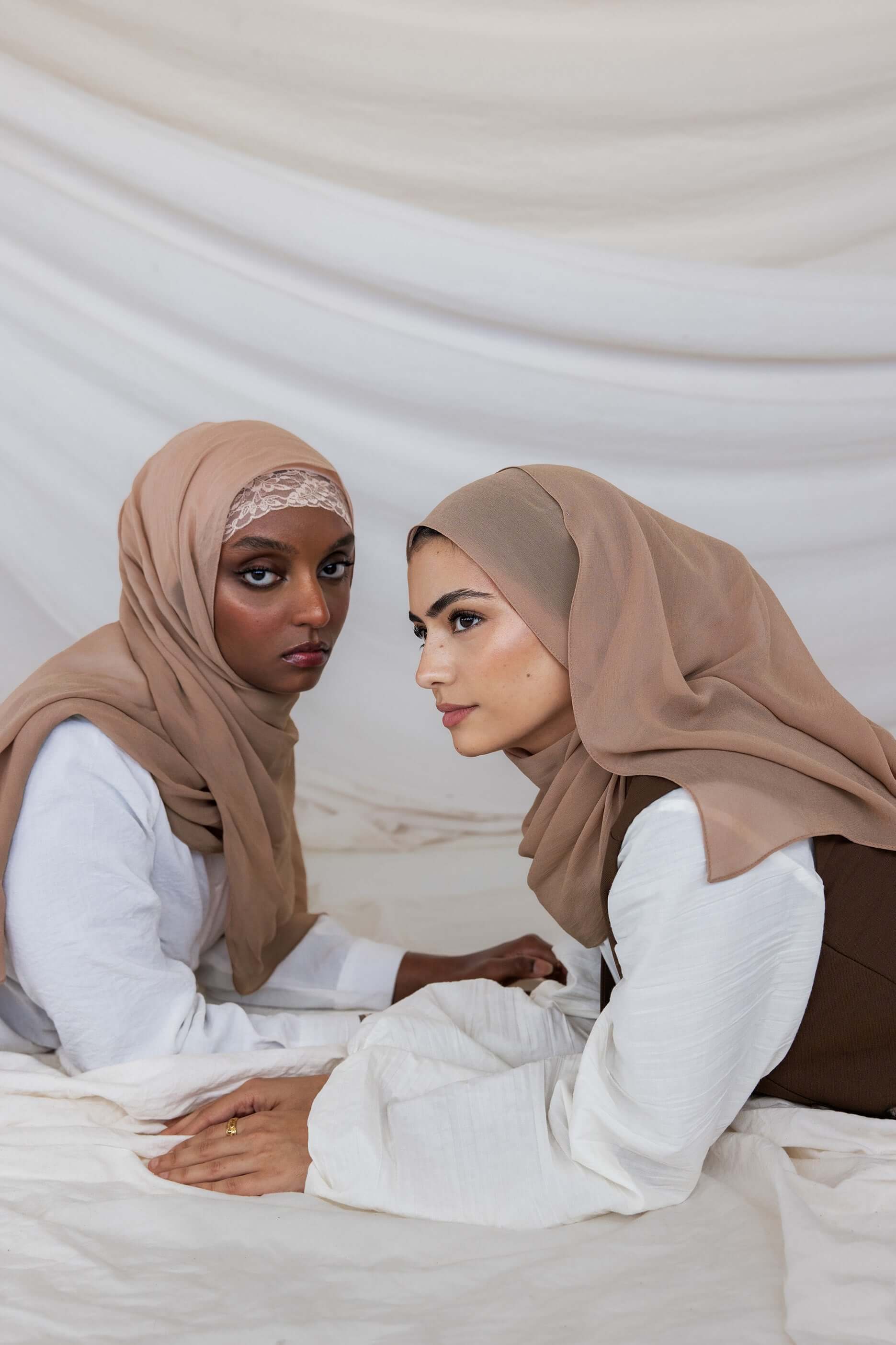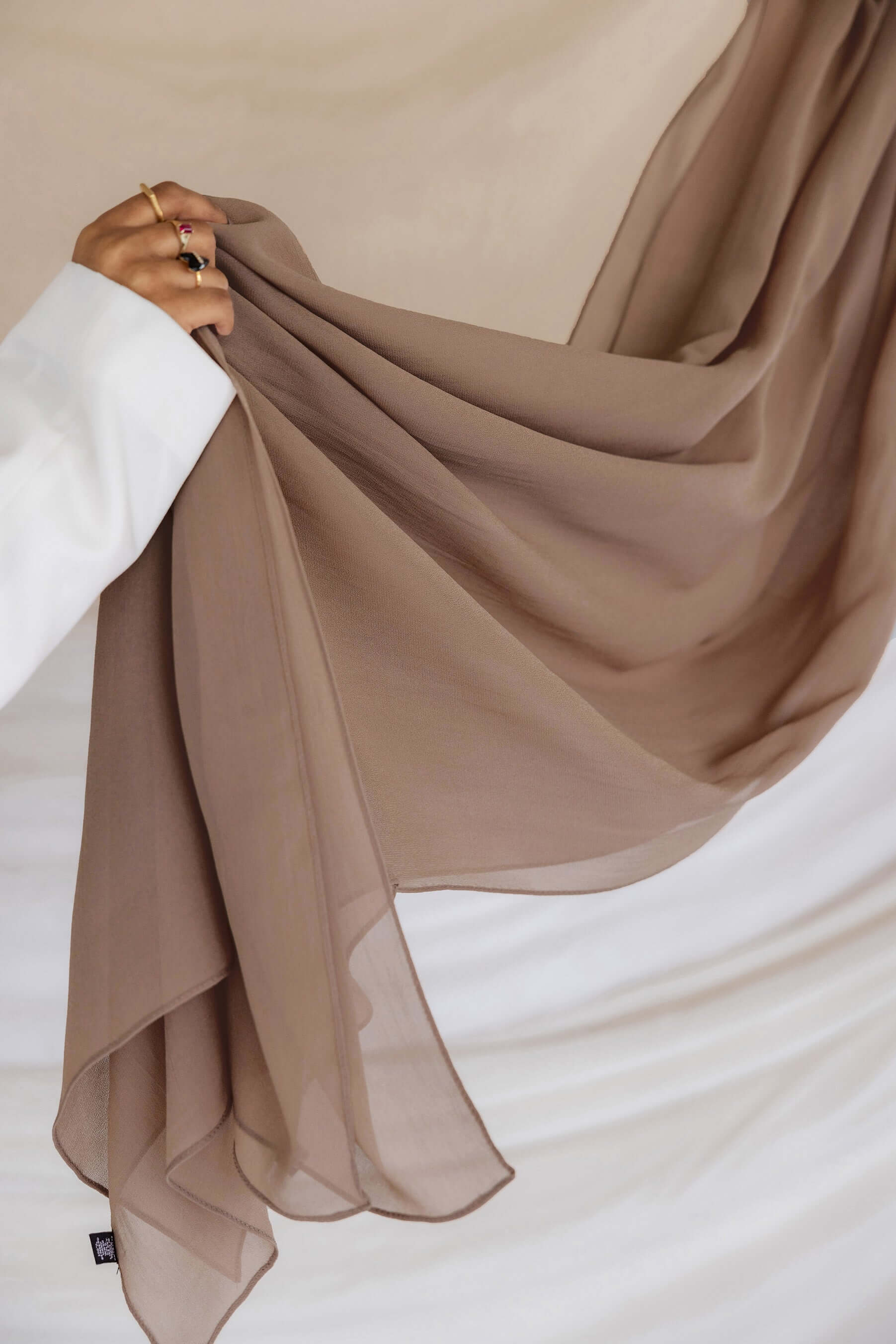 A subtle mix of warm caramel undertones makes for a sumptuous scarf that wins over all other neutral hijabs. In fluid Crepe Chiffon fabric that elevates any look. Made of 100% cotton bemberg. Discover the allure and affordable Honey Beige Crepe Chiffon price. Shop the exclusive Honey Beige VELA and experience the elegance of Vela Crepe Chiffon.