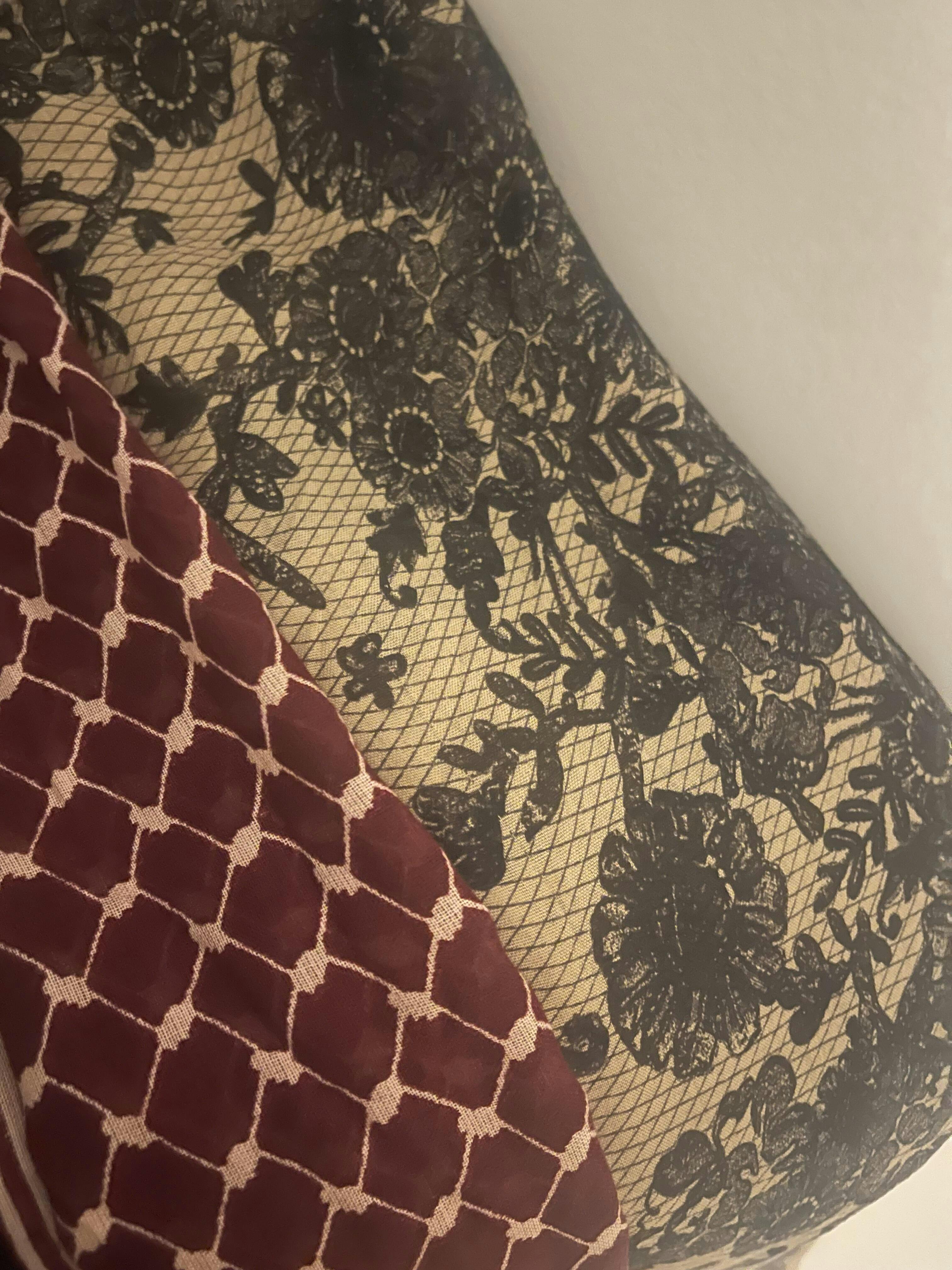 Dark lace meets ethereal beauty in this intricate print that echoes the delicate artistry of traditional embroidery. Chantilly Lace is an ode to vintage romance, draped in mystery and grace. Crafted from modal fabric, this ethically made hijab serves as a vintage lace scarf, offering both elegance and comfort in every layer.