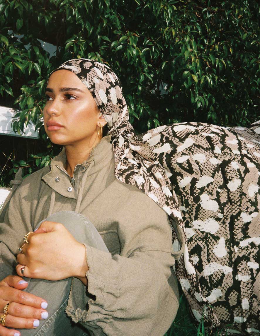 100% modal. Get you a print that can do both: we know you’ve got a bit of that dappled Bambi innocence mixed in with some headstrong Slytherin. This savannah snake print flecked with spots of cream is just the right balance. The exclusive artwork is hand illustrated by Indian-Canadian artist @babbuthepainter.