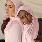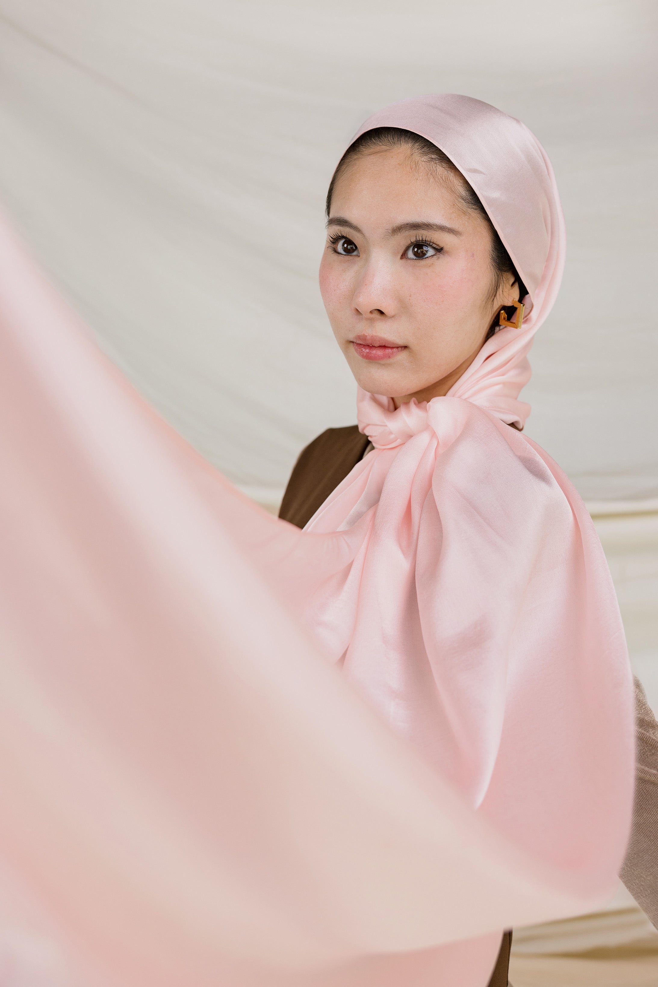 The Powder Rose Silk Satin hijab is the perfect pairing for formal looks, offering an elevated take on the softness and elegance of silk chiffon. With its 100% silky smooth texture and luxurious sheen, it adds a refined shine to any outfit. Its lightweight fabric drapes beautifully, making it ideal for those seeking a high-shine, polished finish for both special occasions and everyday elegance. This pink hijab is a must-have for women who appreciate the perfect blend of style and sophistication in a silk satin hijab.