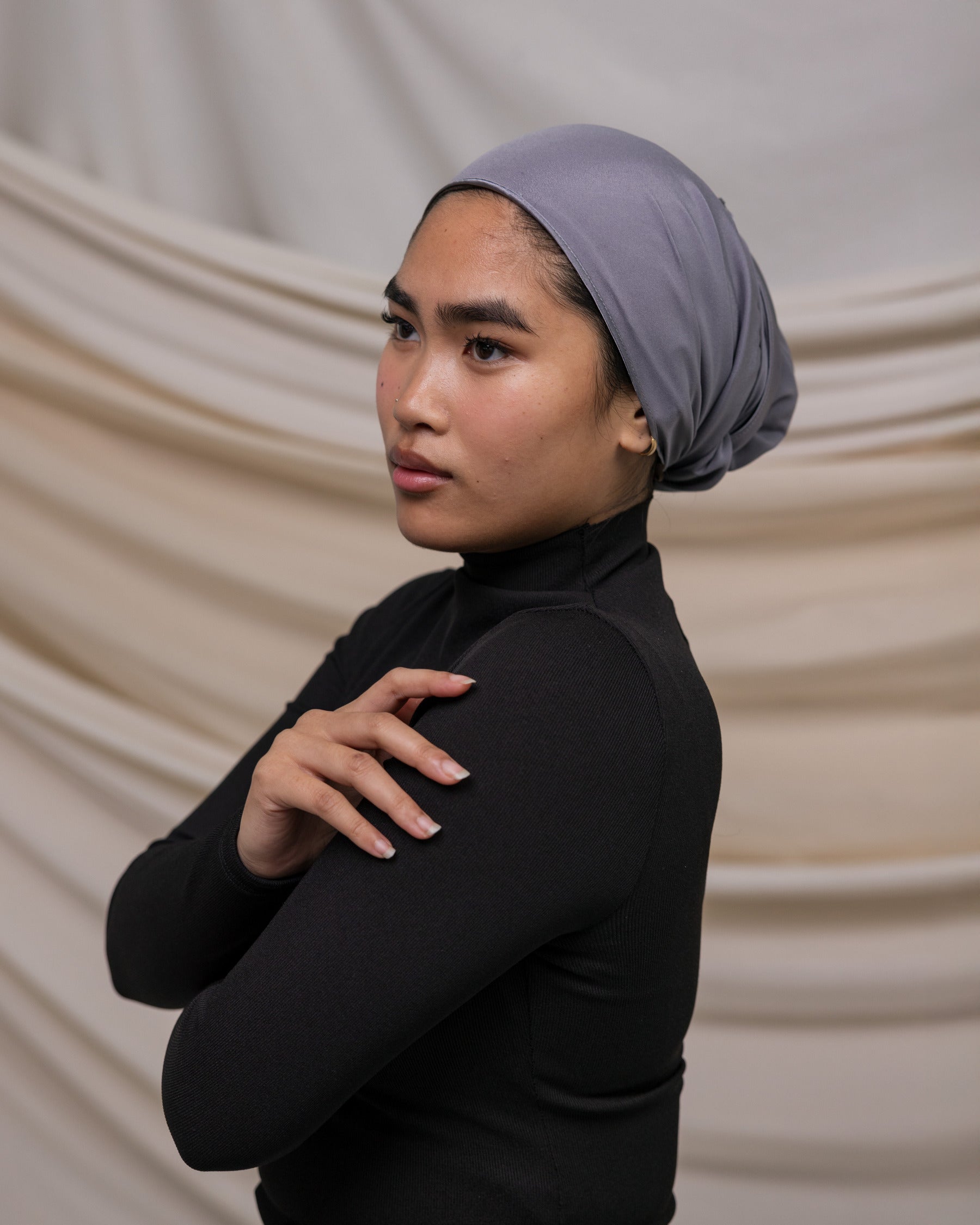 The reinvention of the classic undercap—now with a luxe satin lining and double-sided versatility. Designed for the girl who wants ultimate comfort, protection, and style, this non-slip undercap provides a secure fit, ensuring your hair stays in place. This satin-lined headwear is shaped as a triangle for a customizable fit. Wear it with the satin against your hair for reduced friction and breakage, or flip it for a sleek satin-finished look. Wrap it around your bun or tuck it in—your undercap, your way. Available in Oak, Grey, and Black.