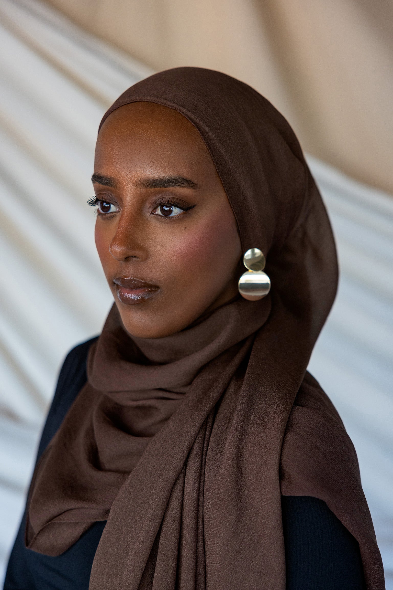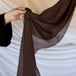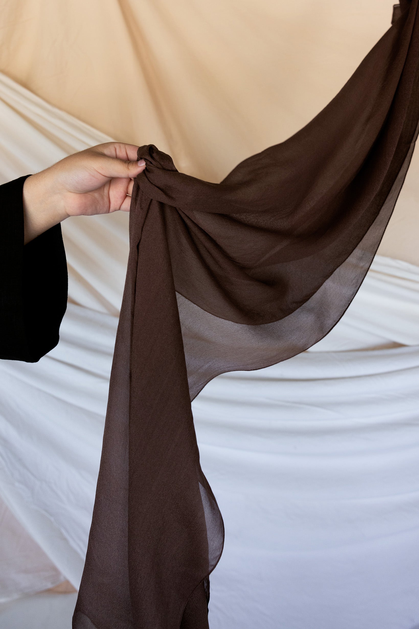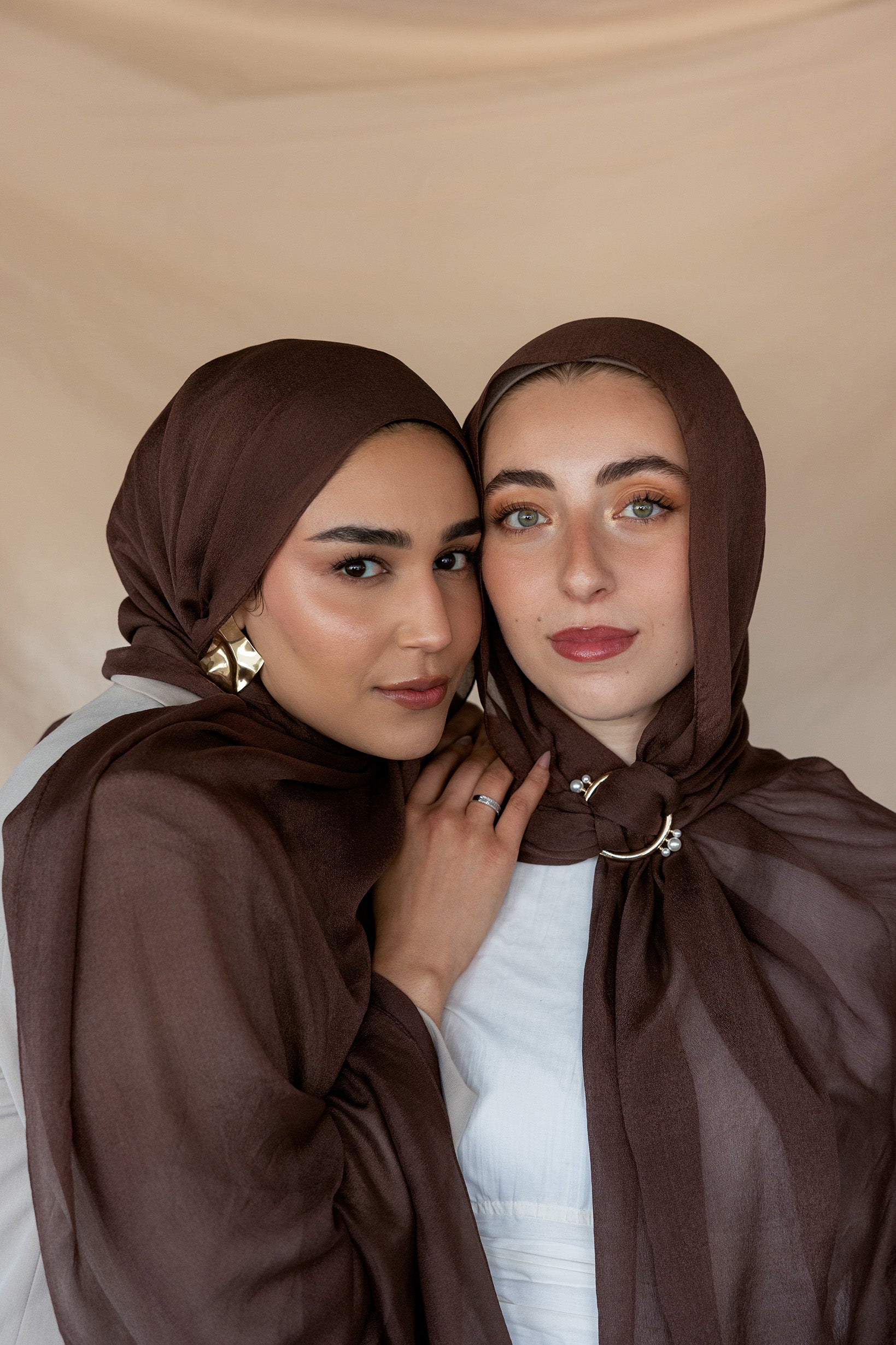 A luxurious chocolate color that you’ll reach for again and again. Crafted with 100% pure silk that drapes beautifully, this Cocoa Silk Chiffon Hijab offers the perfect blend of elegance and comfort. The soft texture and non-slip feel make this Silk Chiffon Scarf an essential addition to your collection.