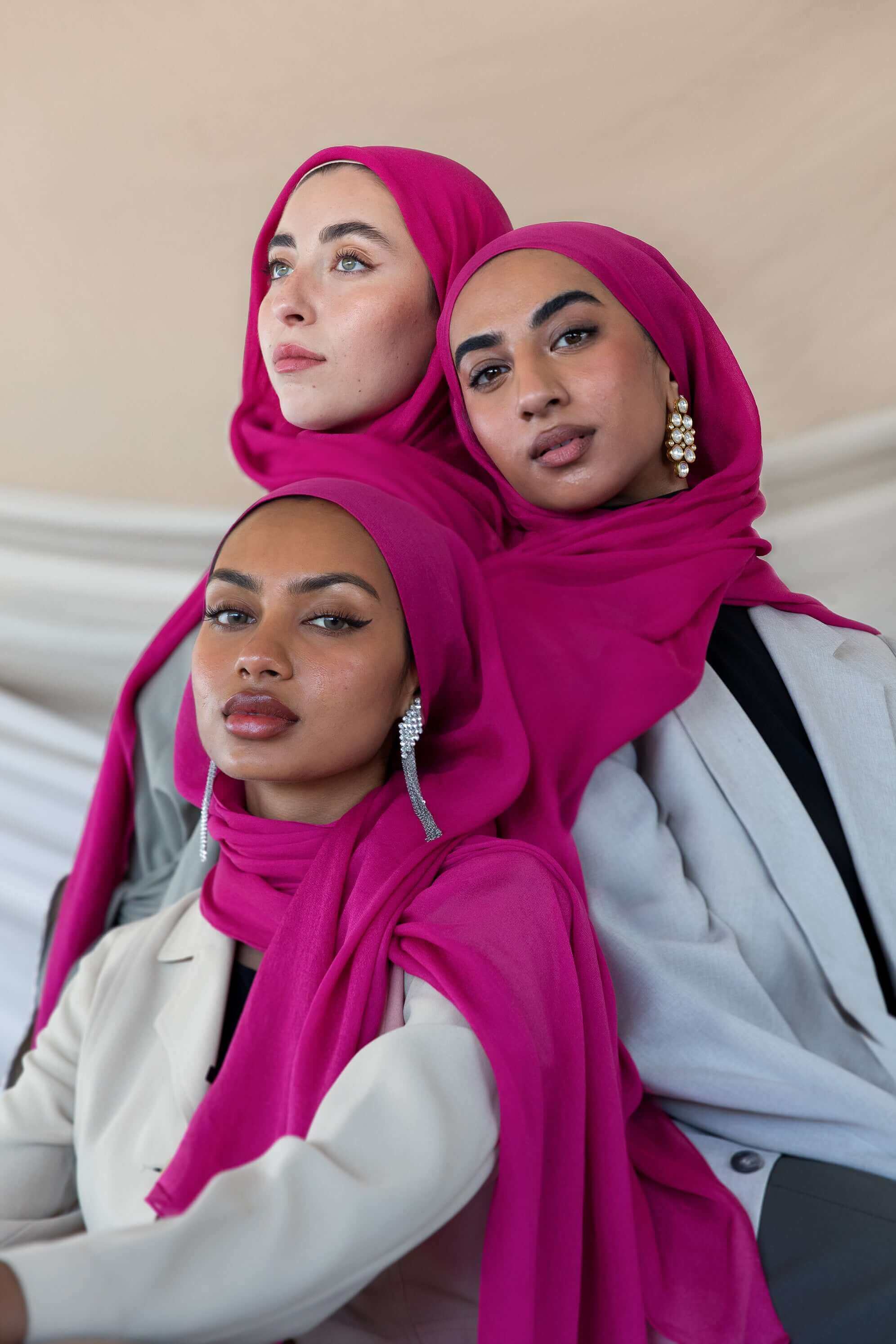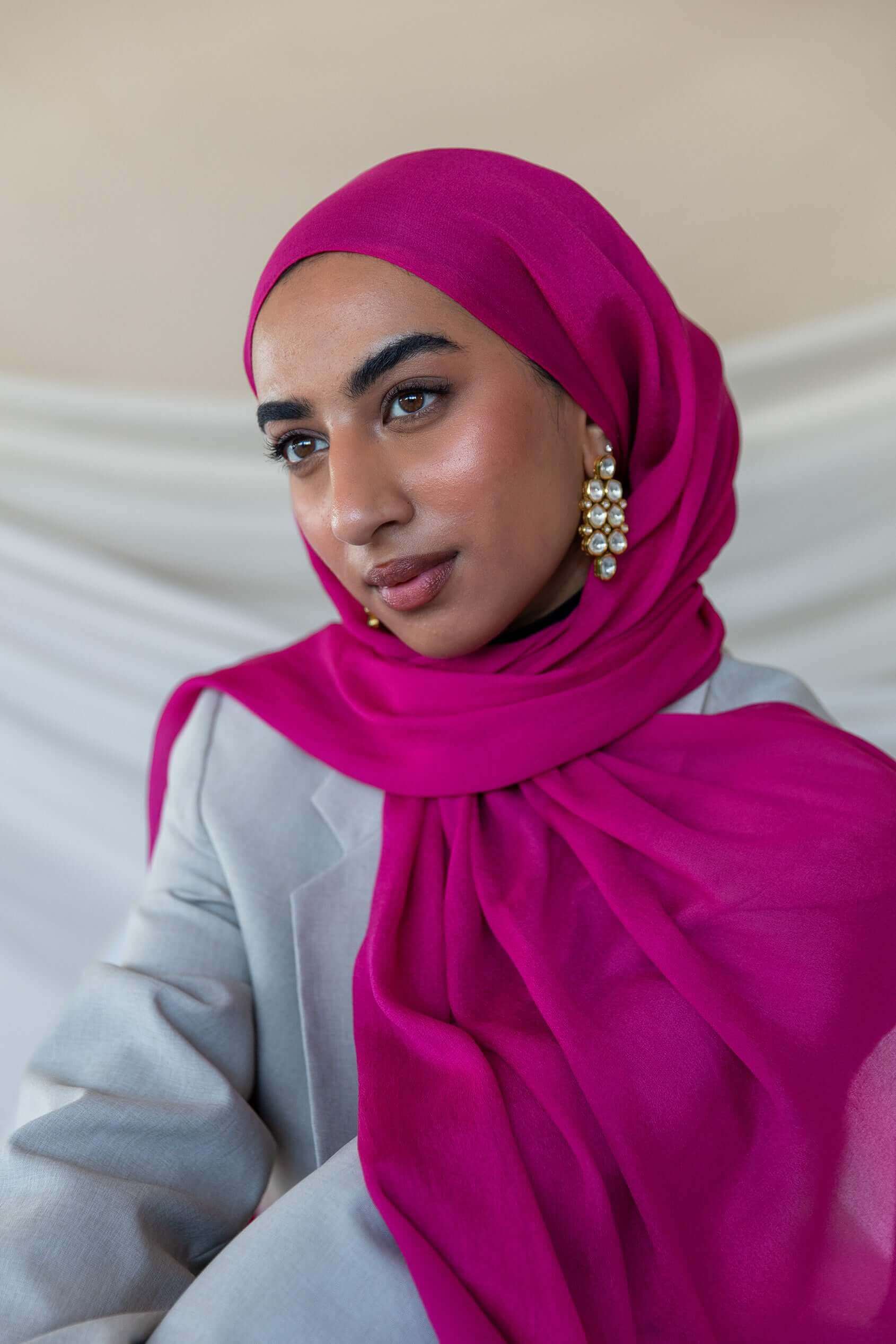 THE fuchsia you’ve seen on all the runways now captured in a luxurious silk chiffon hijab with the smooth draping of chiffon. Available deep fuchsia silk chiffon online, this pure chiffon hijab is a stunning chiffon silk scarf that adds a touch of high-fashion elegance to any look.