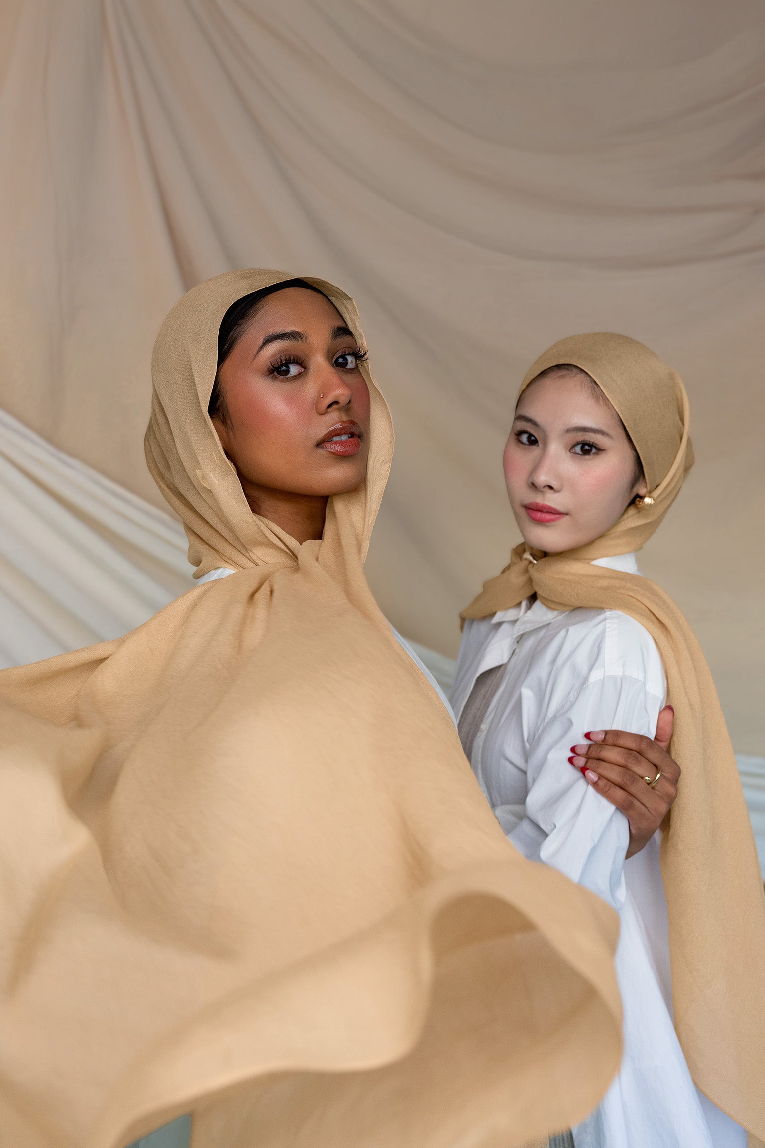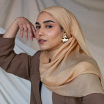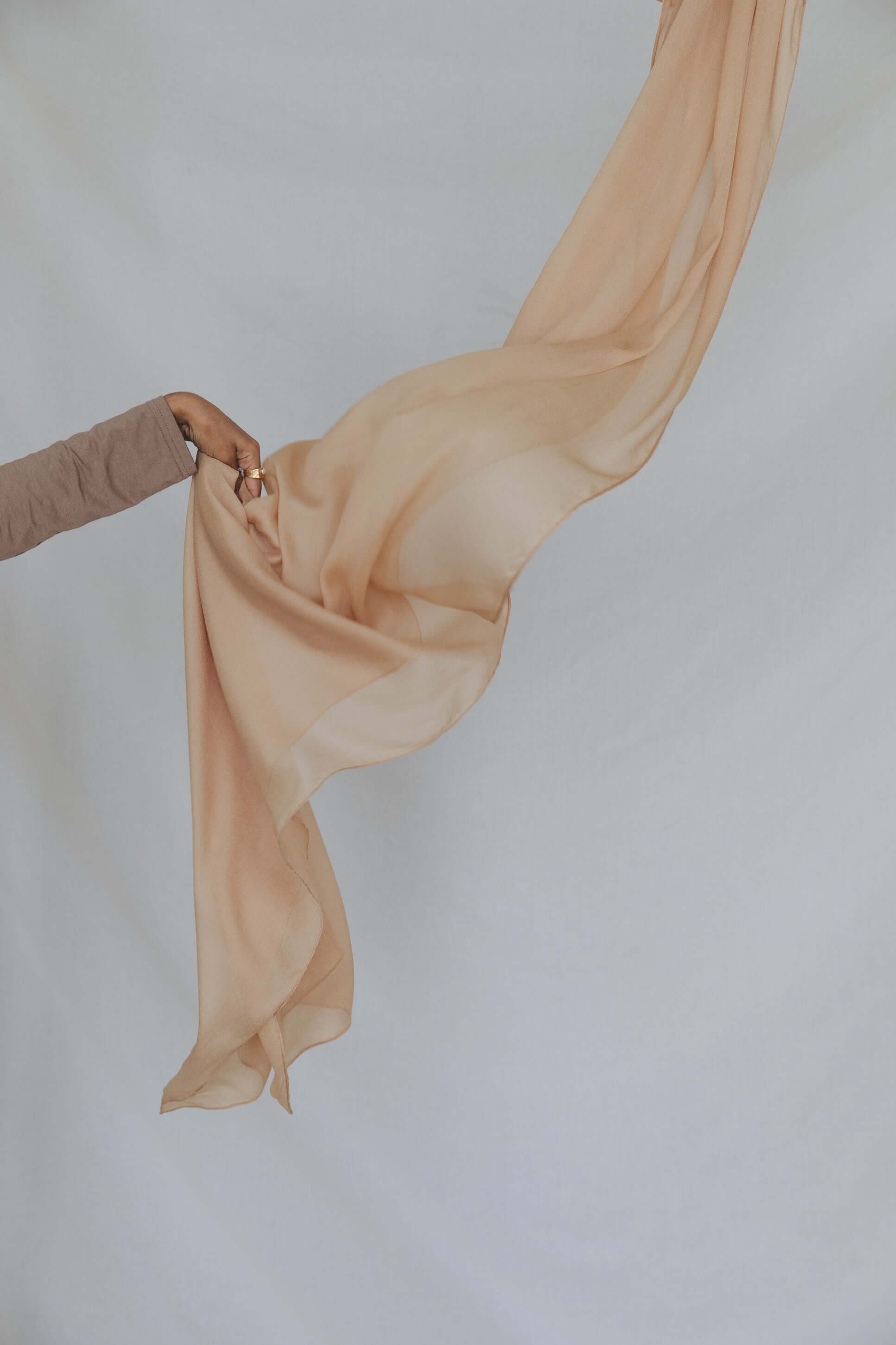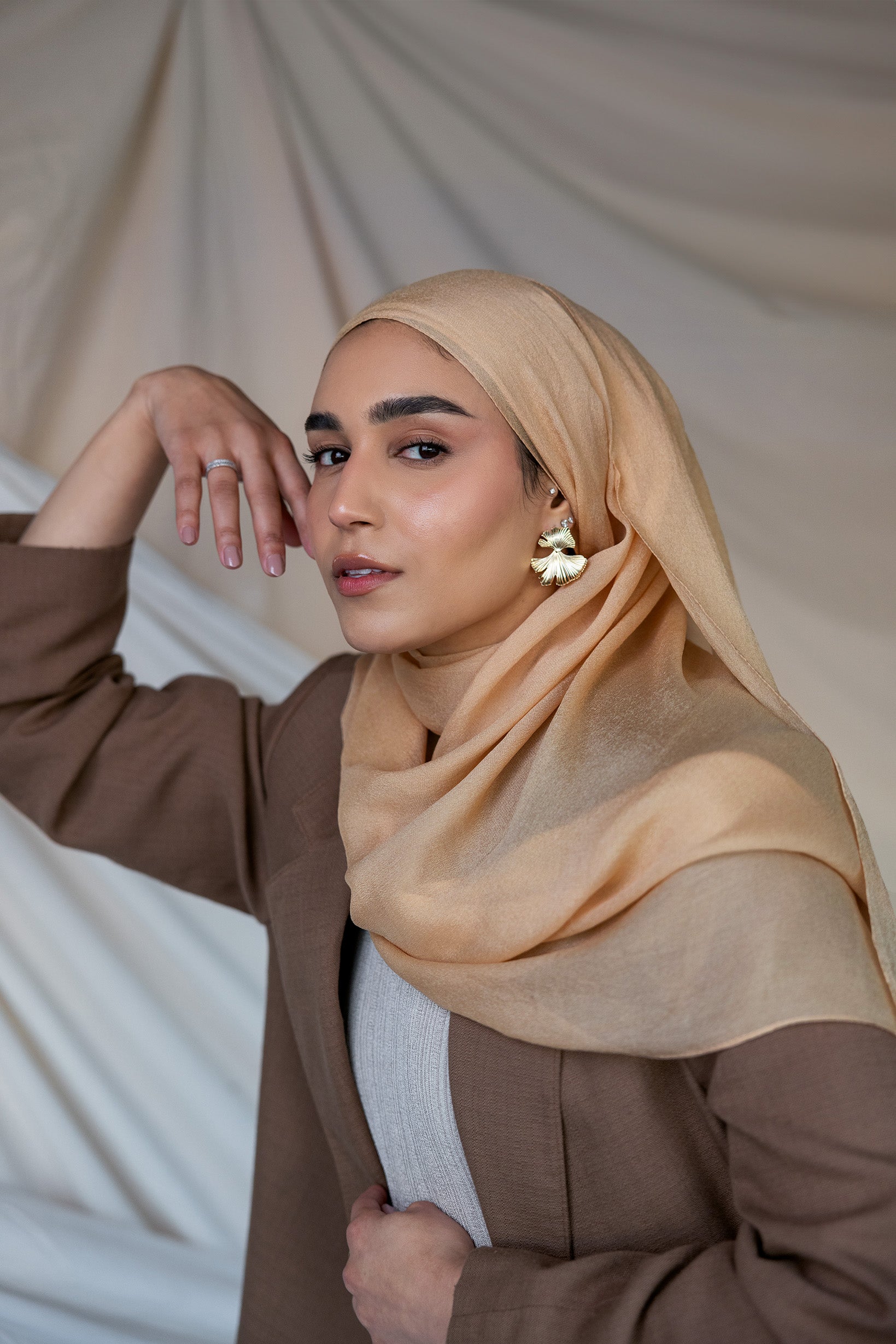 When you want true luxury, only a hijab as soft and luminous as woven gold will do. Custom crafted with 100% silk fibers to give you the iconic drape of chiffon. This Gold Dust Silk Chiffon Hijab offers a shiny chiffon finish, combining elegance with comfort. Perfect for those seeking a sophisticated silk chiffon to elevate their style.