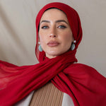 For all the girls who think they can’t pull off a red hijab, this custom rouge is designed to look good on all skin tones. 100% pure silk fabric with the texture of chiffon makes this hijab your new favorite for the party season. Embrace the elegance of our Silk Chiffon Hijab, and indulge in the luxury of a Luxury Silk Hijab or Chiffon Silk Scarf for a sophisticated accessory that stands out.