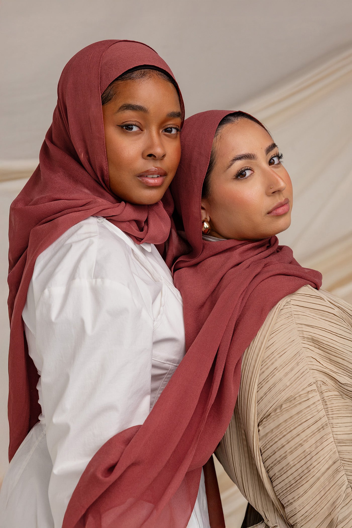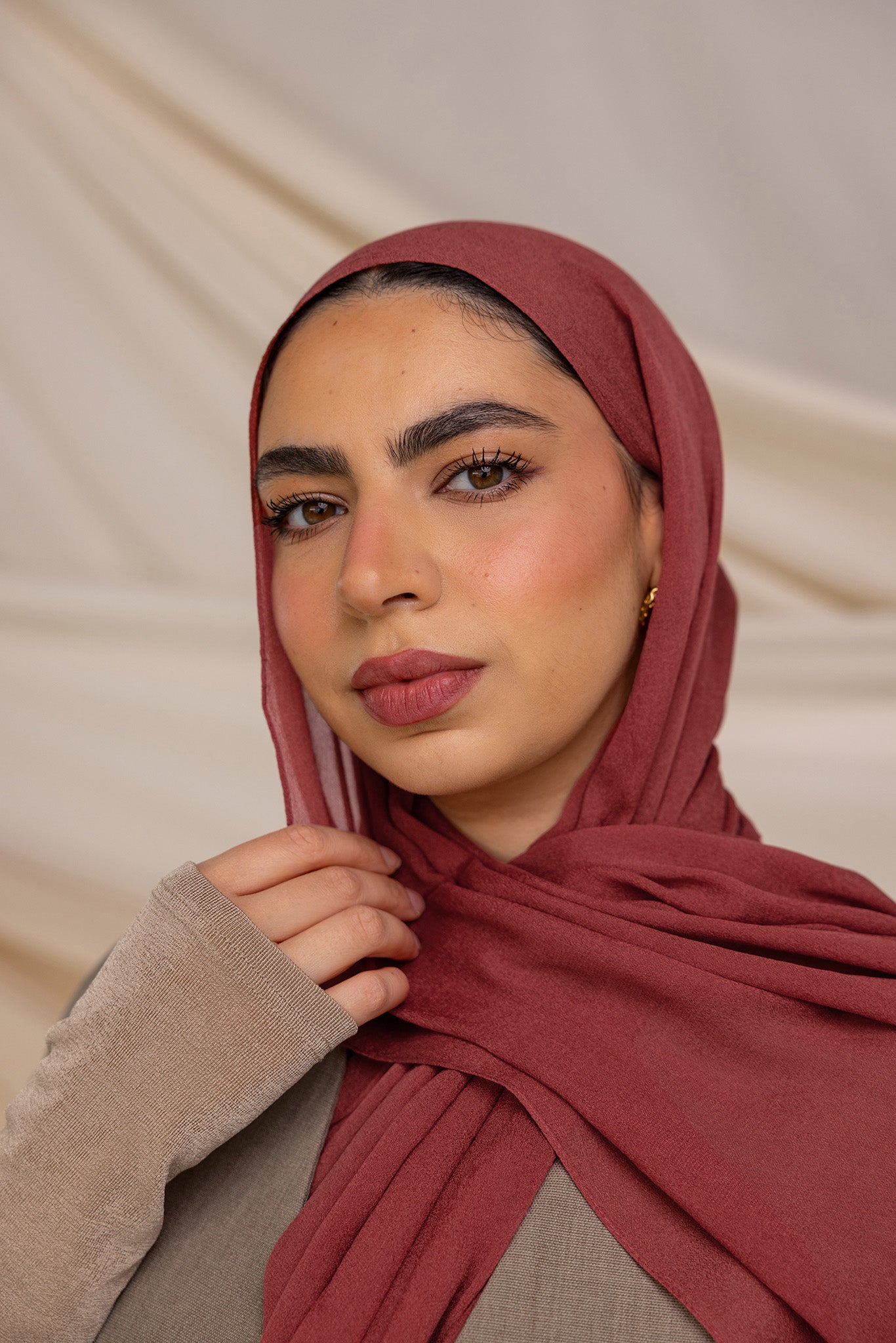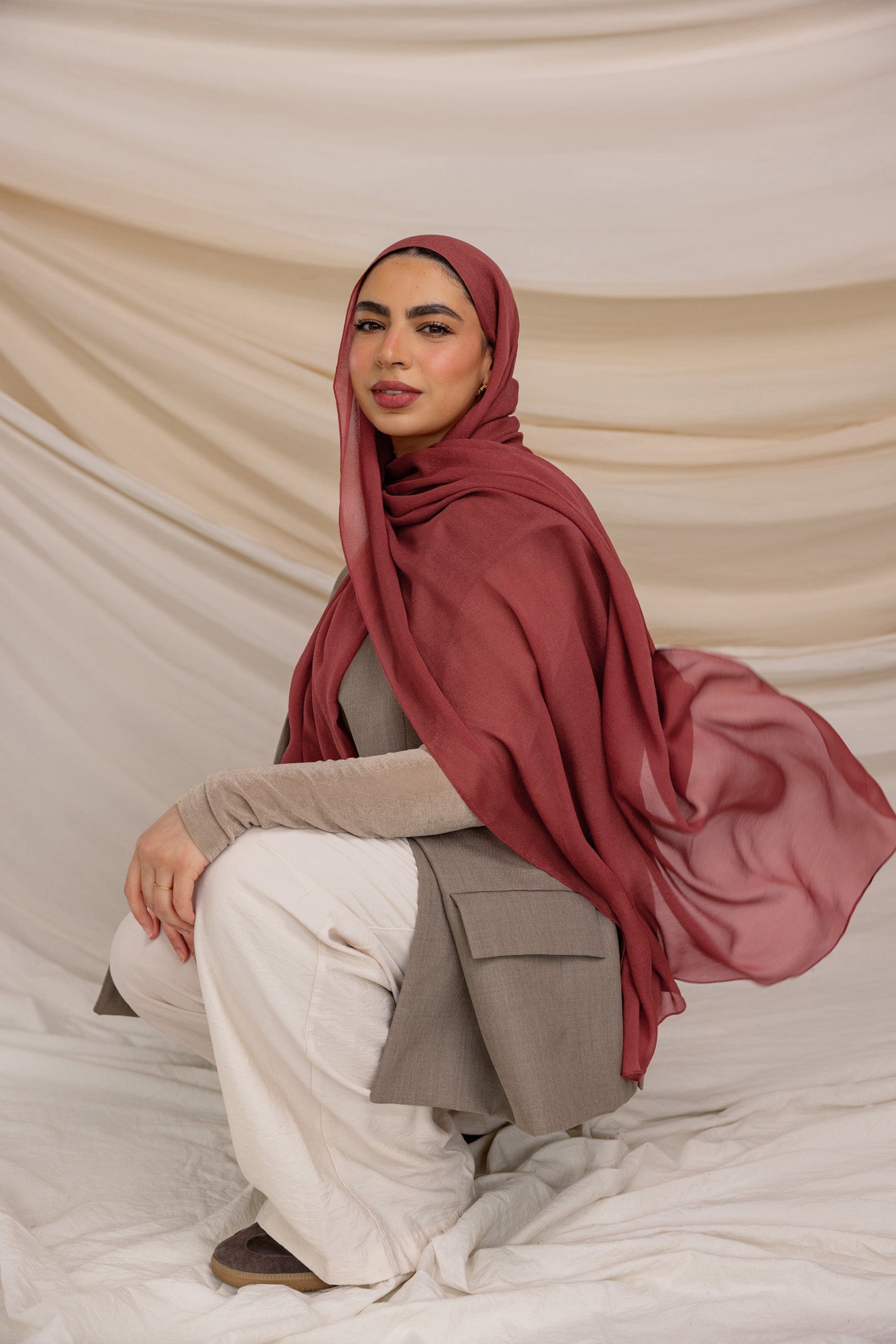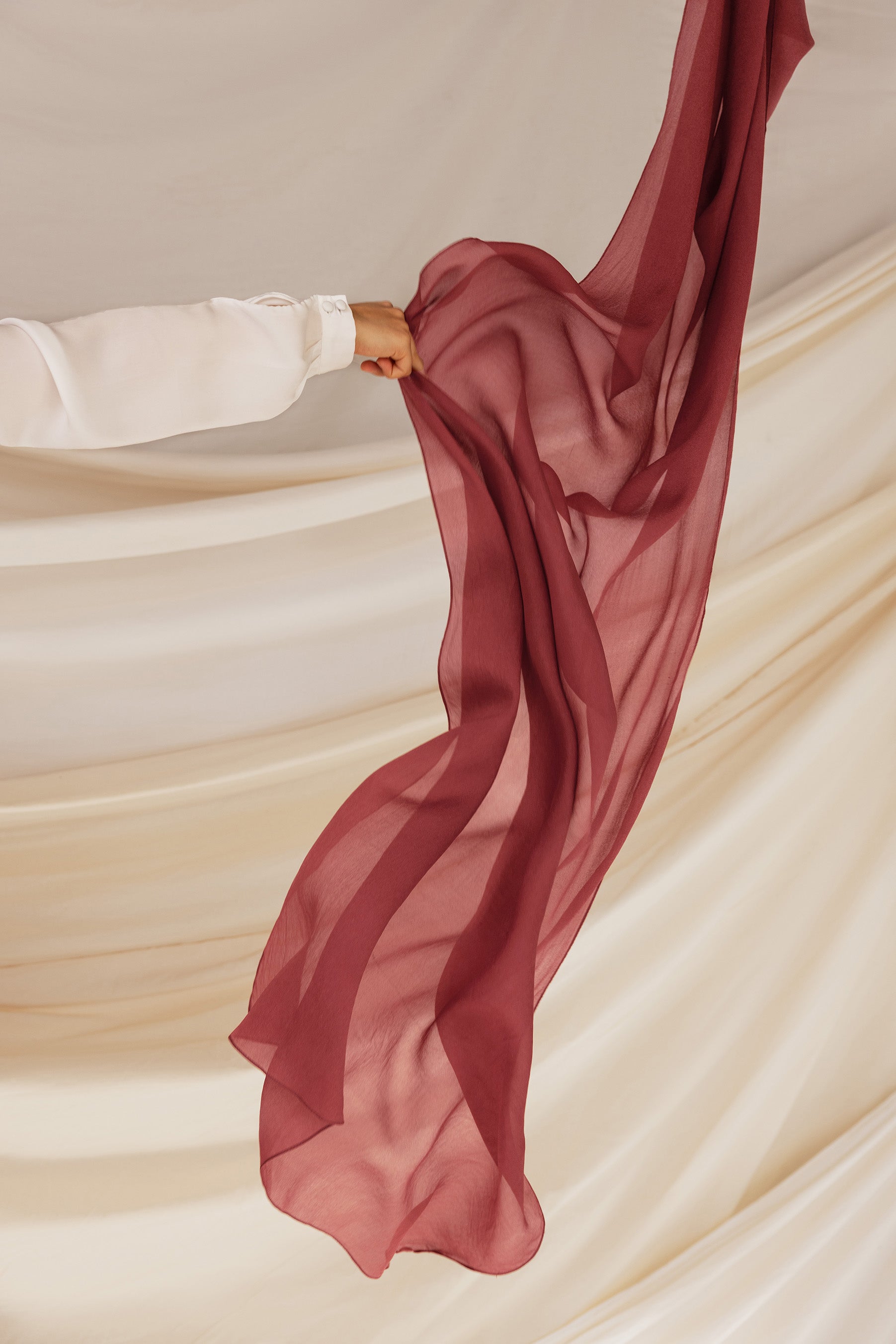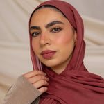 Warm and inviting, Spiced Apple Silk Chiffon is a rich red hue with cinnamon undertones, perfect for adding a pop of color to any outfit. Crafted from 100% pure silk with a lightweight, non-slip feel, this hijab combines luxurious texture with effortless style. Ideal as a versatile scarf hijab, this silk chiffon scarf hijab offers both comfort and elegance.