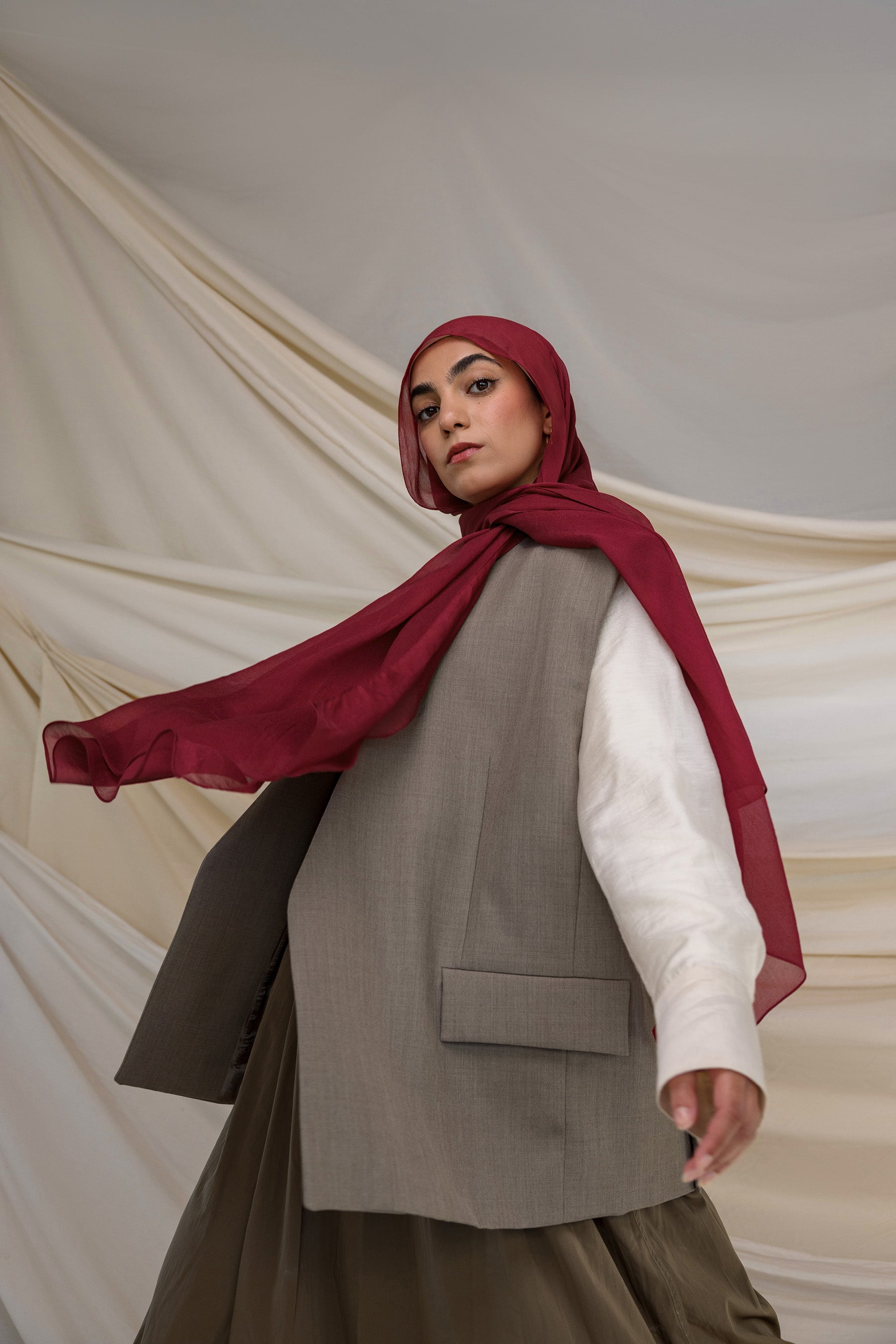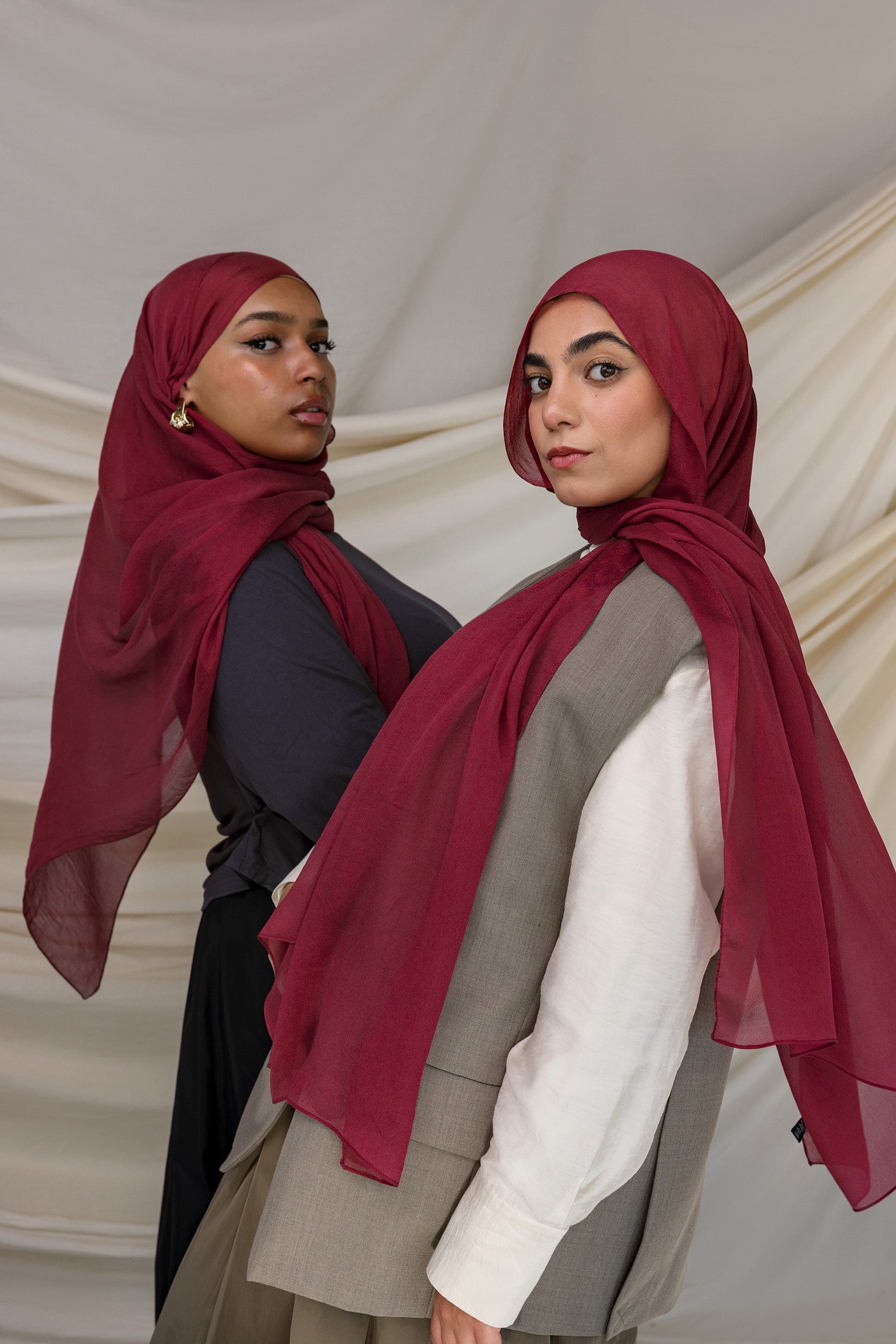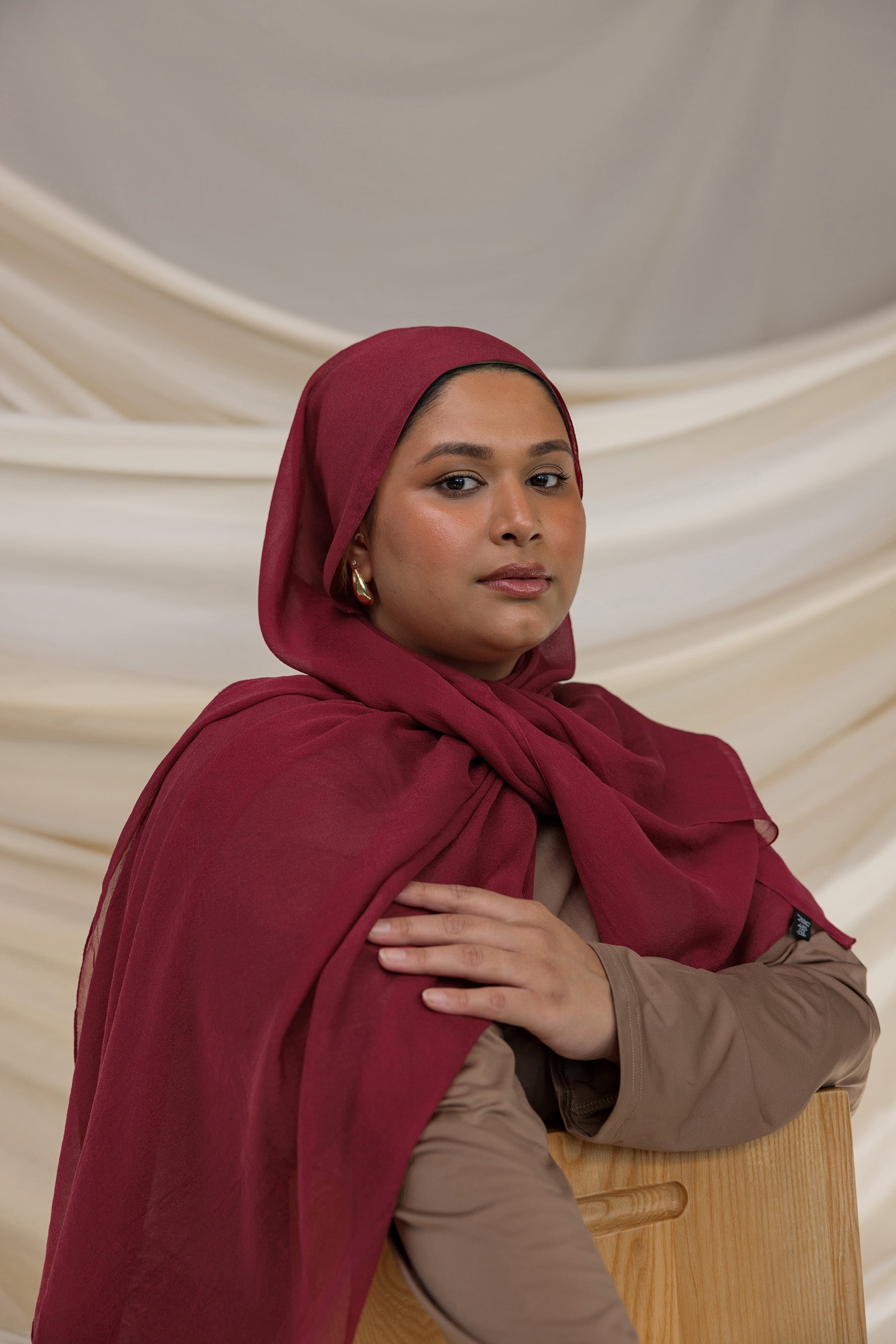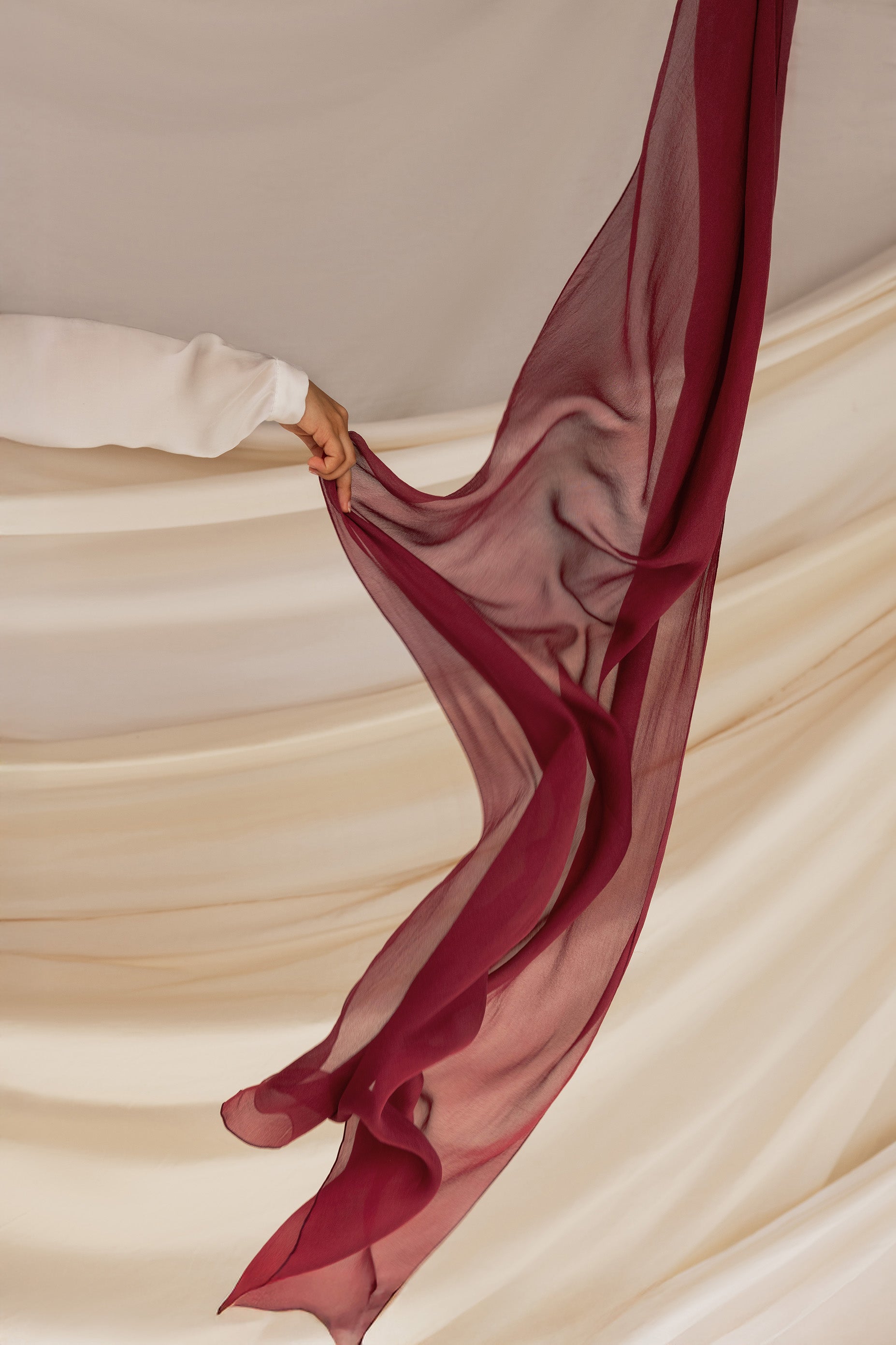 Bold and classic, Tibetan Red Silk Chiffon is a deep, jewel-toned shade that commands attention. This 100% silk hijab pairs the shine of silk with chiffon’s breathable drape, offering timeless sophistication for any occasion. The pure silk hijab texture ensures a sleek look, while its versatility makes it an ideal choice for a chiffon hijab.