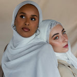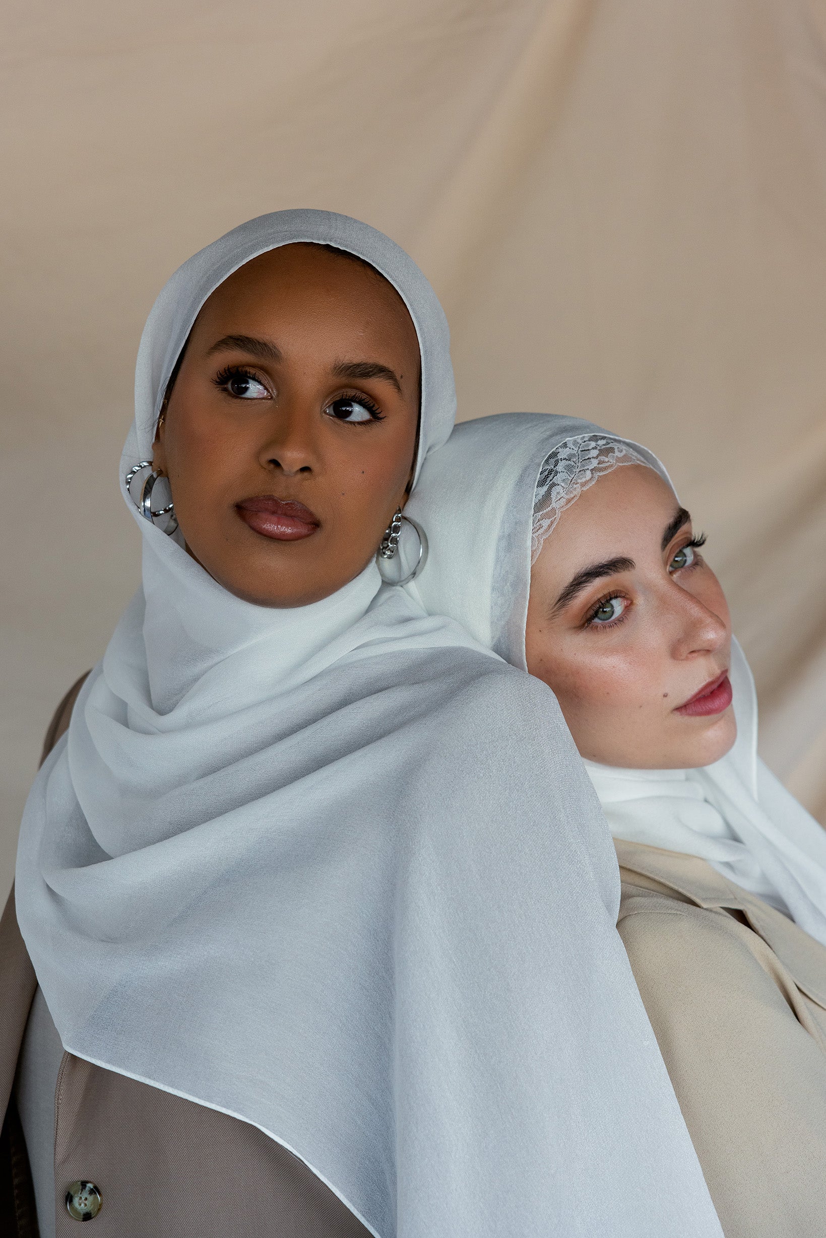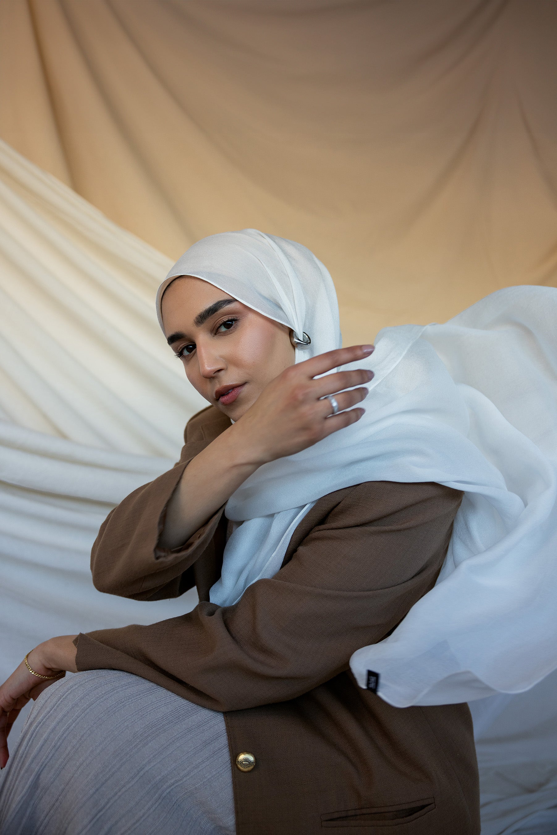 A dream of a hijab in cloud-soft silk. The perfect shade of white for any occasion is now in 100% pure silk that drapes like chiffon you’ve never felt before. Shop our vanilla silk chiffon hijab online and experience the elegance of a pure vanilla silk chiffon hijab in a timeless silk hijab finish.