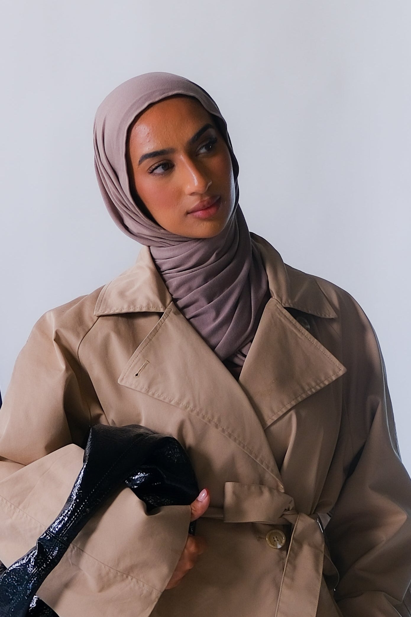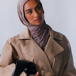 Three models wearing Truffle Mink Jersey Lite highlighting the versatility of the hijab color.