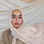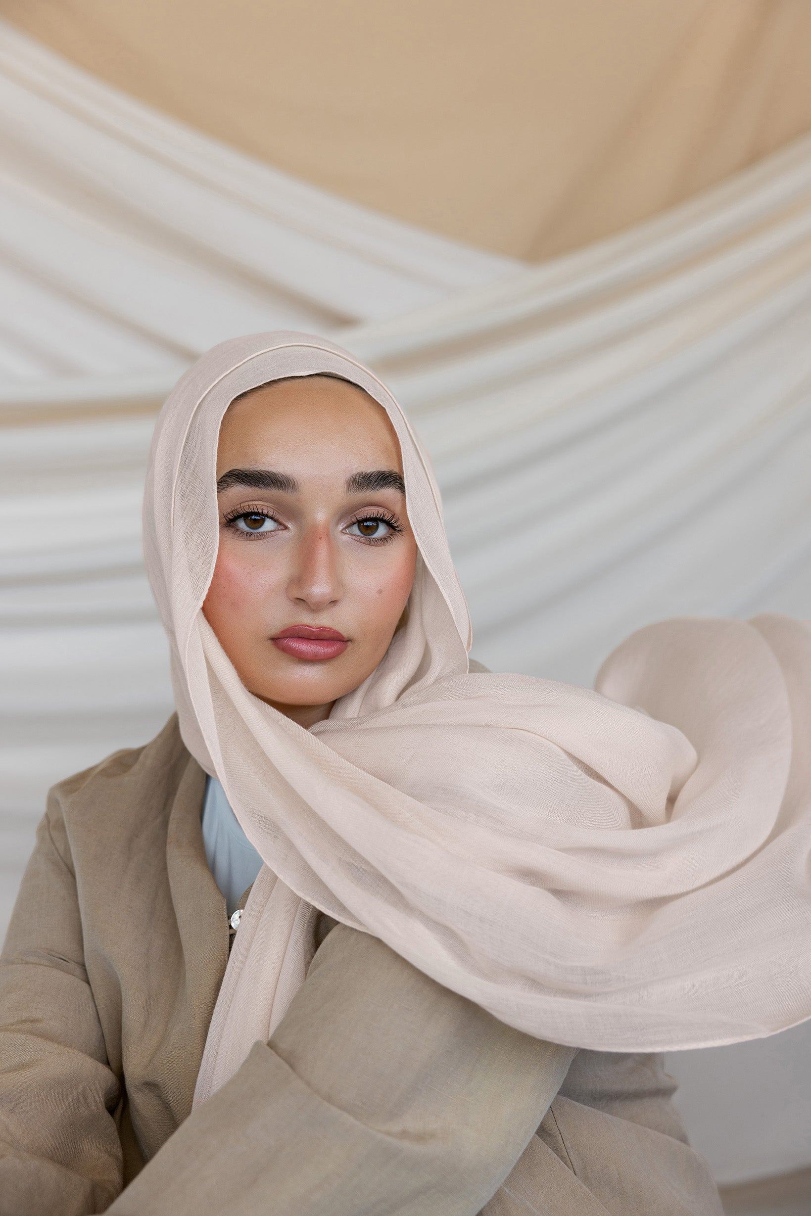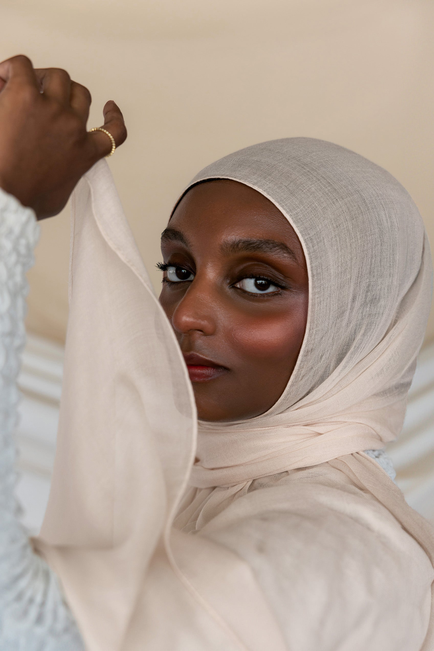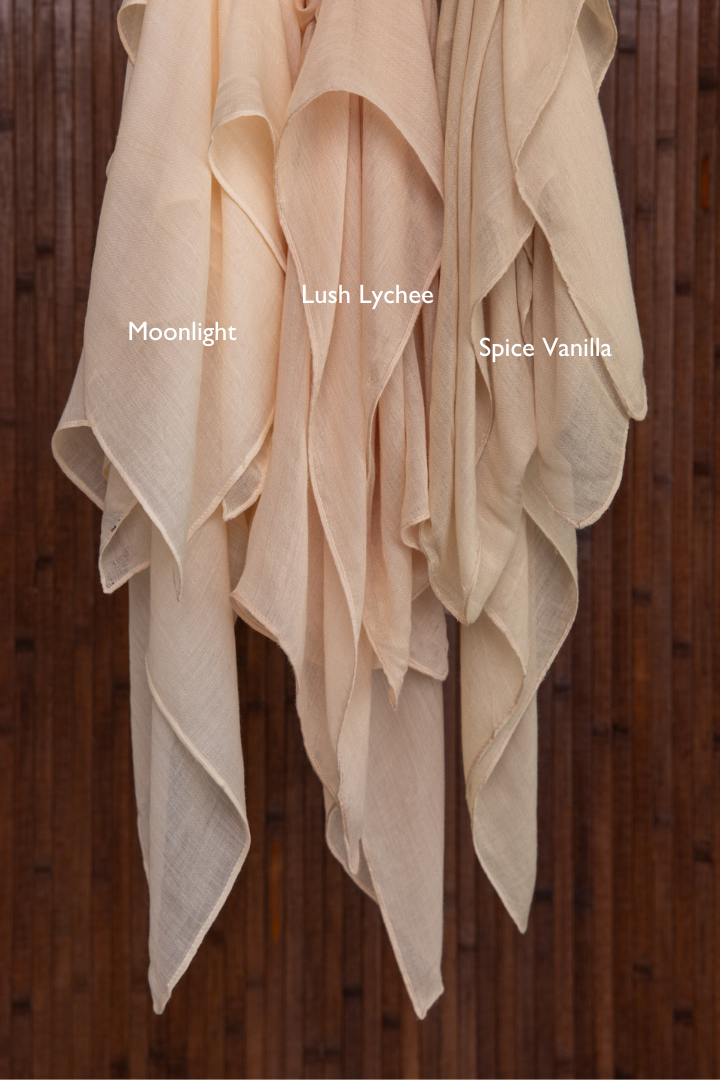 Add an ethereal glow to every look with this hijab that captures the warm, mysterious hue of Moonlight. In cloud-soft modal, don't let the opportunity to own a Moonlight Hijab pass you by. Explore our Moonlight Hijab collection online for this captivating and unique accessory. Perfect for layering, this VELA MOONLIGHT hijab is a must-have in your collection of scarves for hijab. VELAs are uniquely crafted in batches; variations are expected.