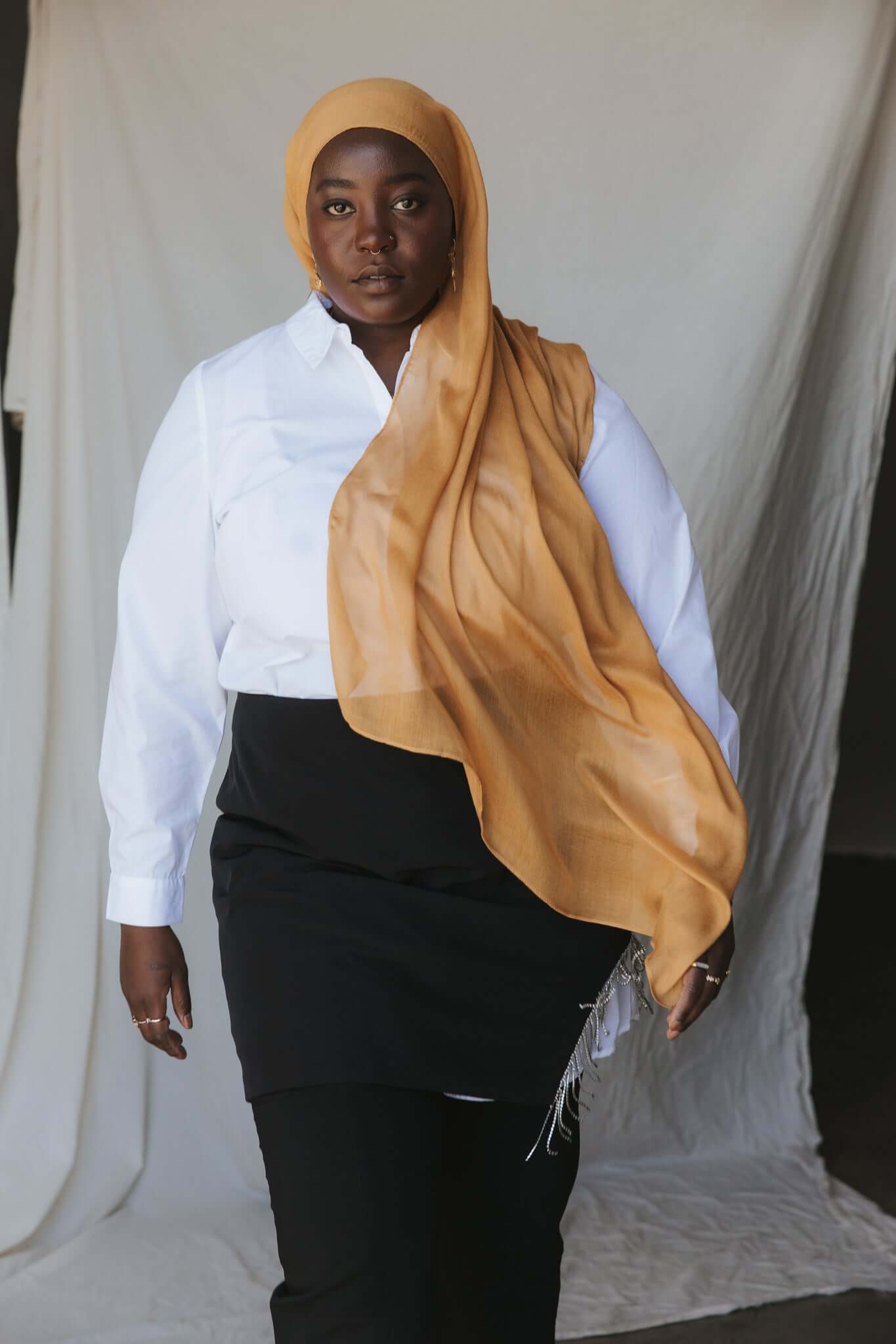 Stay golden with our tawny treasure of a hijab – the Golden Sand from VELA. Luxuriously woven in 100% Modal fabric. Explore our VELA scarves collection, featuring the stunning Golden Sand hijab and other stylish options, including chic woven hijabs. VELAs are uniquely crafted in batches, variations are expected.