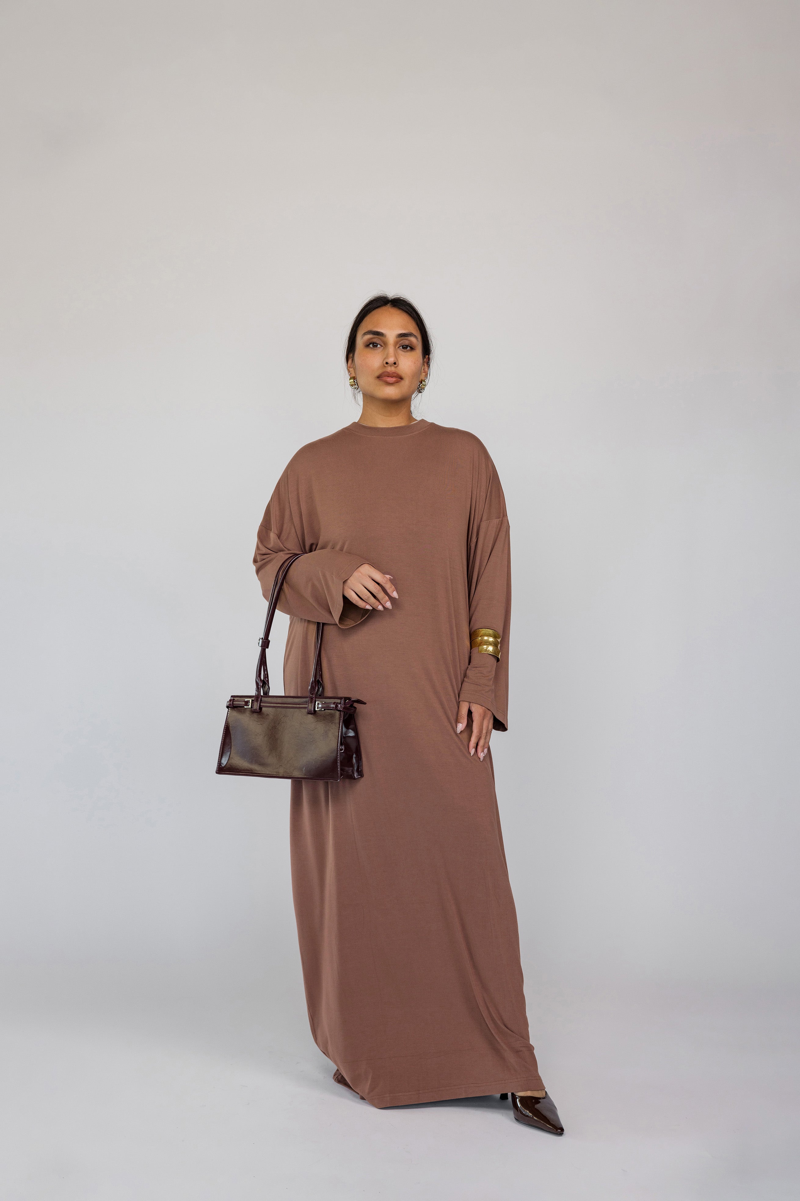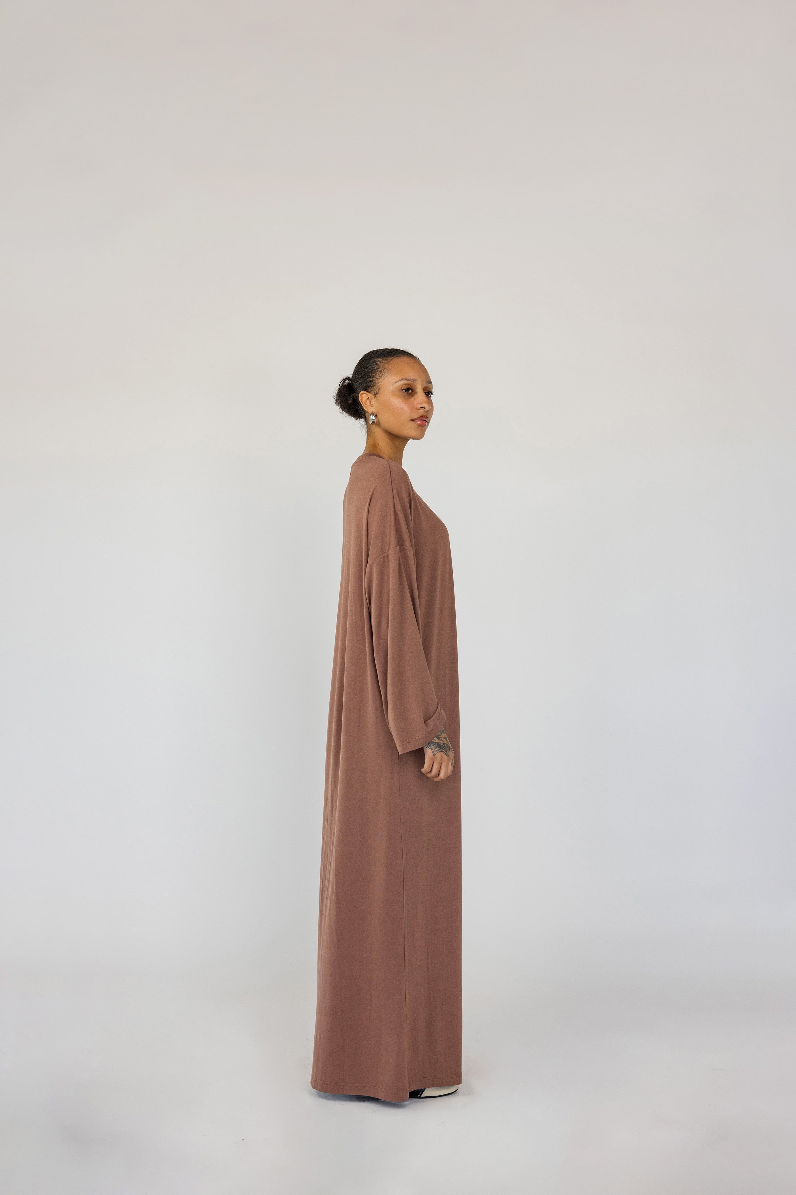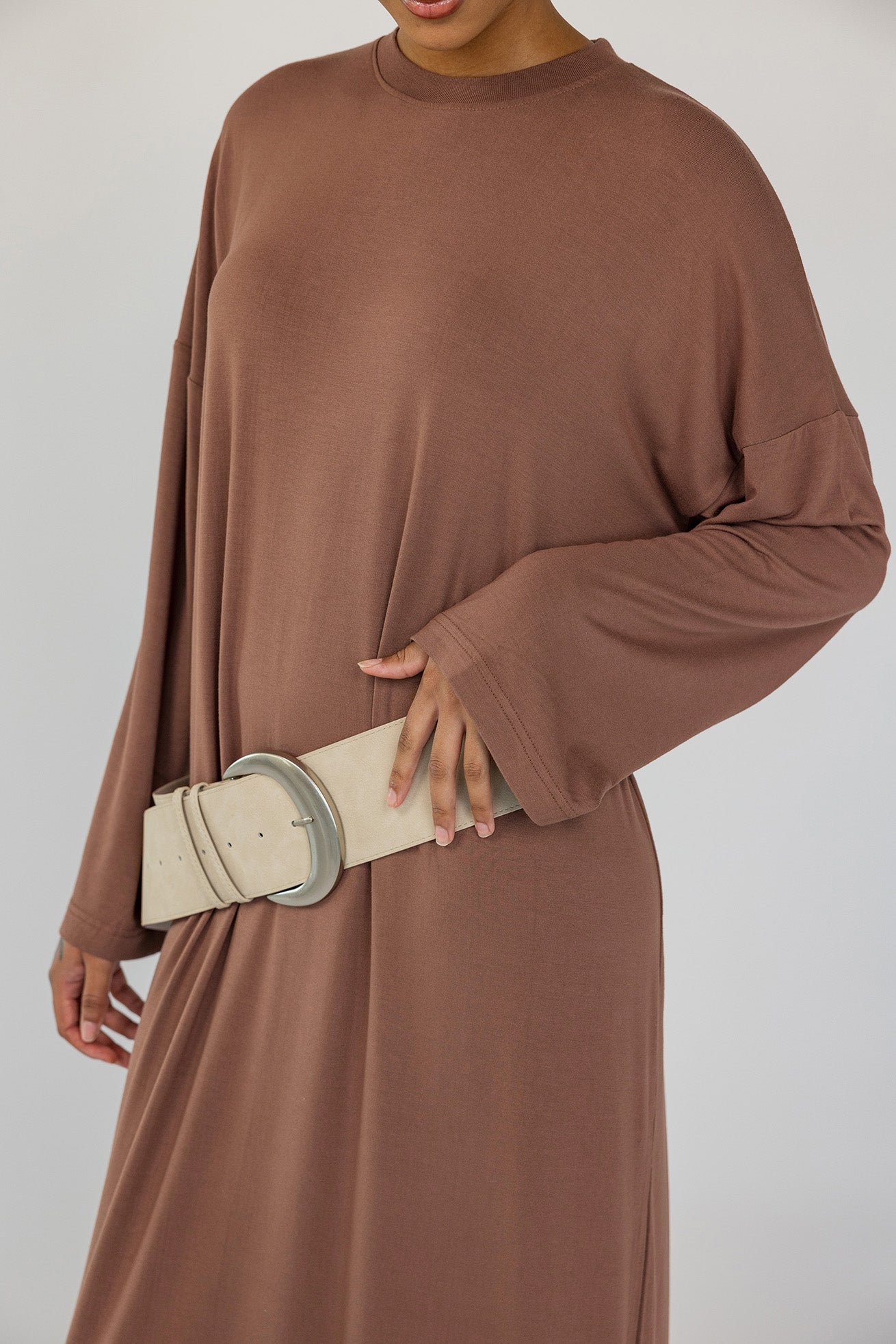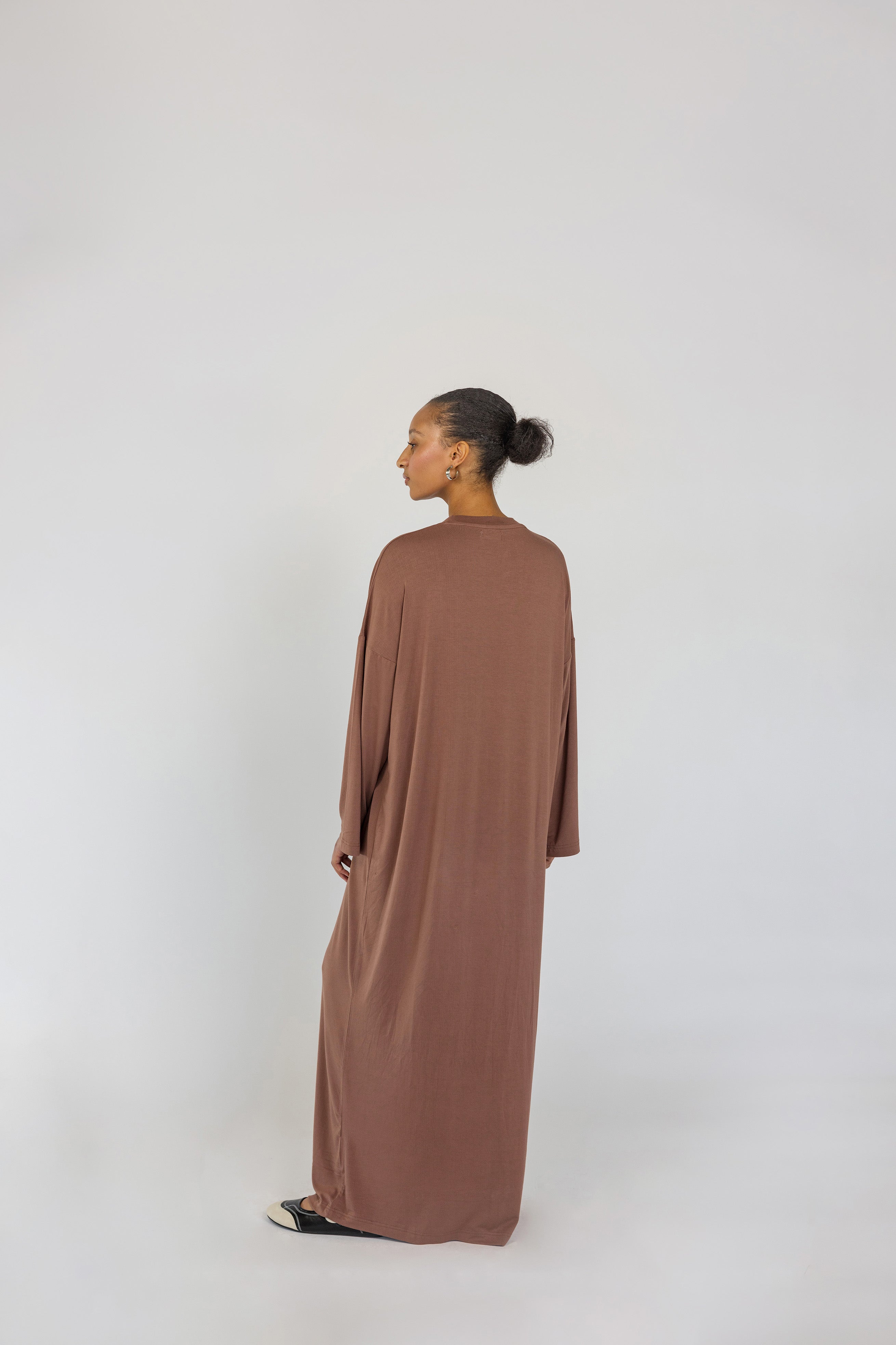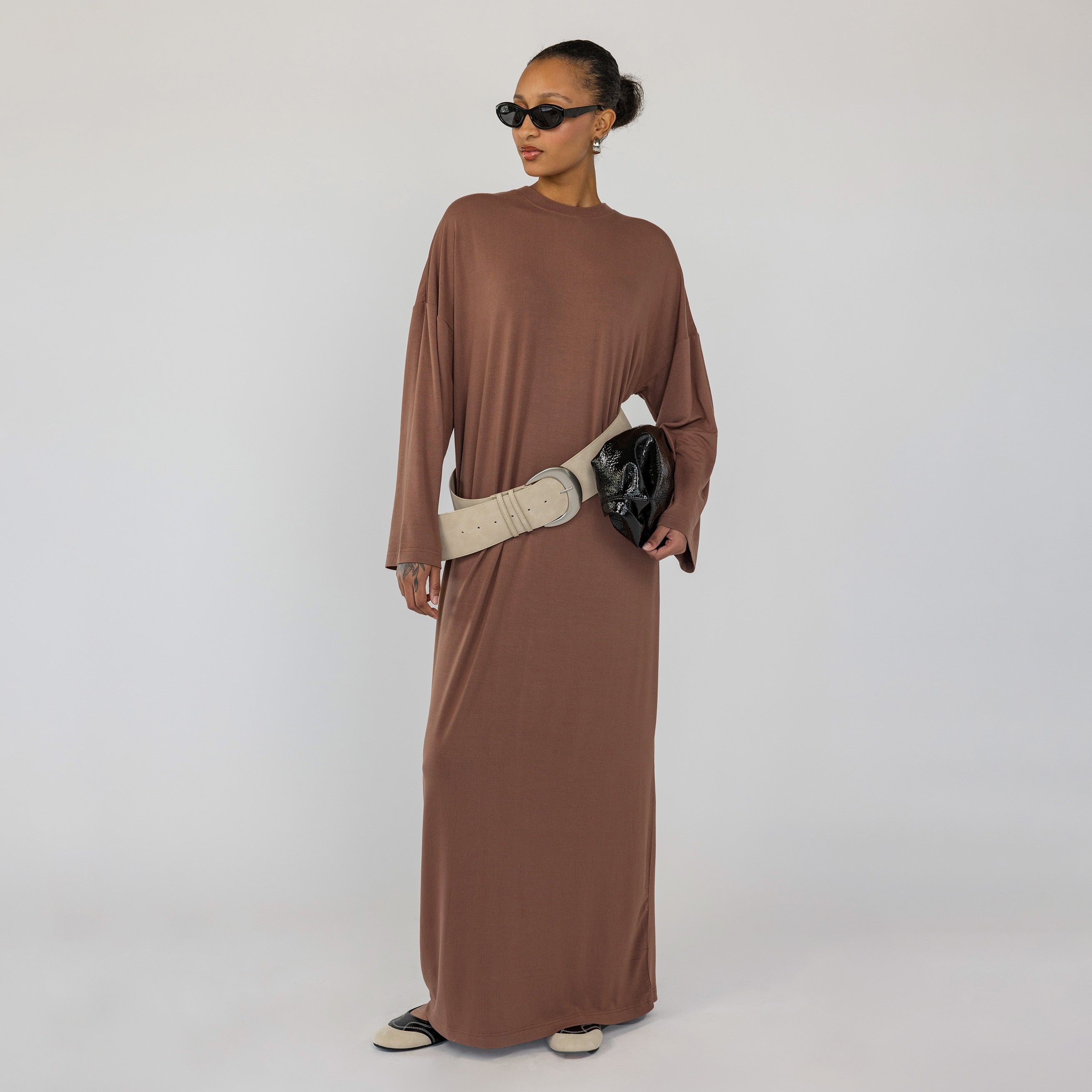 Effortless and airy, this lightweight knit dress was designed with movement in mind. The boxy silhouette flatters without clinging, while the viscose-lycra fabric offers just the right amount of stretch. Wear it solo or layer it; either way, it's your year round go-to no matter the season. Crafted with breathable fabric, it’s ideal for anyone seeking comfortable clothing and a relaxed casual top feel. Available in Oat, Ink, and Chestnut, in sizes XS–3XL.