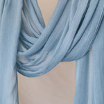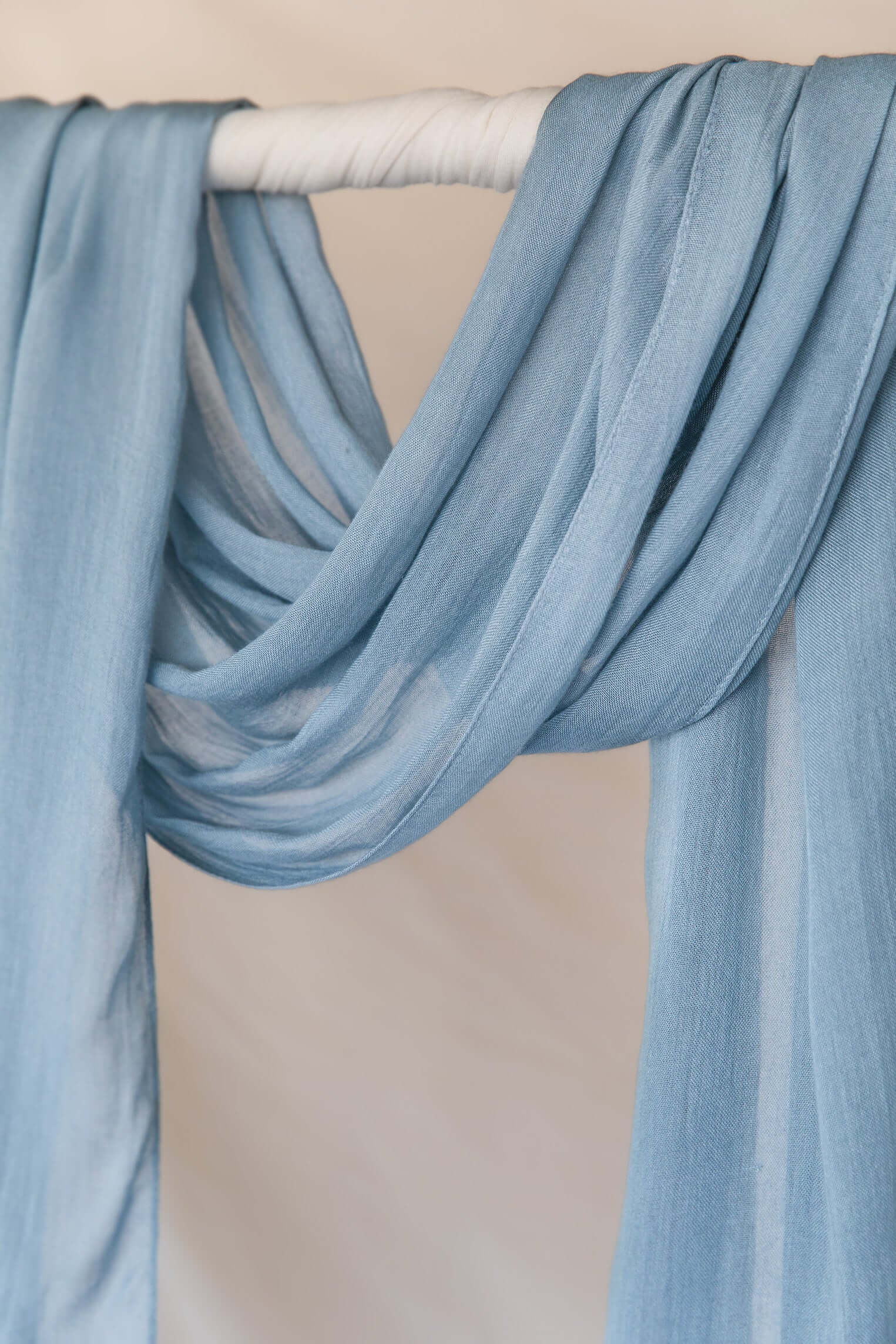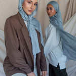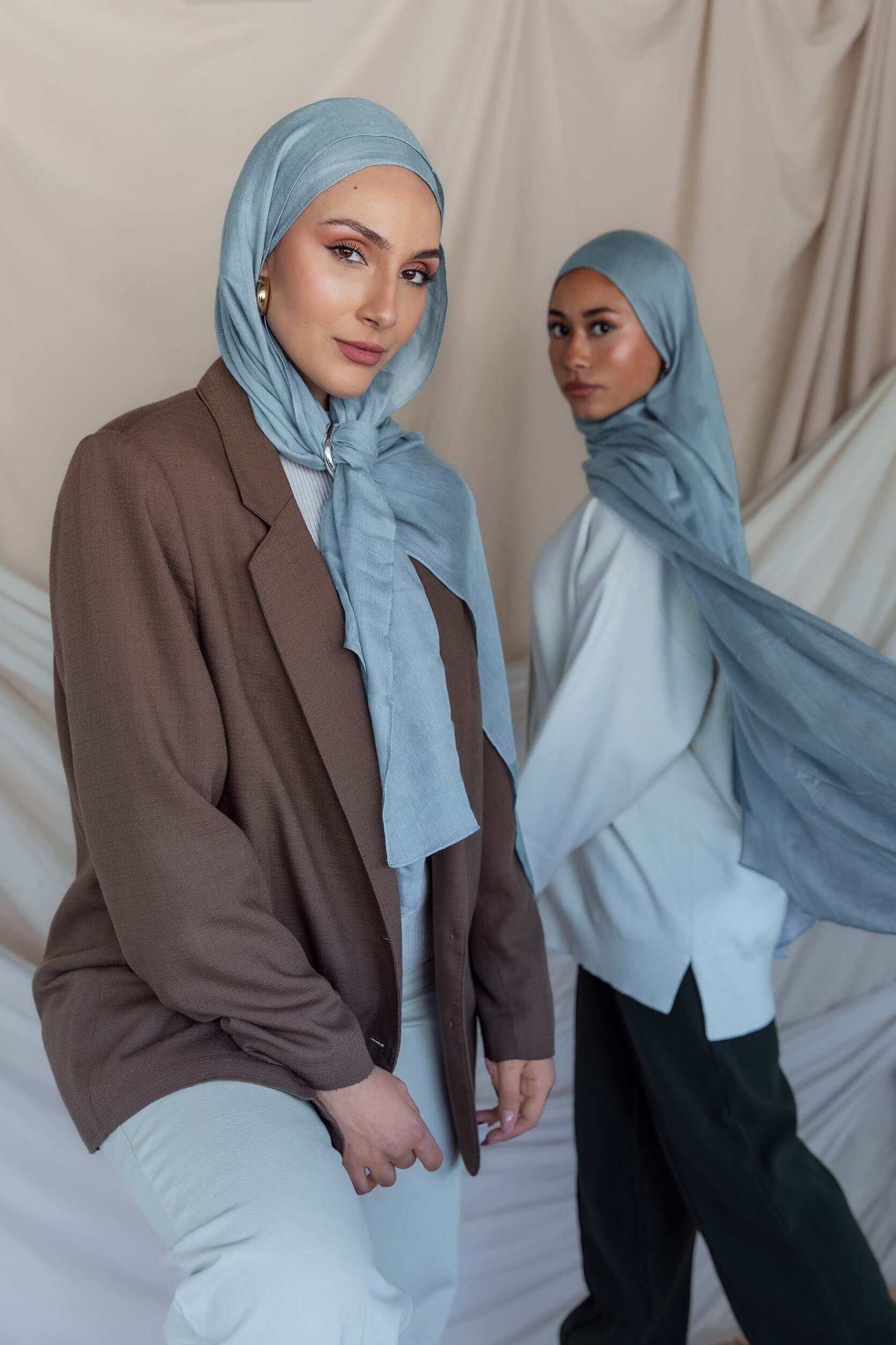 Mimicking the tones of soothing water, this light blue hijab exudes a serene and calming feeling, with its soft, pastel hue reflecting tranquility. This lightweight woven hijab will instantly become a forever favorite whether worn casually or for special occasions. Its subtle color pairs beautifully with both neutral tones and bolder outfits, adding a gentle touch of elegance. Try Sadaqah Blue today.