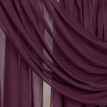 Color comparison of three purple red hijab fabrics labeled 'Rosewood', 'Wild Berry', and 'Fig Latte' on a wooden background.