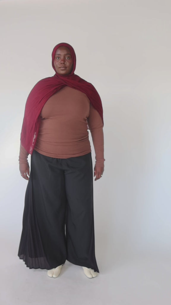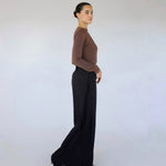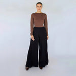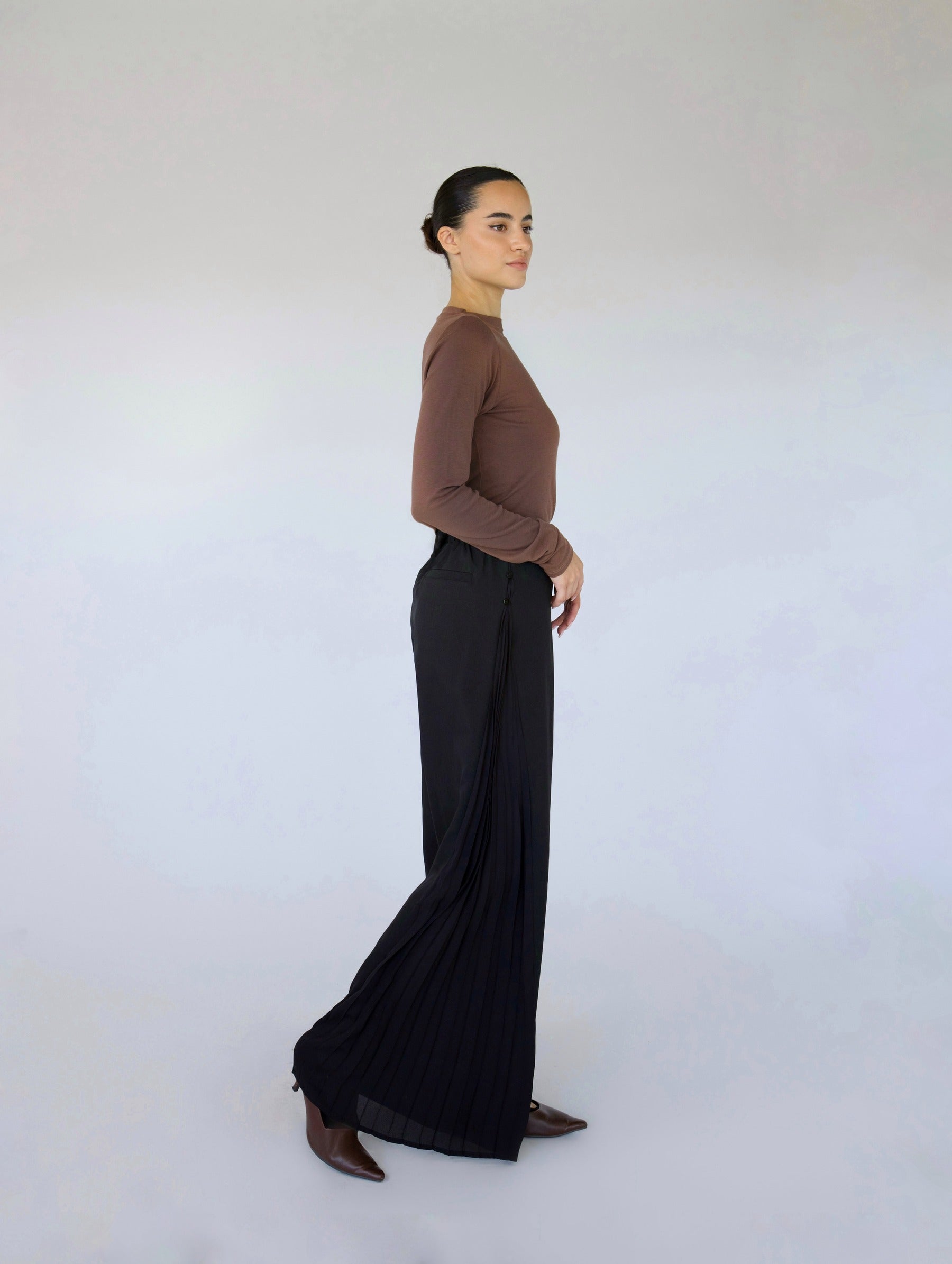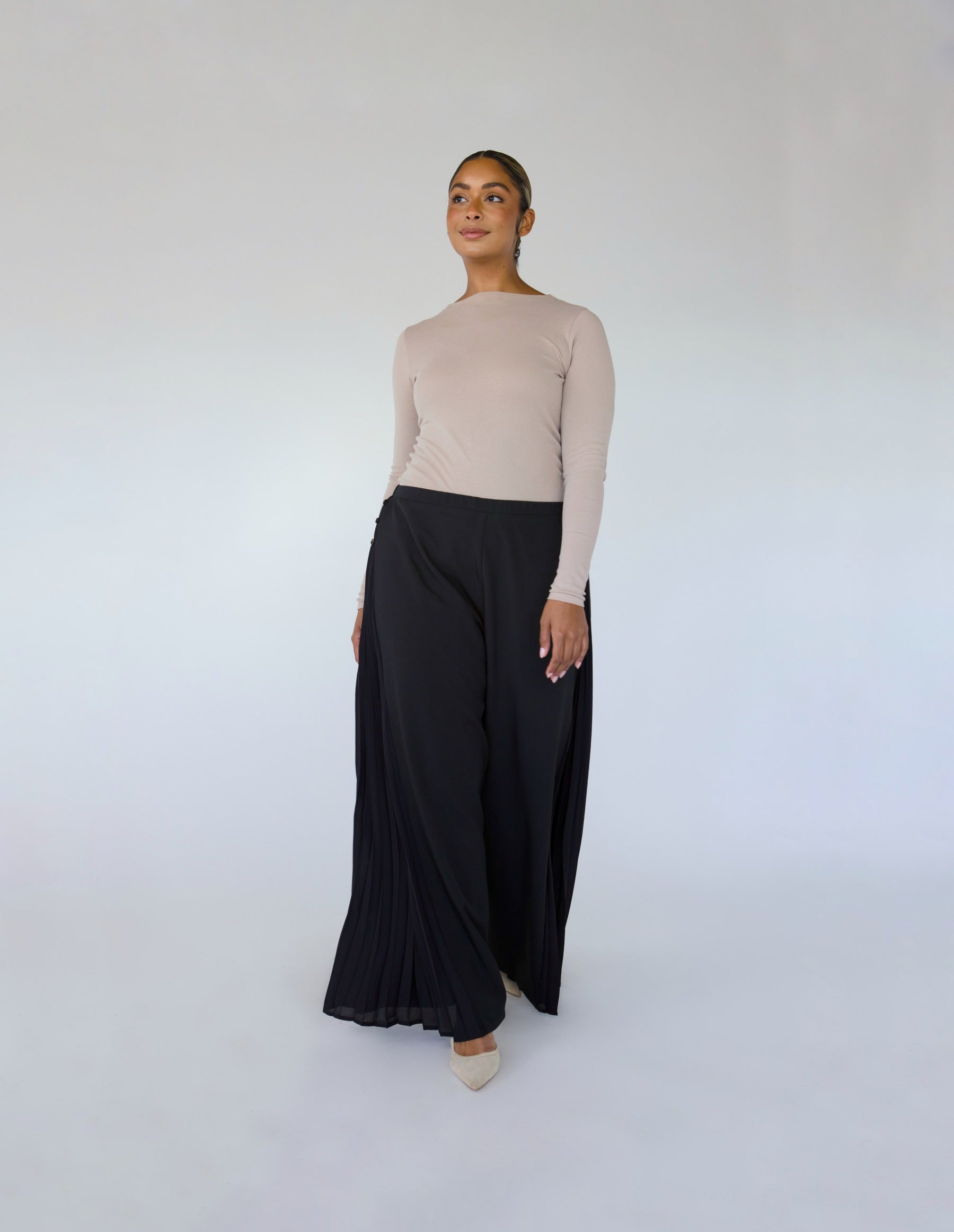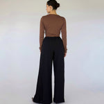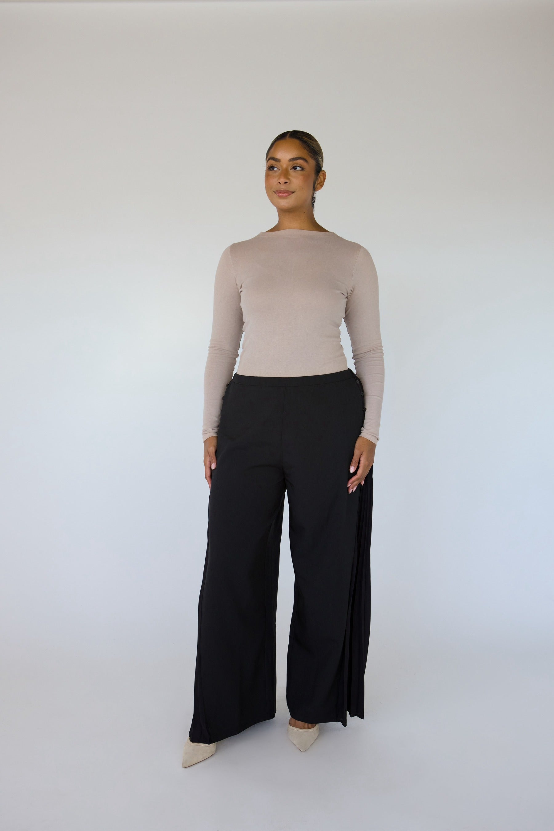 Ayanna is a US 8 and 5'8" and wears a size L in our Pleated Self Contrast Pant in Black.