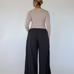 Anna is a size US 2 and 5'5" and wears a size XS in our Pleated Self Contrast Pant in Black.