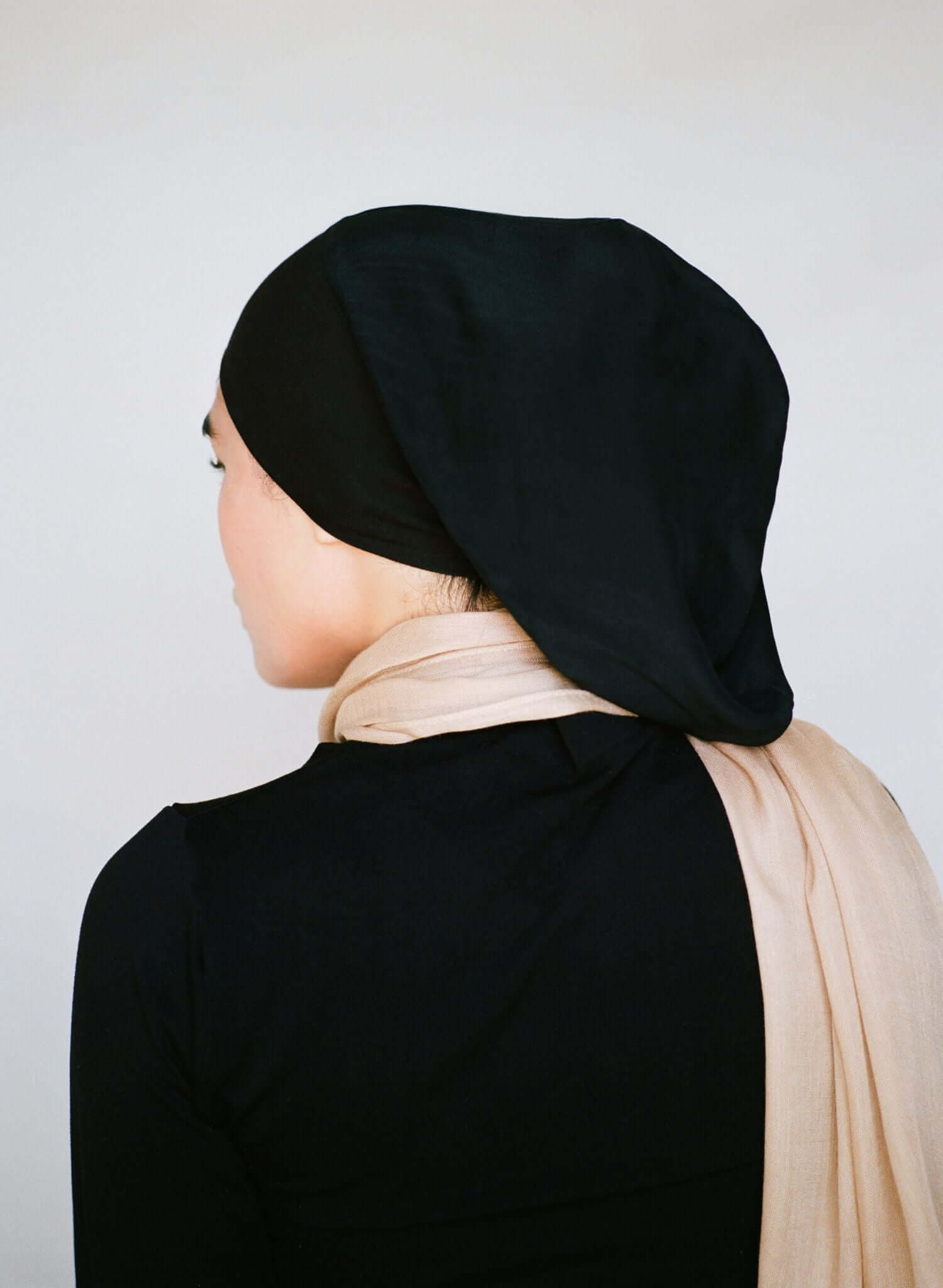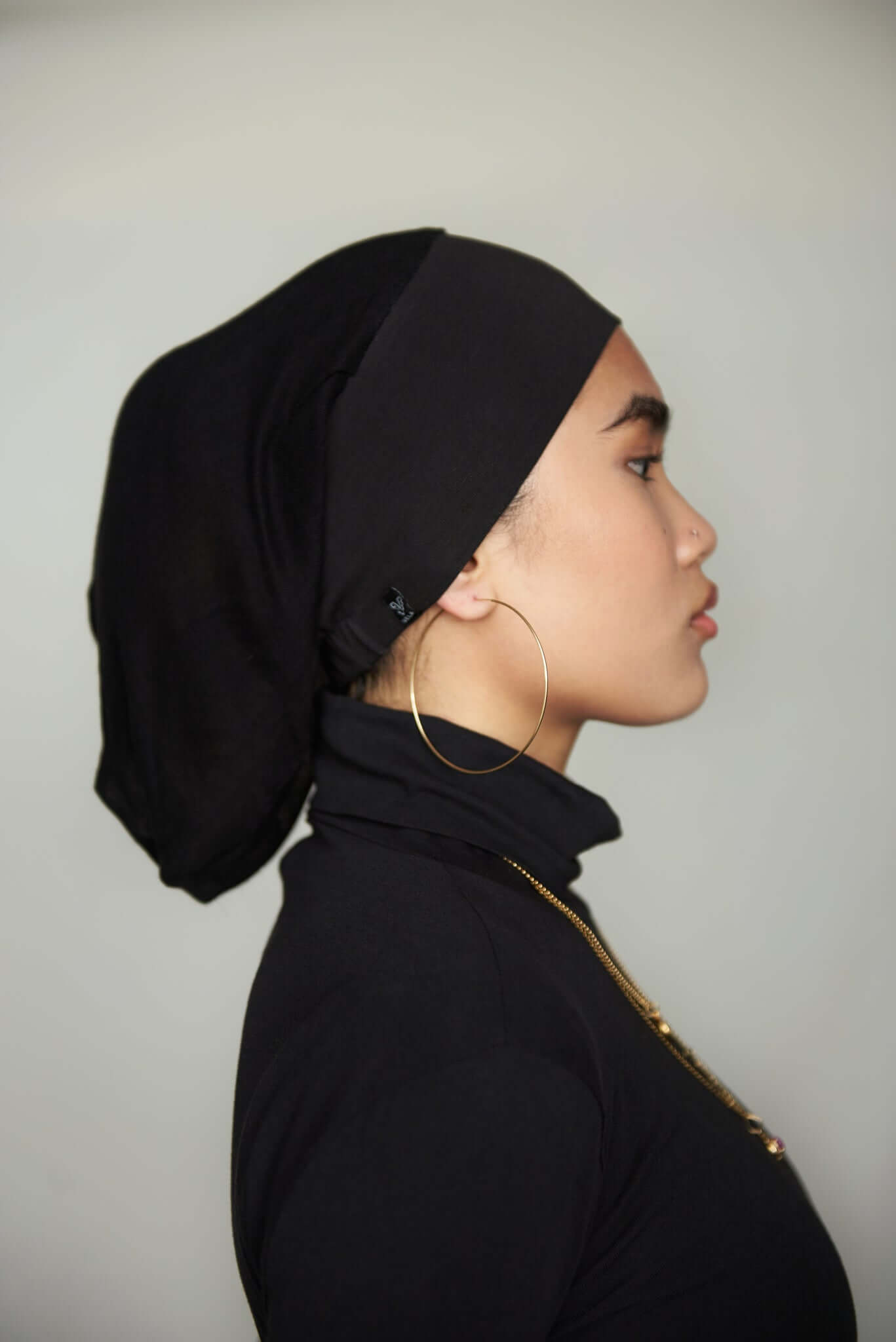 The Keeper is for the girl who prioritizes hair care. 100% Mulberry Silk is luxuriously gentle on the hair, while the soft cotton-jersey band in the front provides non-slip comfort. Keep your hair healthy with The Keeper. This undercap for hijab ensures a secure fit and provides a modest undercap solution. It's the perfect women's undercap, offering a comfortable undercap for hijab experience throughout the day.
