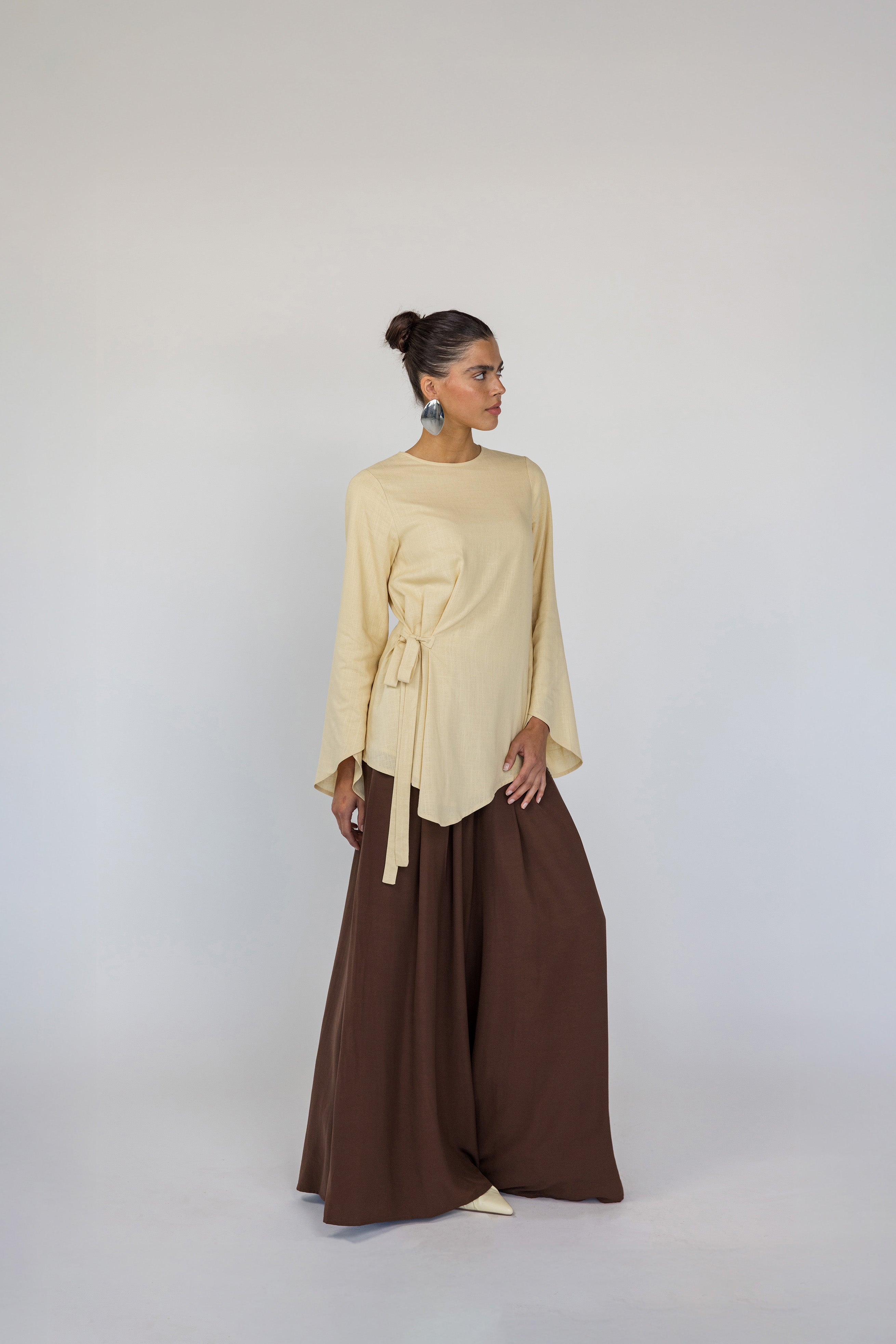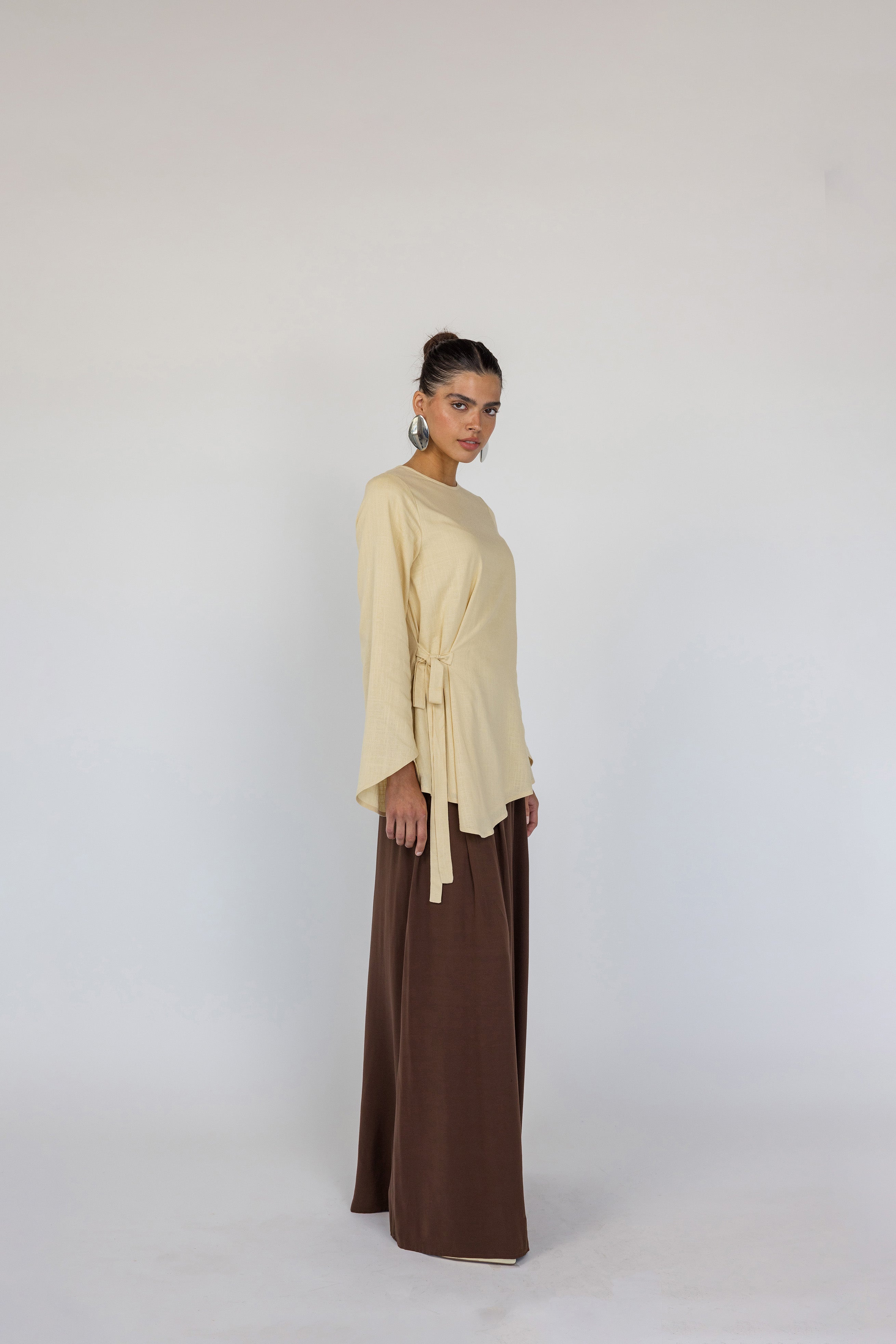 I love how breathable the fabric is and the modest fit! It is such amazing quality and I love how you can tie the top on the side depending on your preference. This is the perfect linen top for summer!